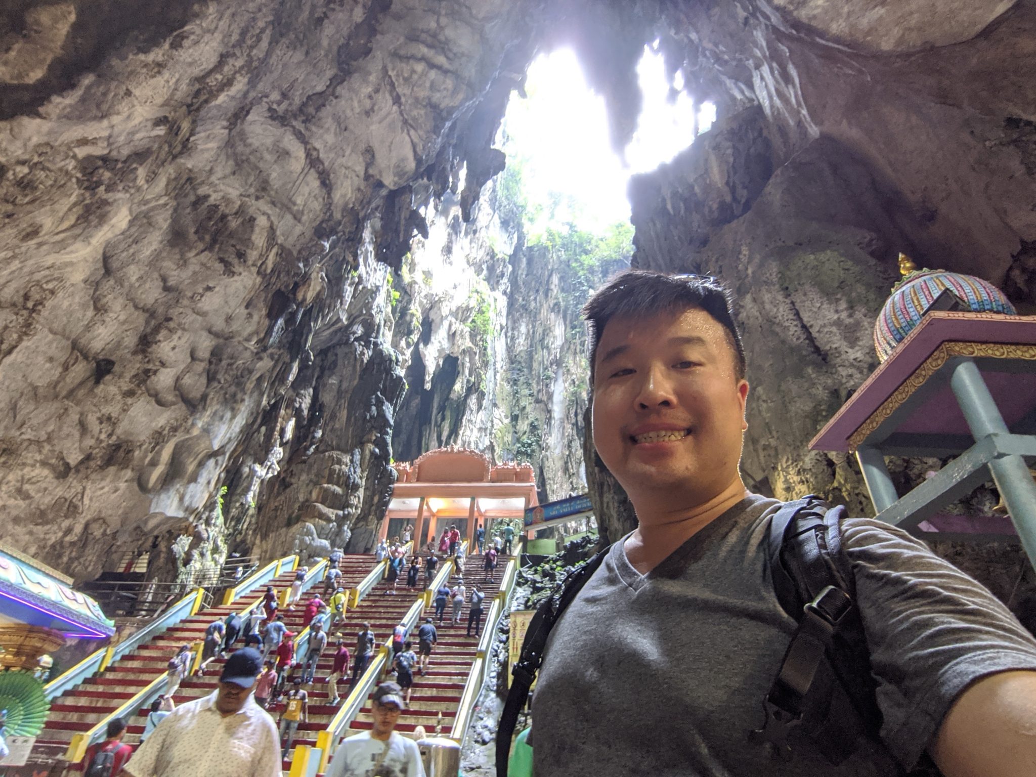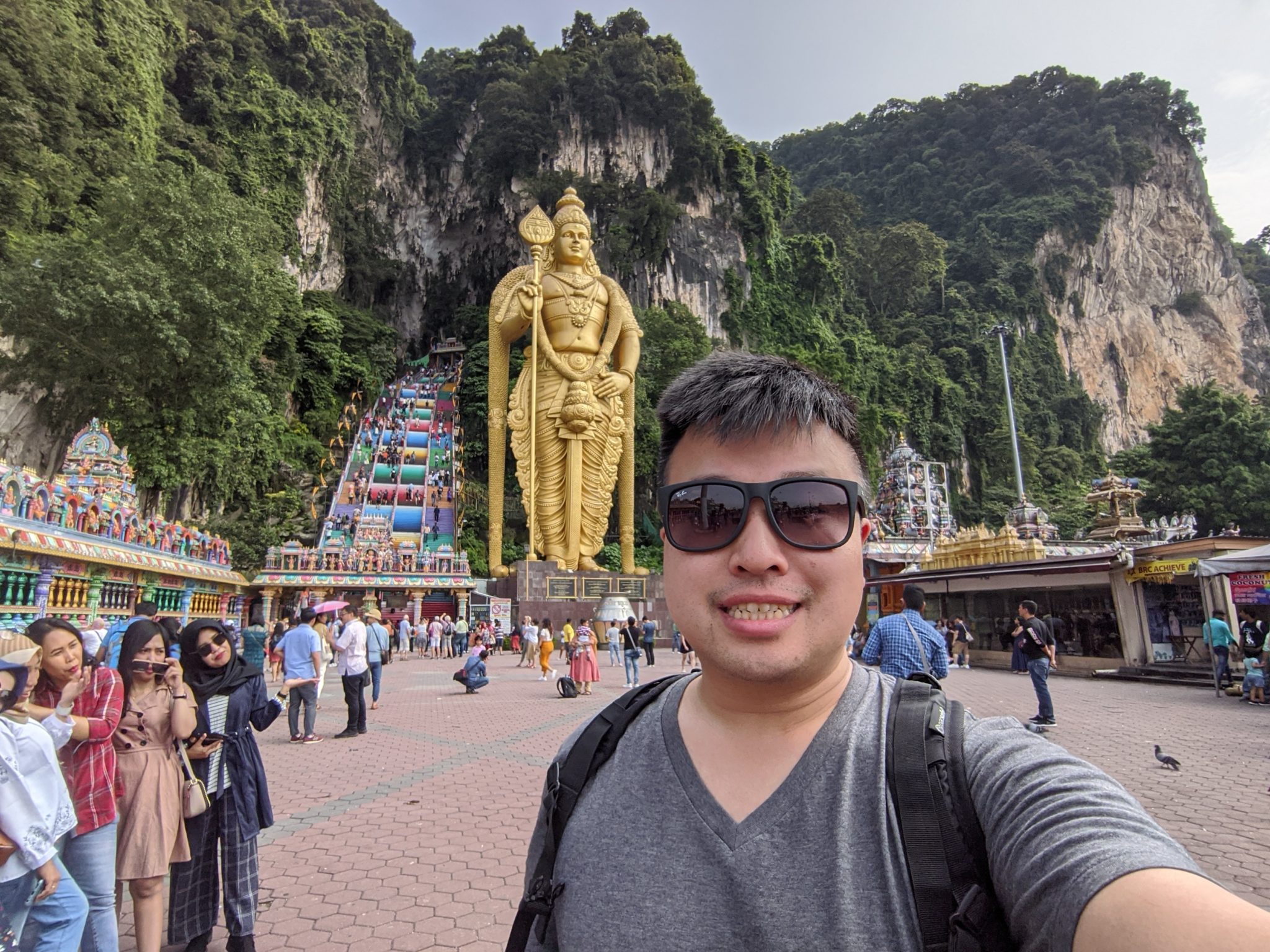 The benefits of being so close to the train station is how easy it is to get to different parts of the city. Jumping on the train that takes me to the Batu Caves is easy. Without any complicated transfers I arrive in about a half hour. I’ve only seen pictures of the caves themselves, but once you’re actually in front of it, you get a really good sense of how cool and unique it actually is! From the size of the huge golden statue to the colour steps leading into the mountain. Its a very cool sight to see and I for one am glad to see and experience it!