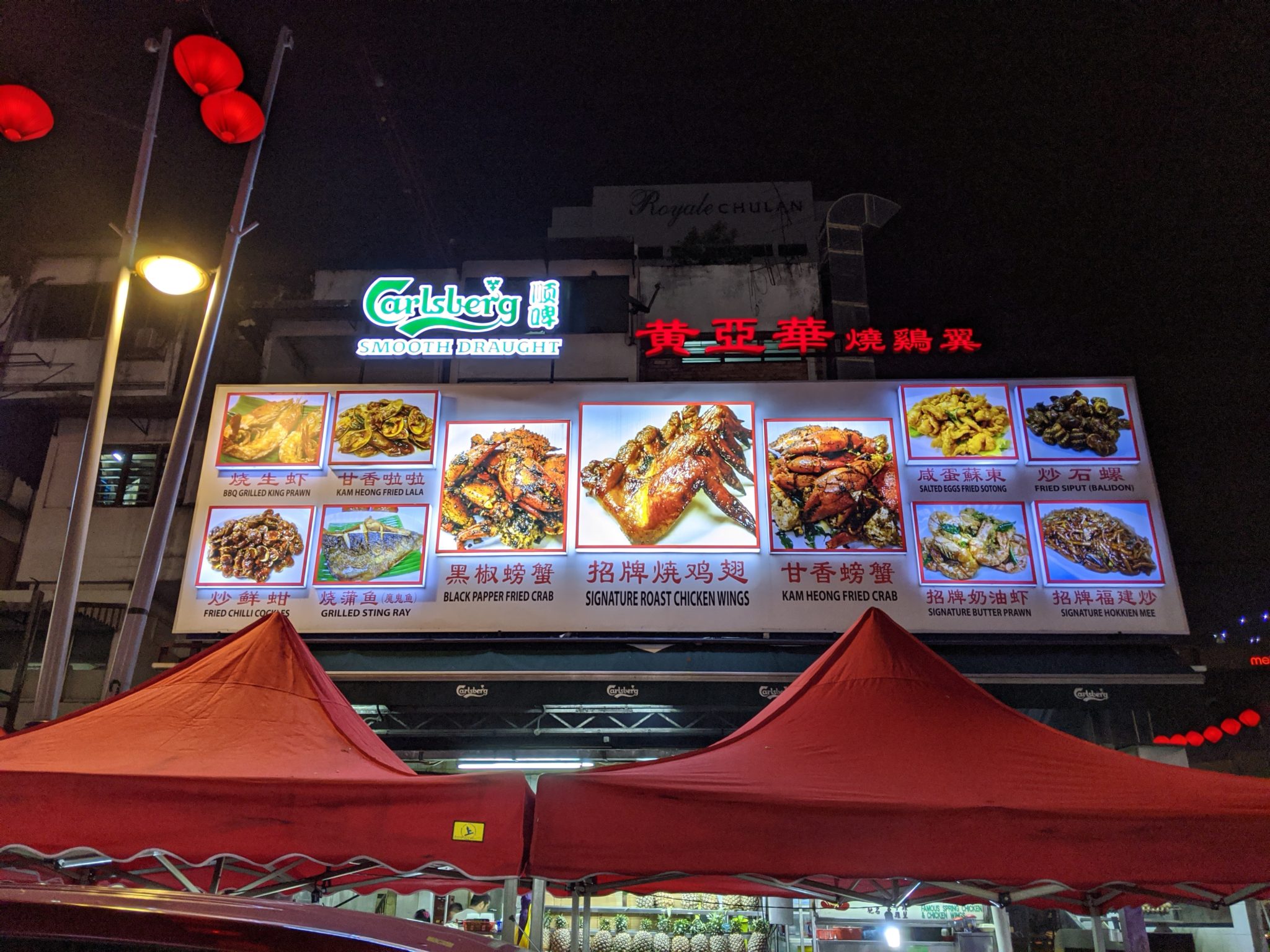 After experiencing the Lake Symphony, I have one last stop on my list for tonight. I end up walking from the twin towers to Jalan Alor. Jalan Alor is a famous street in Kuala Lumpur known for its multitude of food stalls and night market vibe. Even though I’ve already eaten dinner, my friend did recommend that I try the wings from Wong Ah Wah. Apparently they are known for their roast chicken wings and is worth the experience. I don’t think you can really go wrong with wings in general. And these roast chicken wings are no exception. They are flavourful and very juicy. Super Tasty!