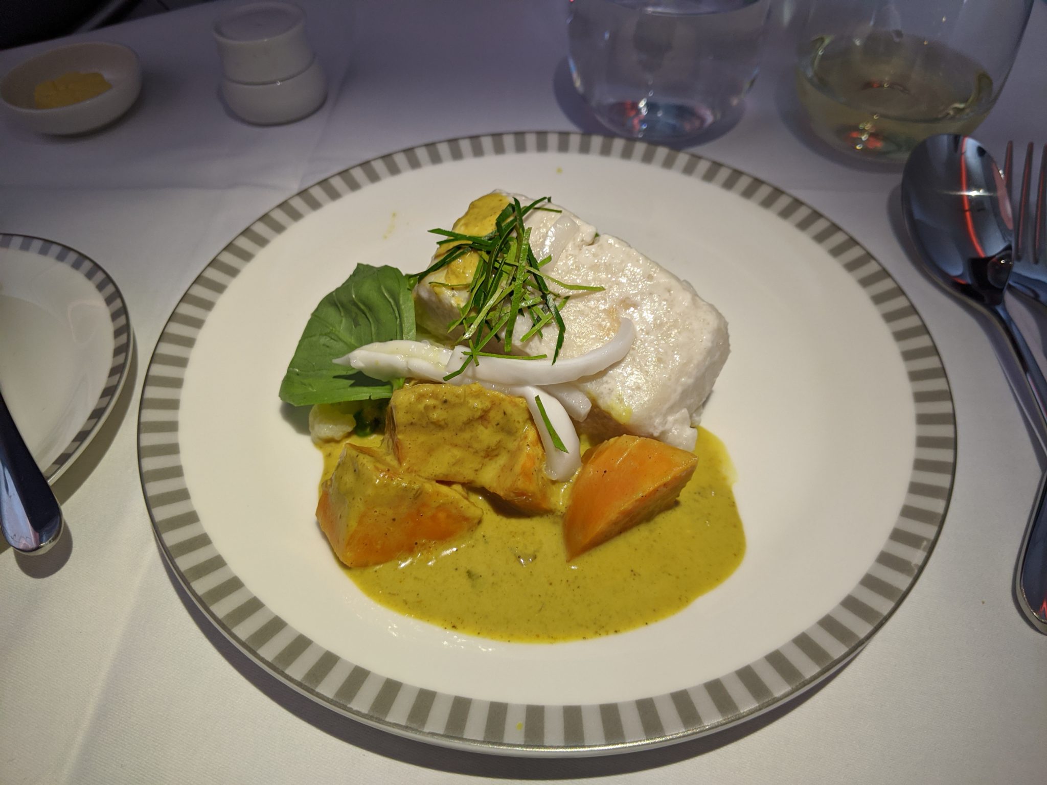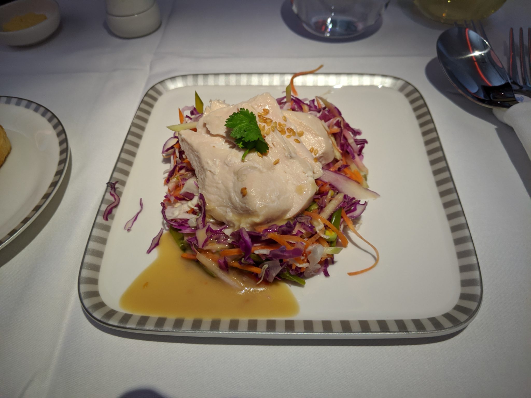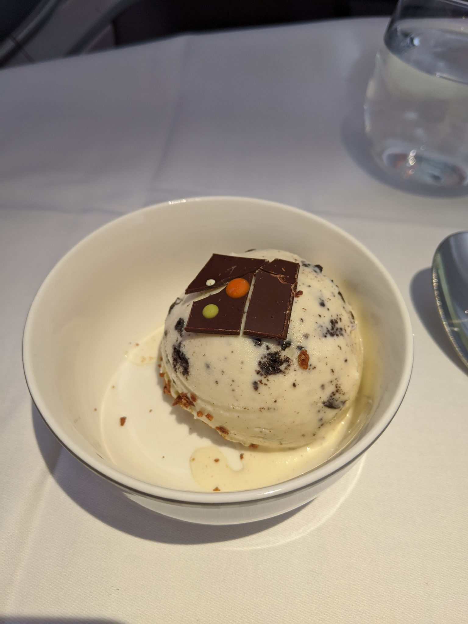Soon after breakfast, it was time to fly! I walked to my gate, boarded, and settled into my seat to Perth. This is one of my more anticipated flights because it’s a longer light on a newer Singapore Airlines A350 Business class product. To my surprise, the seat is actually the same as the one that I flew into Singapore and is just as comfortable. The signature Singapore Airlines service is always great and this flight is no different. Lunch is served on this flight and the food is spectacular! It started with chicken and lamb satay and a poached chicken salad to start. For the entree I chose a coconut poached fish. Meanwhile dessert is Hagen Daz cookies and cream ice cream.