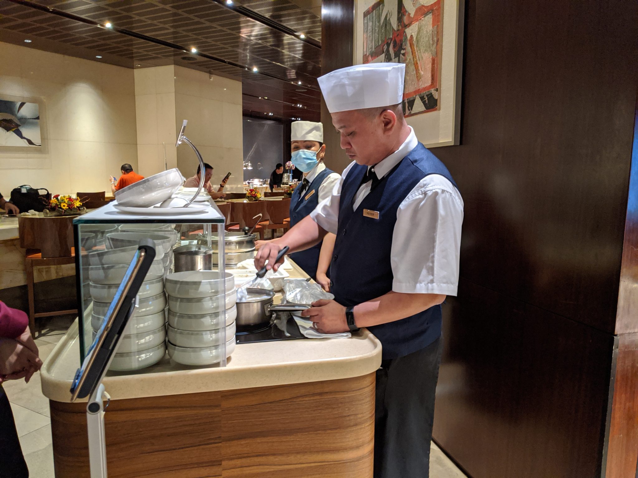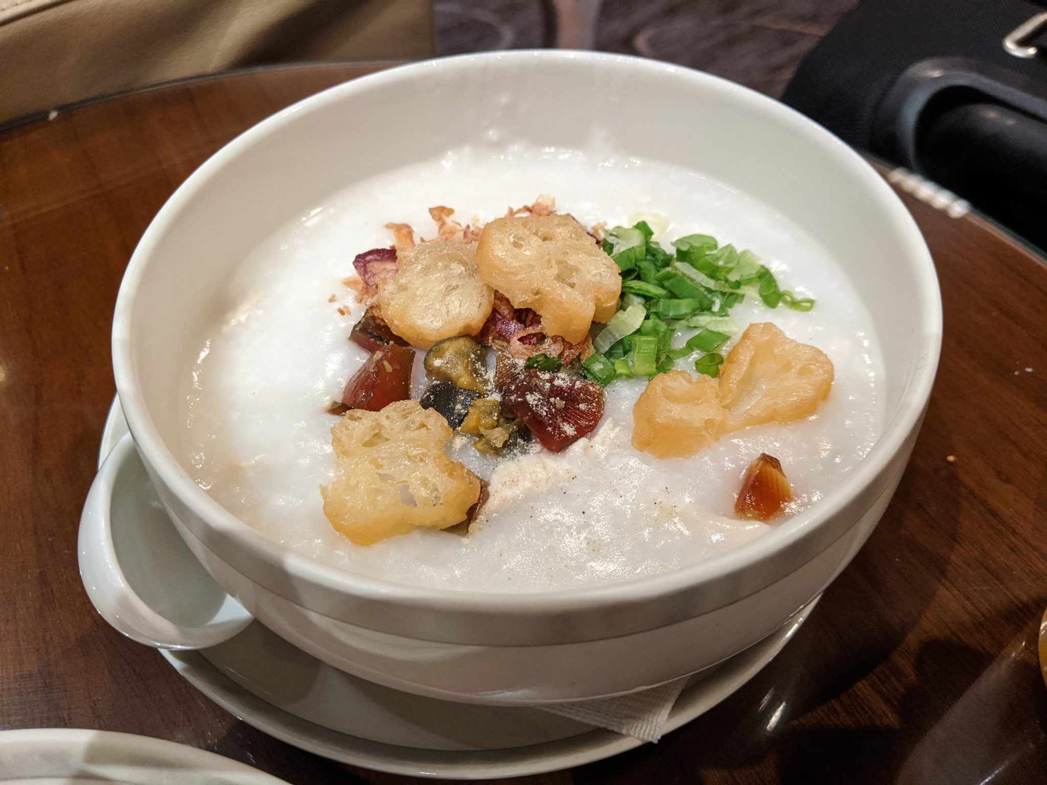 Thankfully, because of the choice to stay overnight at the Changi Jewel I was already at the airport in the morning and didn’t have to worry about transit from the city. I had a leisurely wake up and stroll past security into the main terminal. My first stop is the SilverKris Lounge for some breakfast. One of the things I enjoy most about airport lounges is that many have great food selections and since food at airports is expensive, this is one way that helps me save a little money. Along with an assortment of western and Asian breakfast items, I was pleased to see they had a congee station. This is comfort food for me and being away from home for about a week now it really hit the spot.