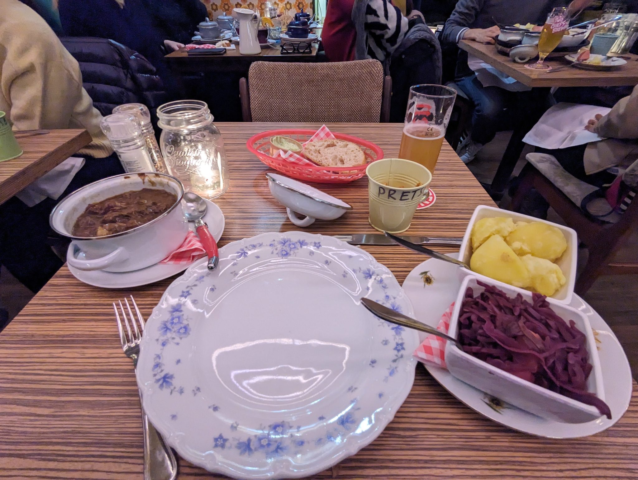 Sadly, I do eventually need to get some food in me and so I say good bye to Heineken and catch a tram over to Moeders. Moeders is another restaurant famous for its traditional Dutch dishes. While I already had a taste of snert earlier in the day, I still have a big craving for it. So without hesitation I make sure I start with another helping of snert and this time, I have a photo of it! For my main I order Hachee which is a beef stew with potatoes and red cabbage. I’m not sure if its simply the cold weather, but the soups and stews I’m having so far are really hitting the spot. And recommending Moeders is something I can whole heartedly do for anyone else making the trek to Amsterdam.