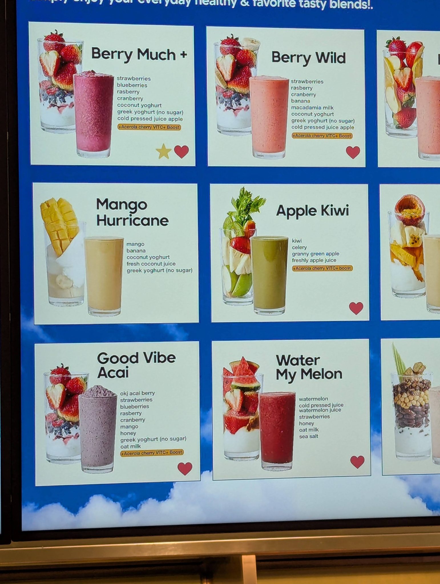 After making it to our hotel and freshening up a little, we set out to explore Bangkok. We only have the evening in Bangkok before head off to our destination. Since this is the Sister’s first time we simply want explore and wander so she can get a sense of what this city is like. We walk around one of the big malls and stop to snack on some very yummy snacks too! I’m sure you can tell which smoothie drew my attention!