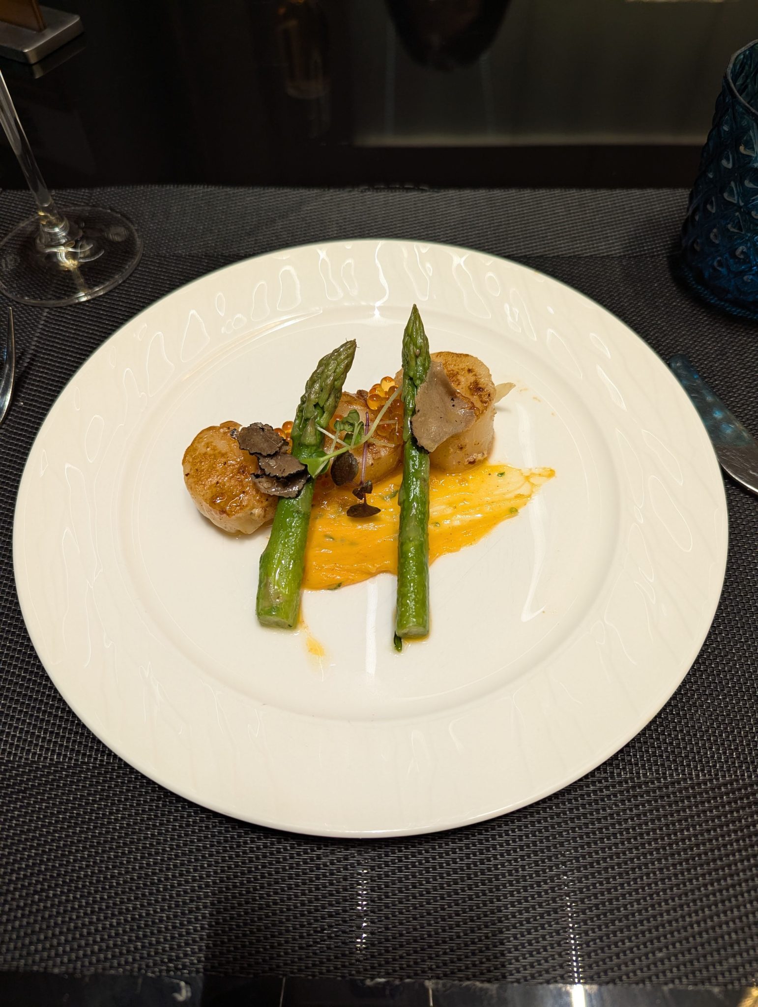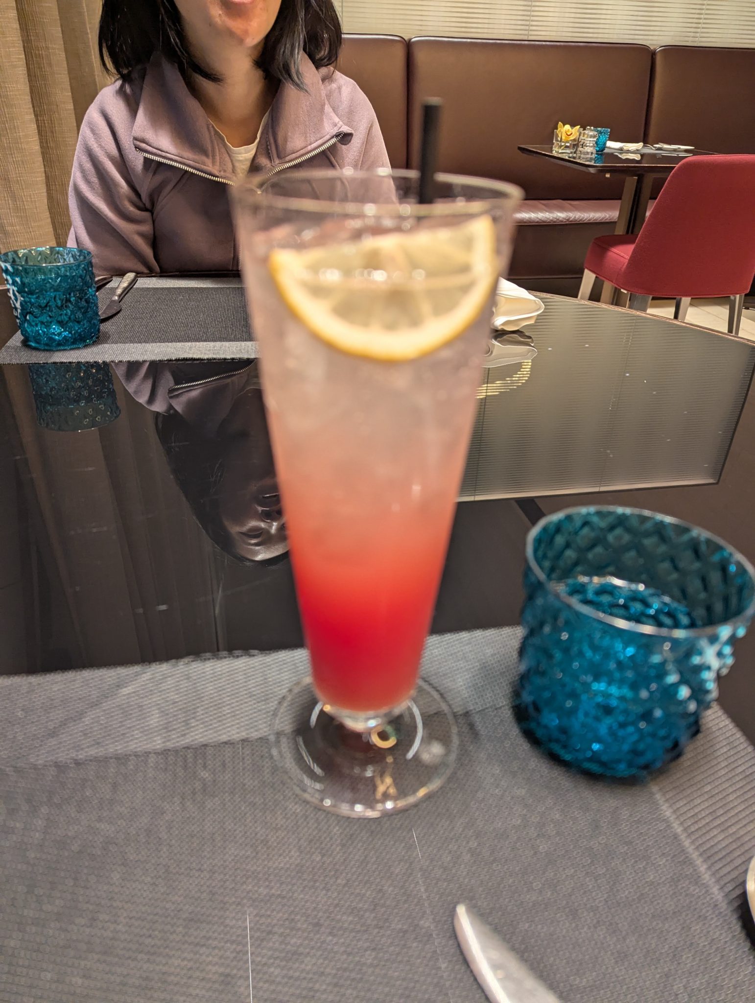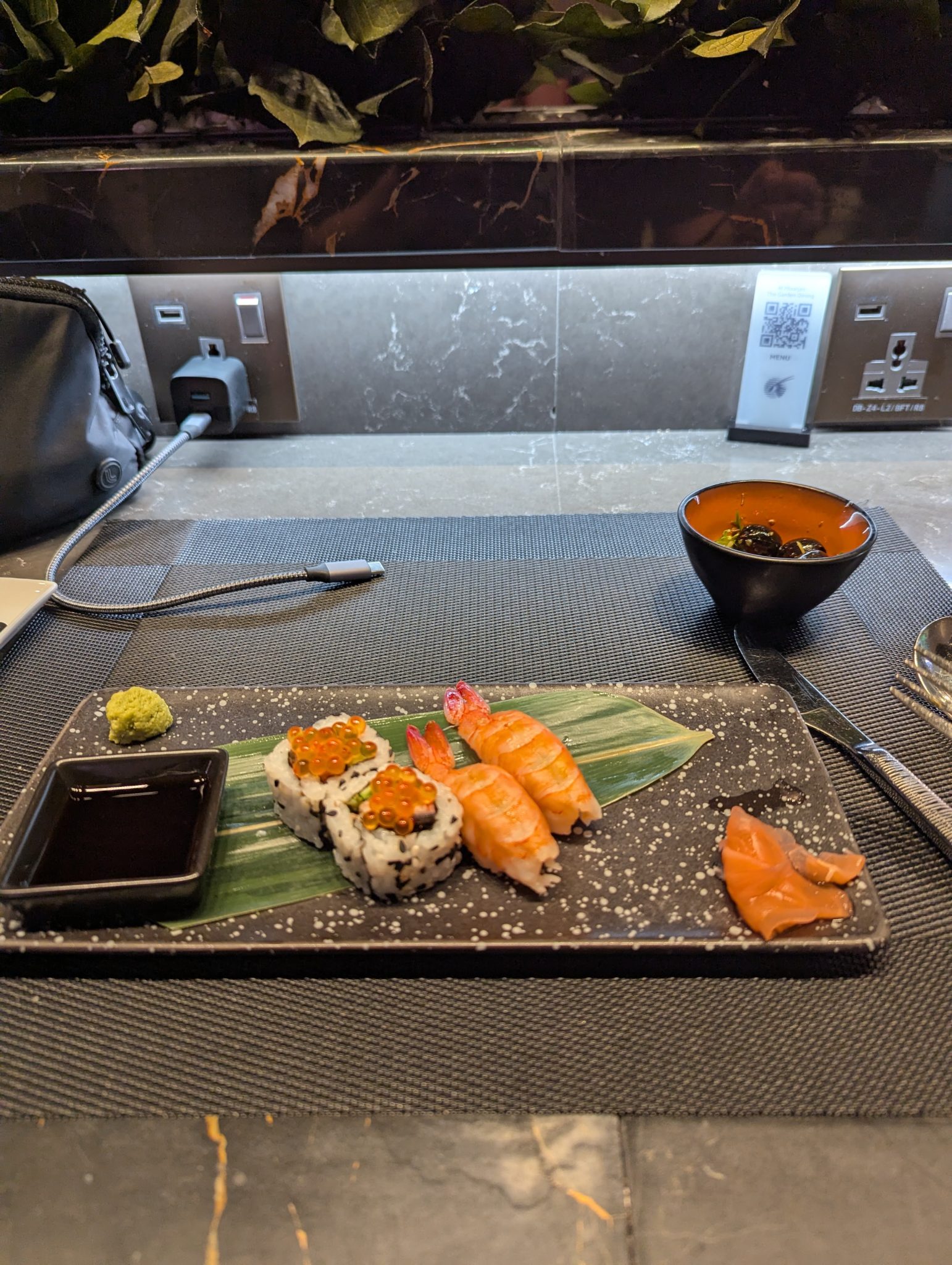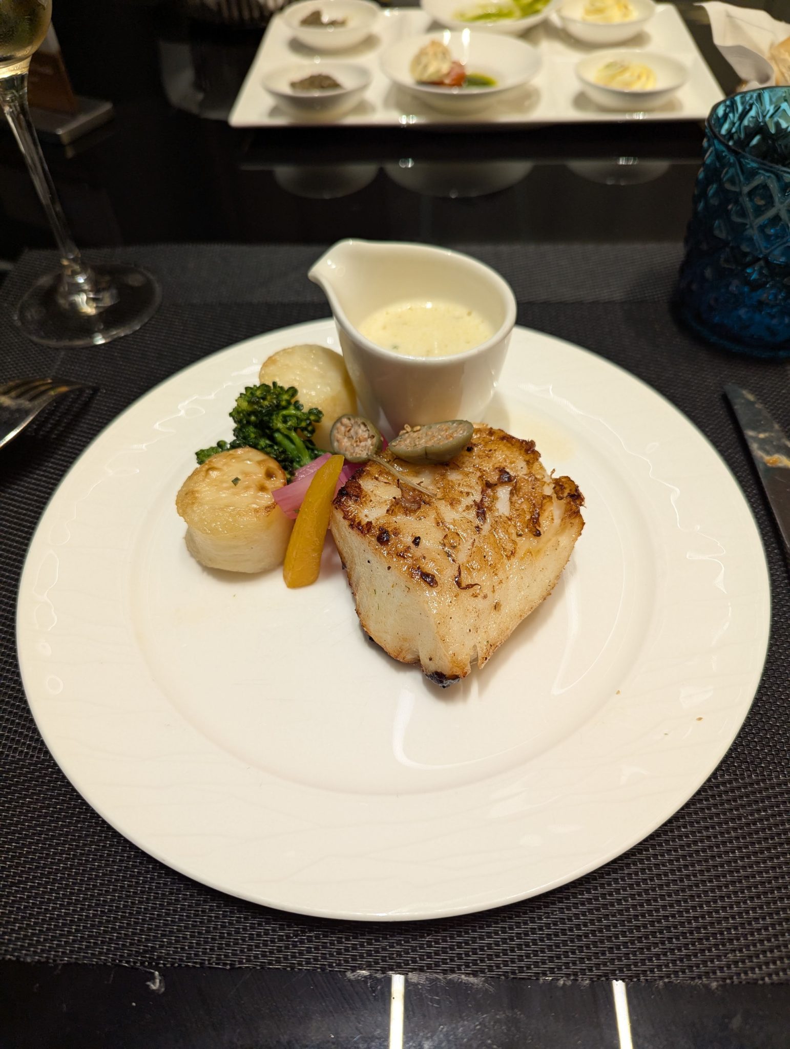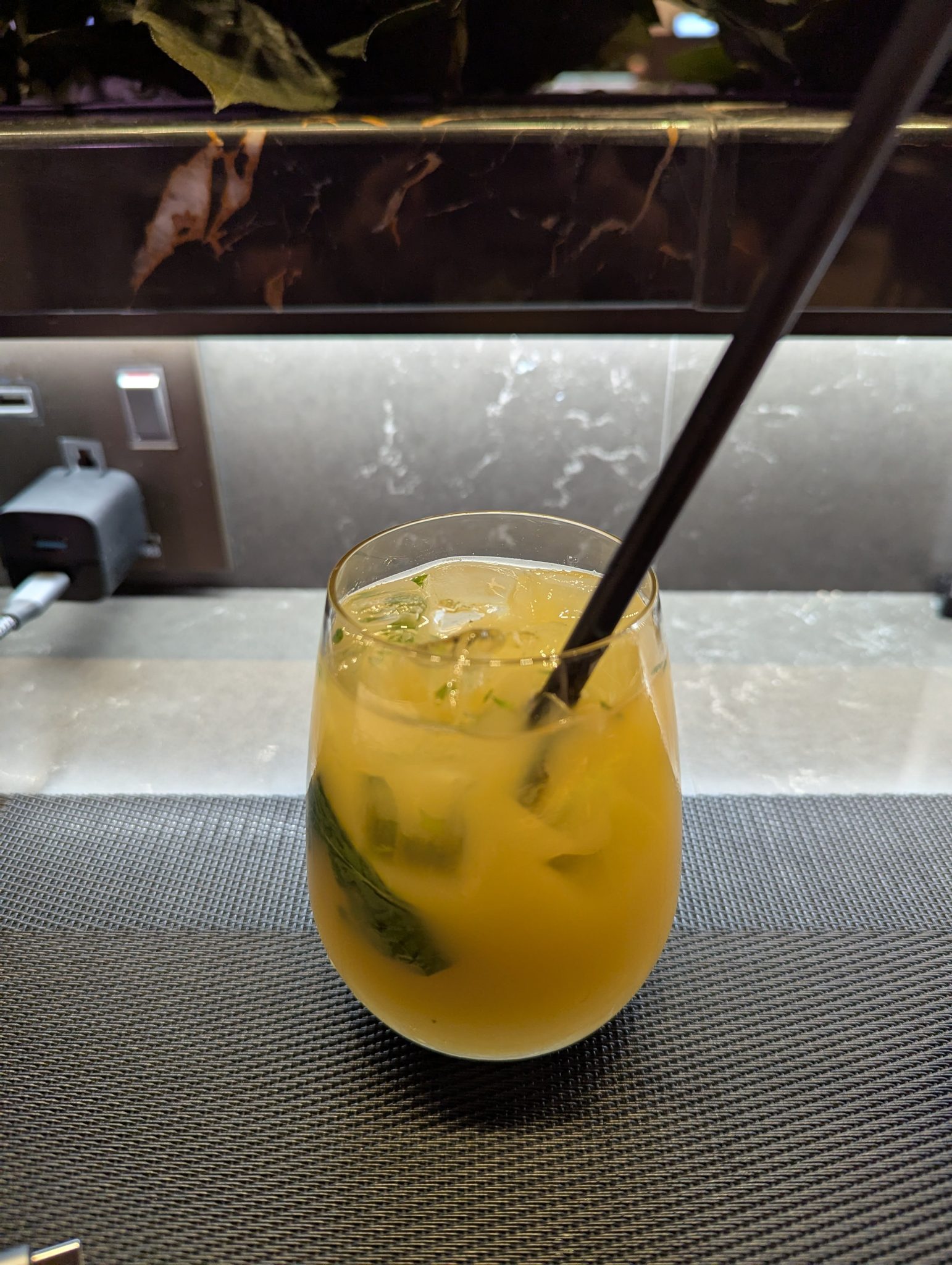 One of the cool features of this lounge is the a la carte dining option. They have some fairly high end dining options which the Sister and I decide to indulge in. For drinks I opt for a watermelon cooler (how could I not!) and a Lanson brut. We get two appetizers in the Arabic mezze and Seared scallops. For my main I order the Sea bass. All the food is actually really good! In fact we liked the scallops so much we end up ordering it again, so have two helpings of the scallops!