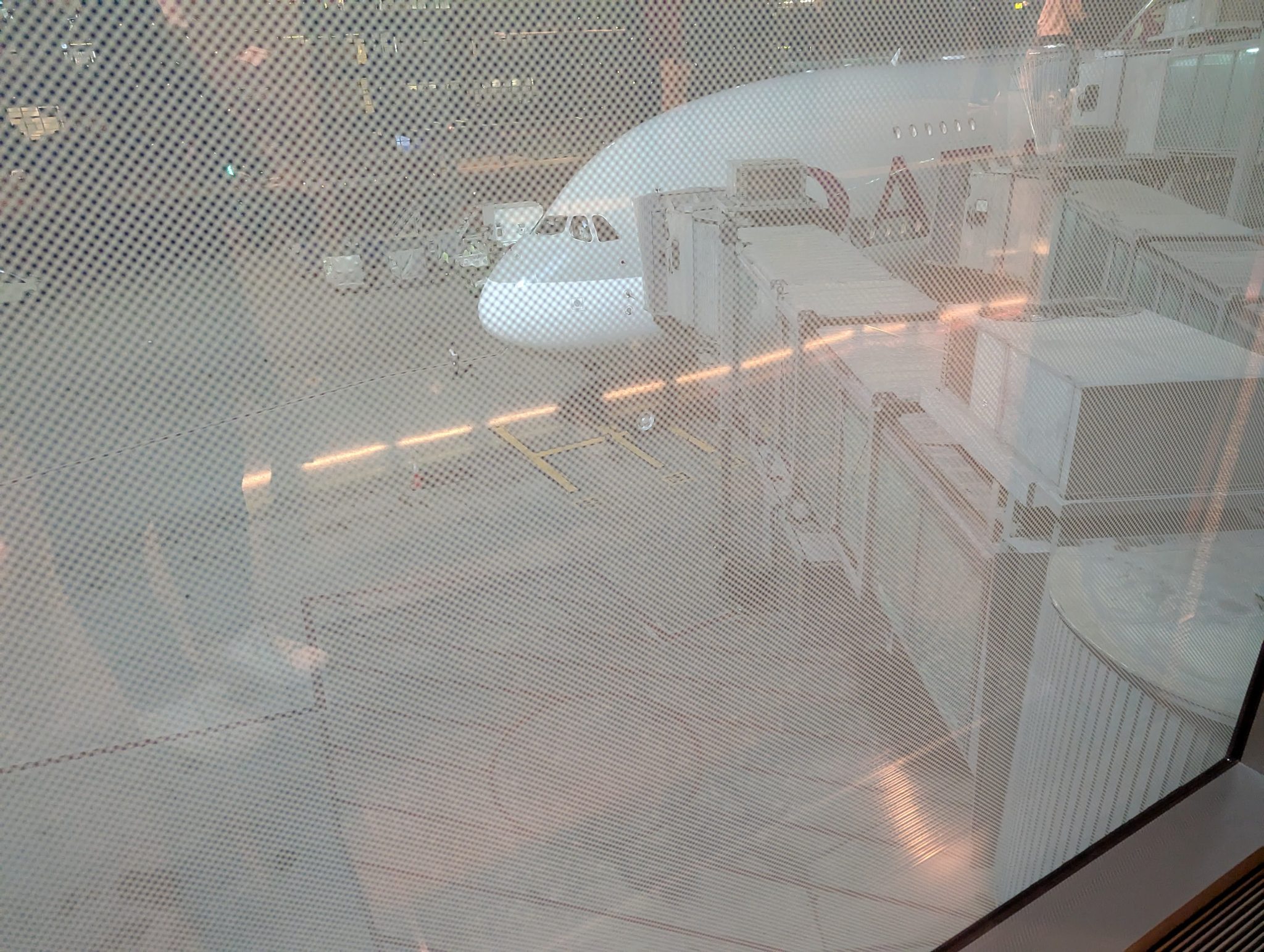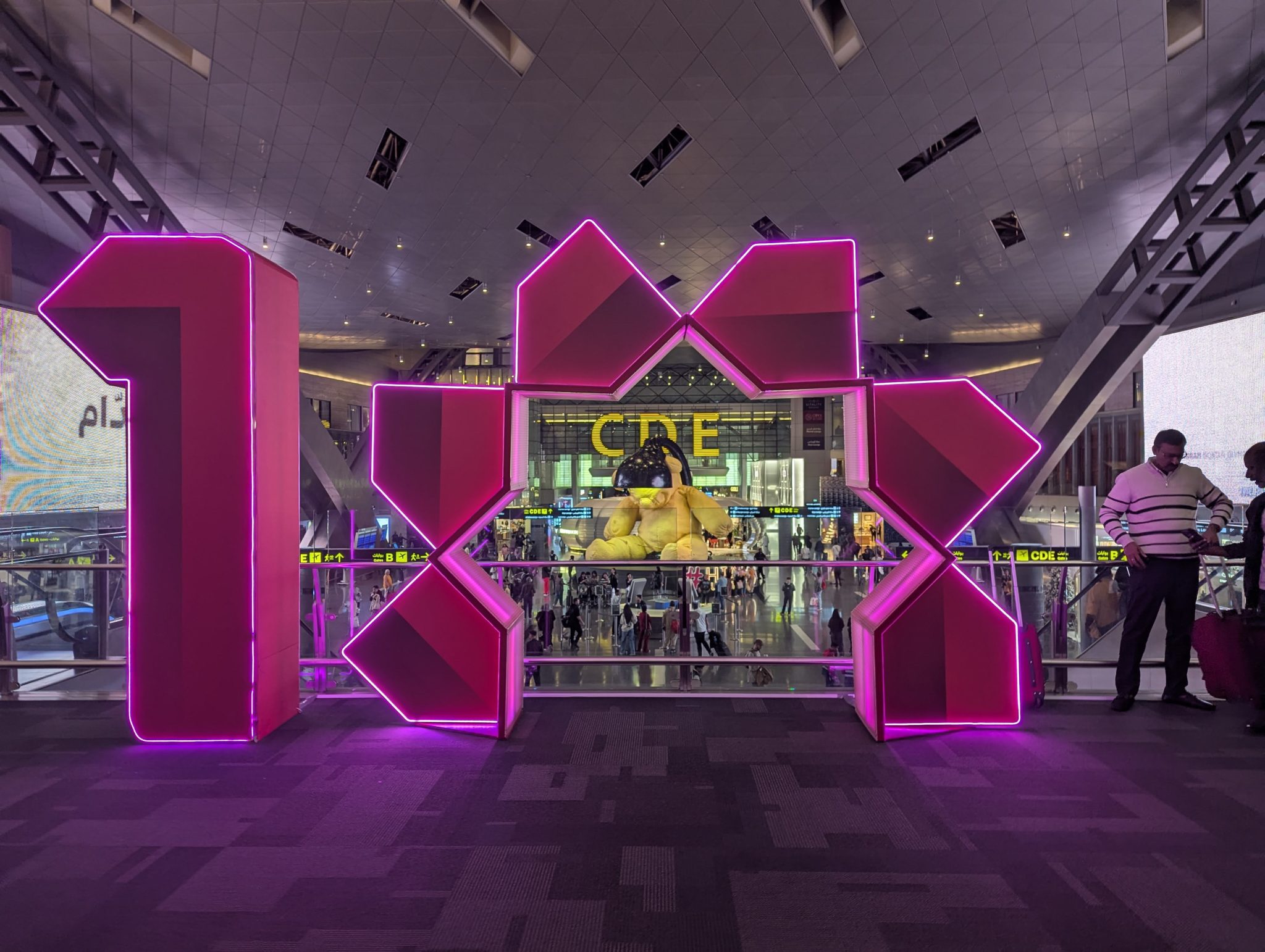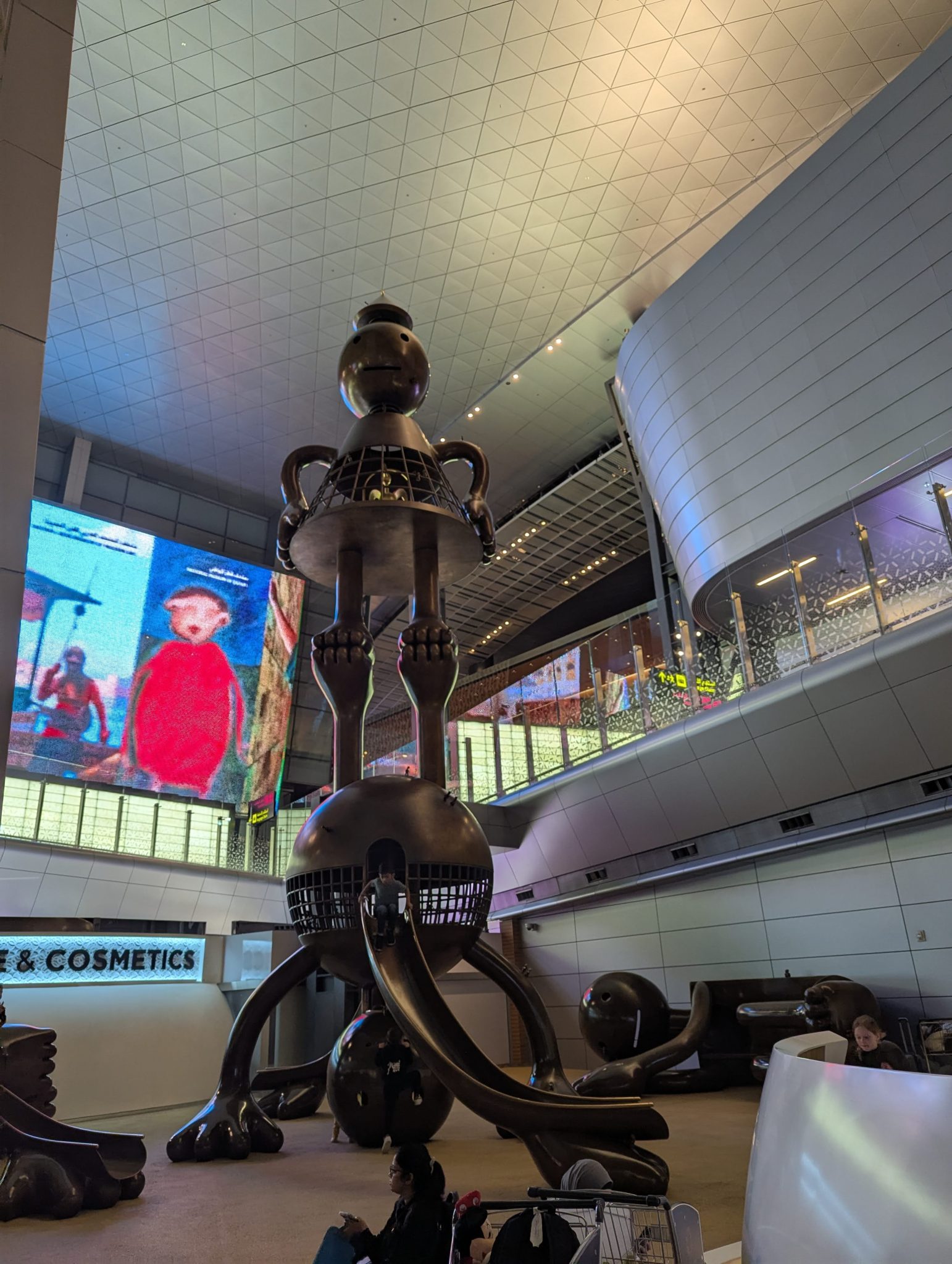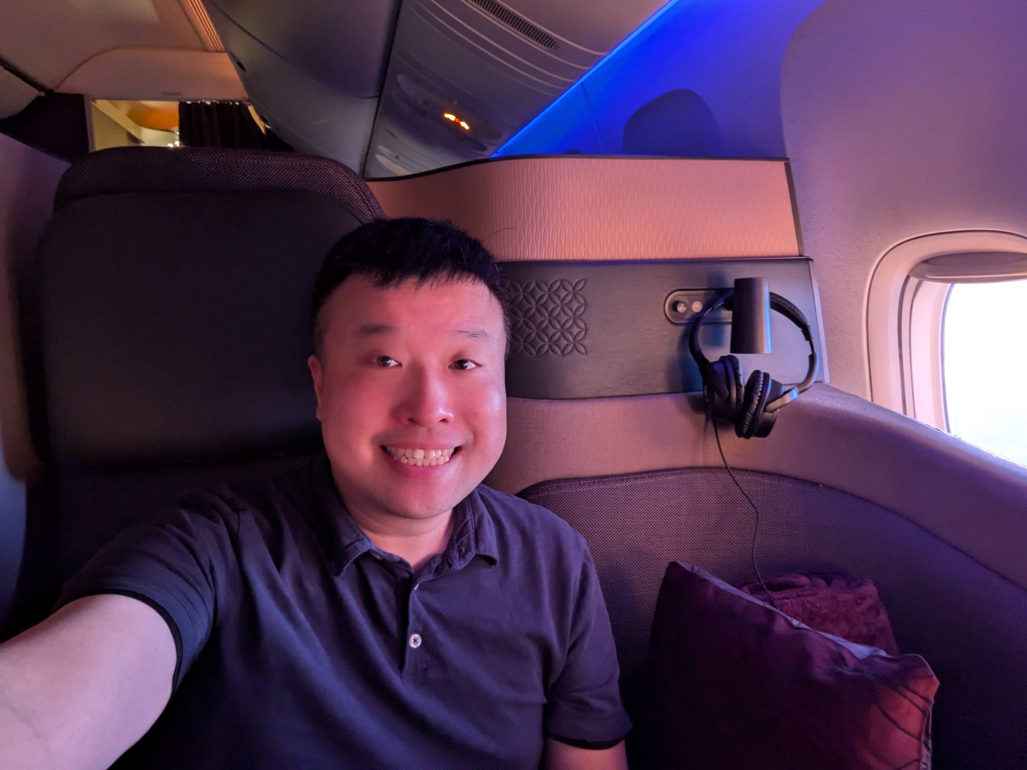 Another cool thing about Qatar airways is they are an official sponsor of Formula 1. And so the provided pajamas have formula 1 livery on it which is pretty cool for a fan like me! The Qsuite bed is also quite nice and private with the addition of a door. This allows your “pod” to be completely closed off. I did catch a few hours of sleep here and there. Even though the pods are comfortable, I find that as I get older, it gets harder and harder to sleep on airplanes. Regardless it’s still an excellent way to get to the other side of the world and am very happy to get to do it! And after a smooth journey across the Atlantic we touch down in Hamad International Airport in Doha!