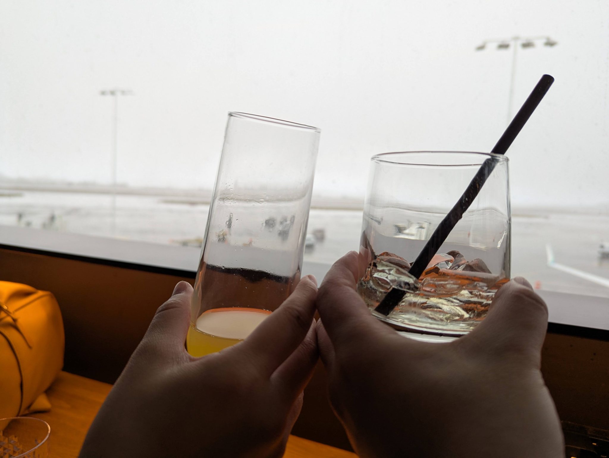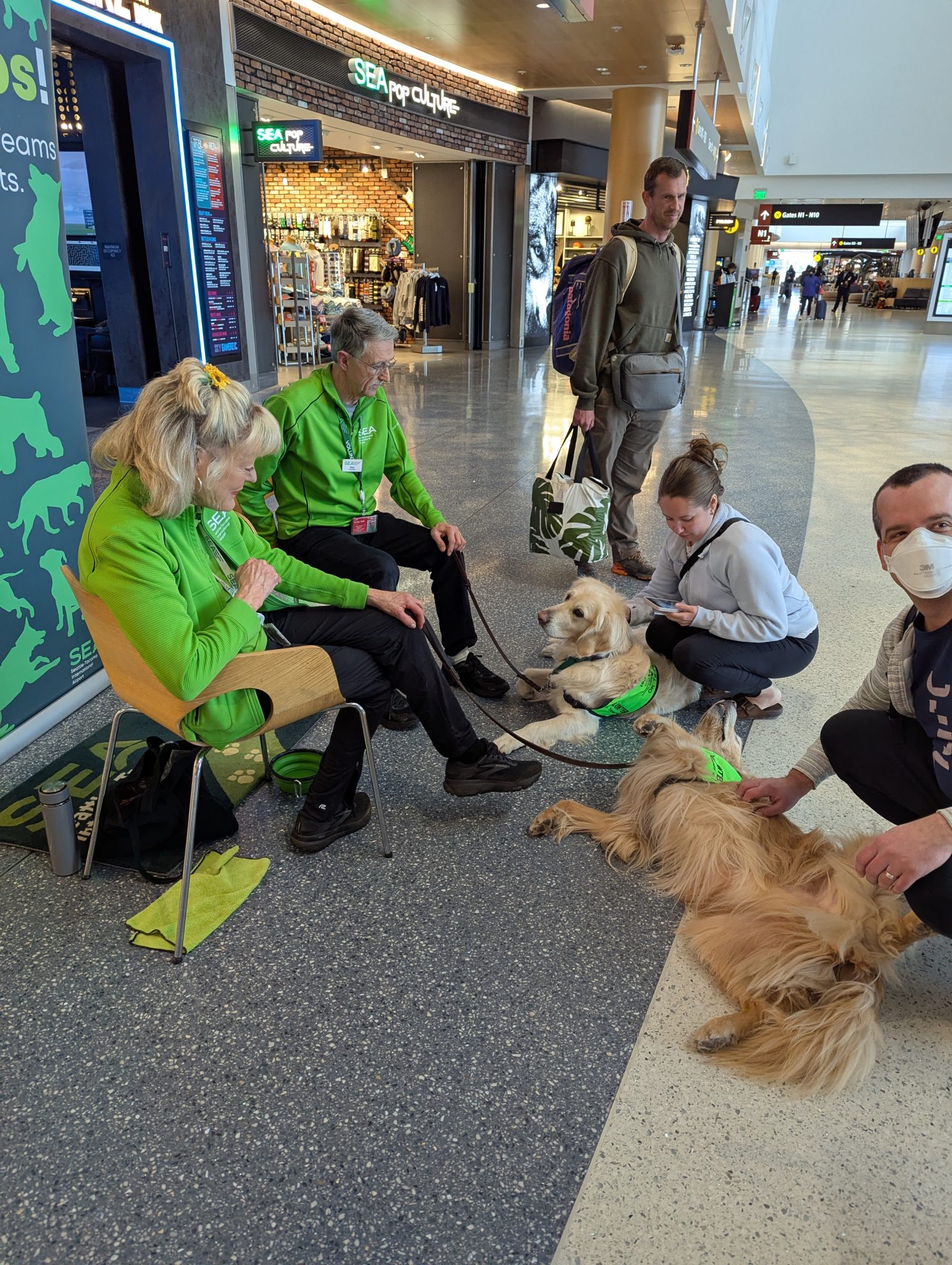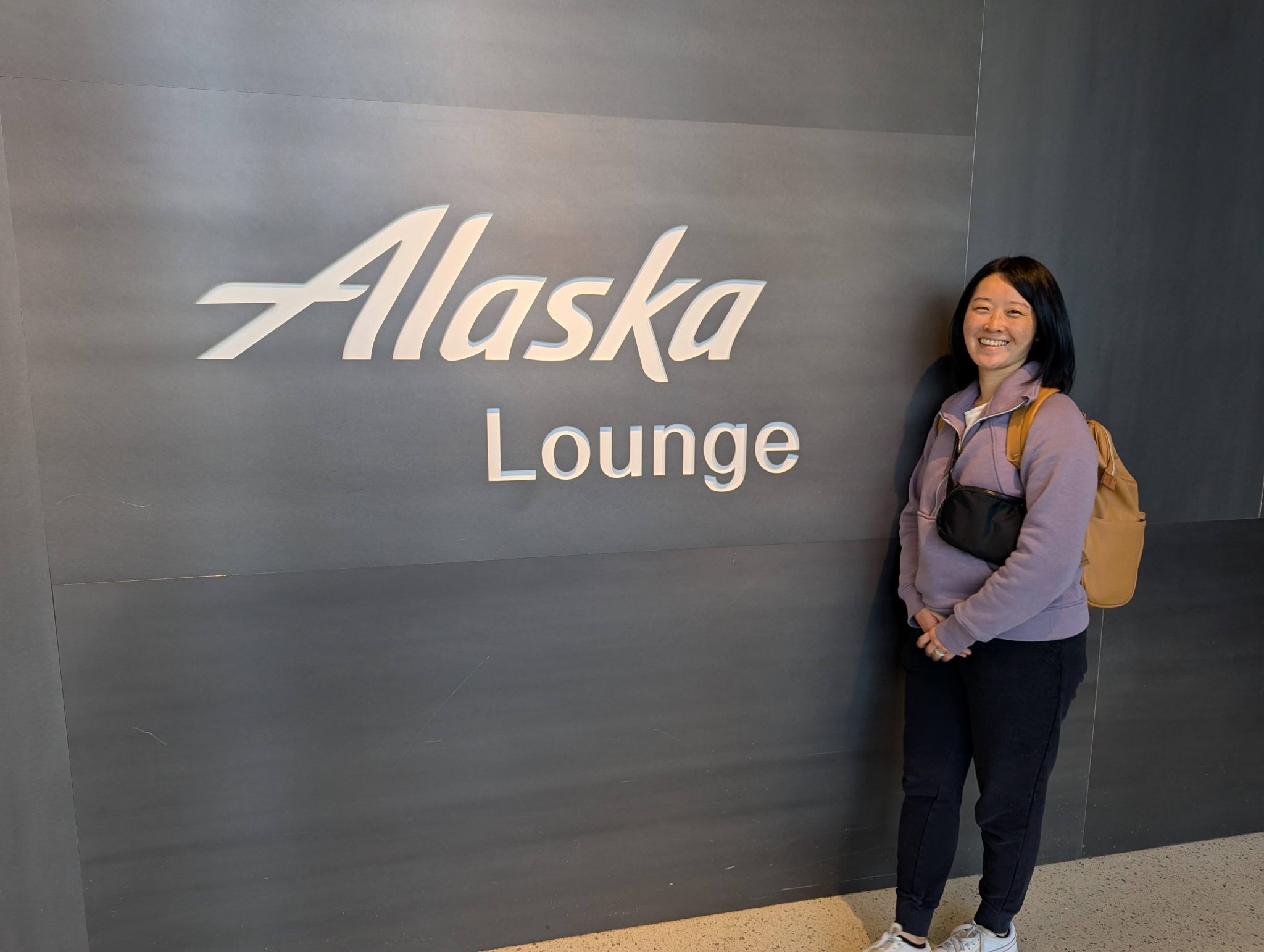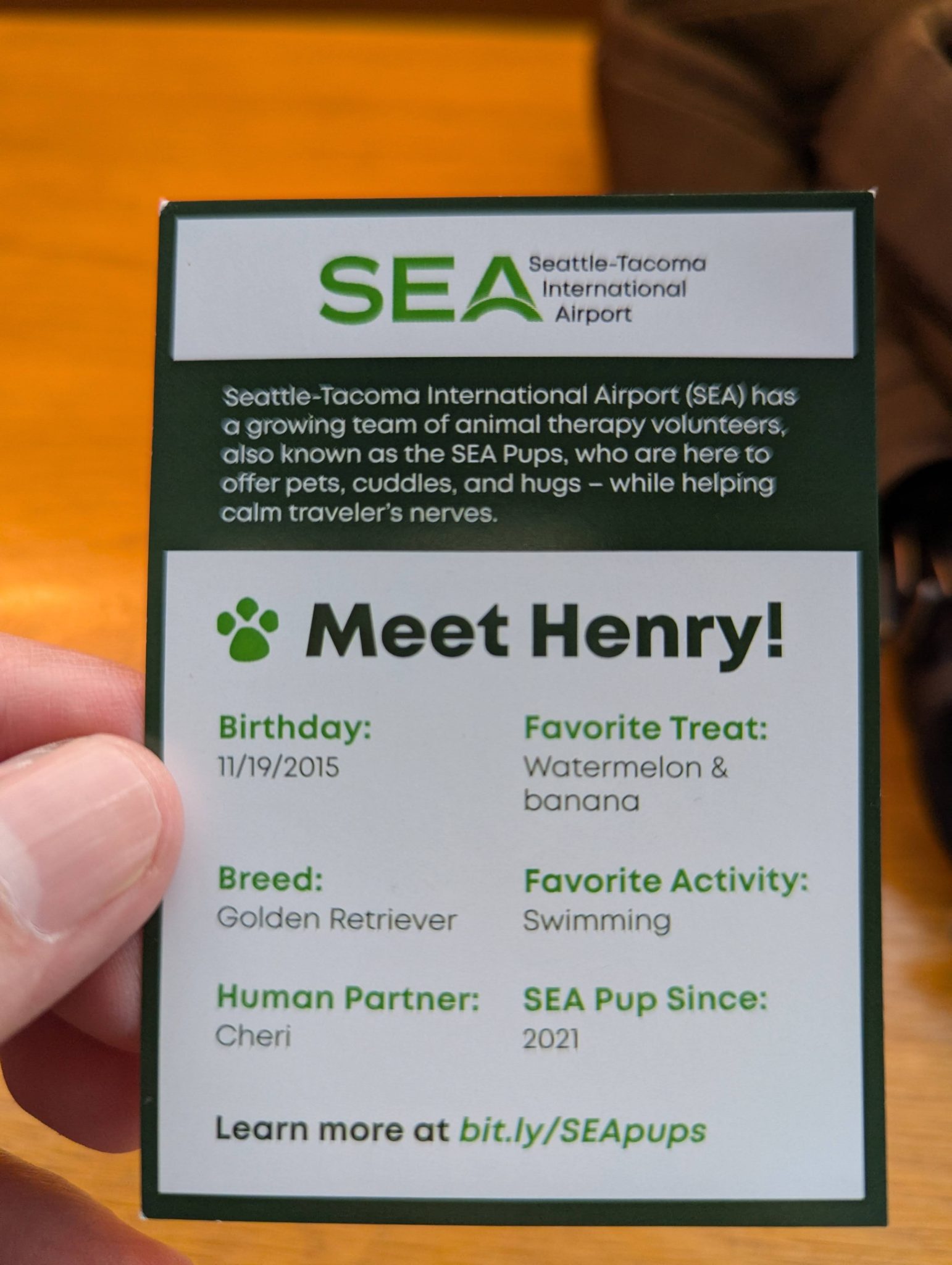 After checking in and passing through security, we have some time to kill. As we head towards the Alaska Lounge we’re quickly side tracked by two cute dogs in the middle of the concourse. They are part of the SEA Pups program, which helps to calm the nerves of anxious travellers. But for the Sister and I we were just there for pets and the cuddles! Henry is the dog I take a liking too and he even has similar tastes in treats to me: watermelon and bananas! We reluctantly pull ourselves away from the doggos and make our way to the lounge. We partake in some beverages and light snacks and enjoy some great views of the tarmac.