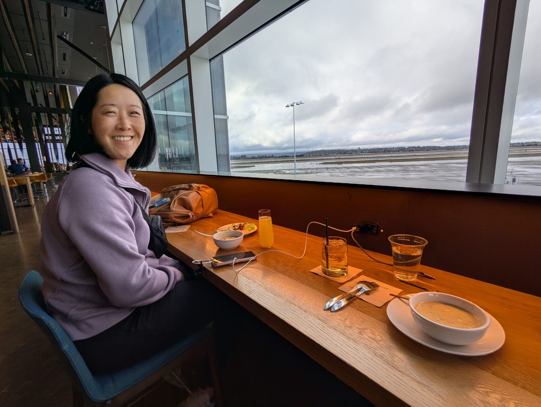 When its time for boarding we make our way to the gate. The Sister and I are looking forward to our upcoming flights. As part of our sibling trip we made bookings on Qatar Airway’s business class from Seattle to Doha and then onward to Bangkok in First class. Some consider the Business class Qsuite to be one of the best in the sky and so we’re both very excited to try it. For me not only is it a new airline and premium product to try. But it’s also an opportunity to share in the experience with a loved one. Having the Sister onboard and experiencing the same joys of travel makes this whole thing that much better.