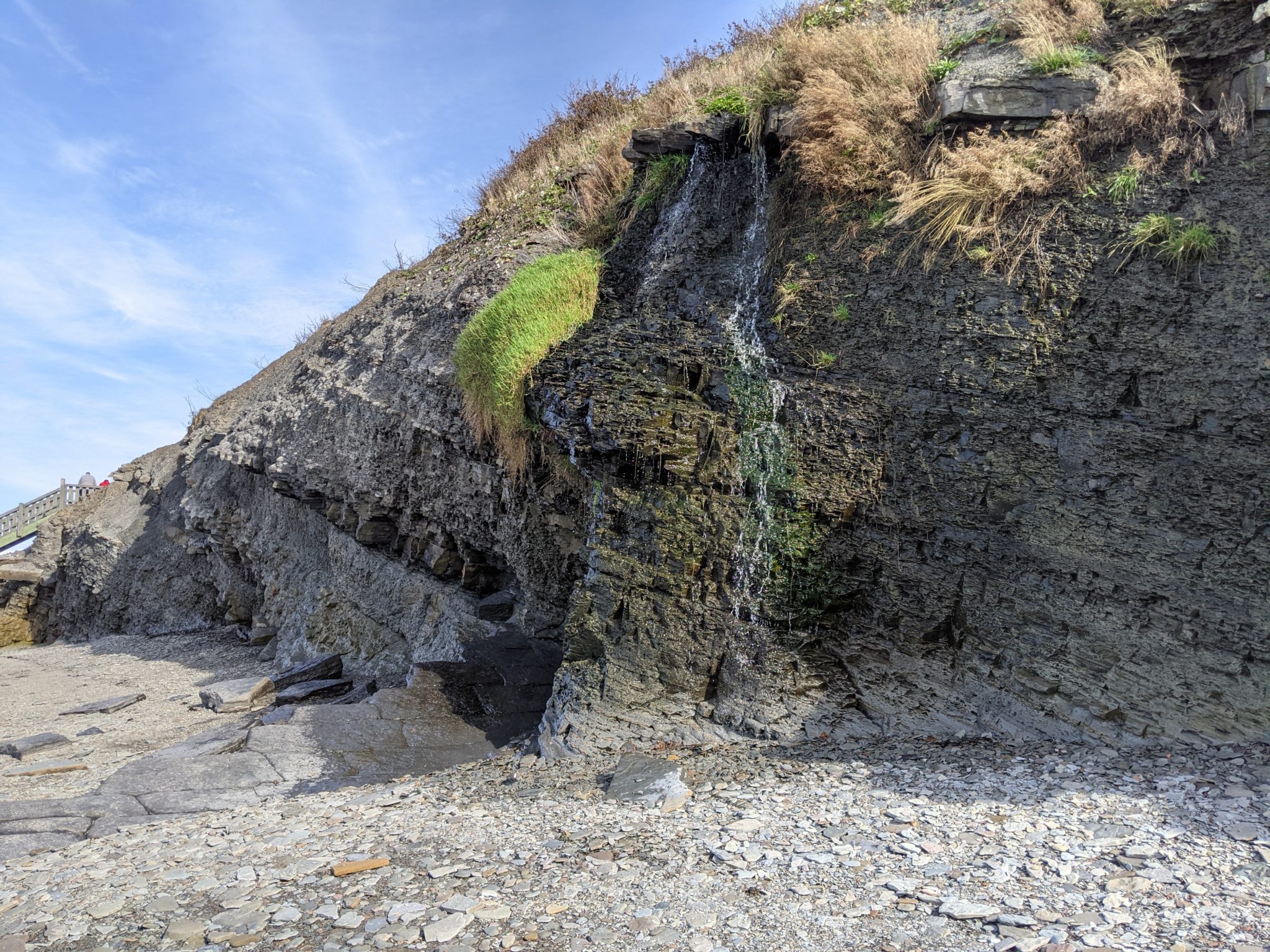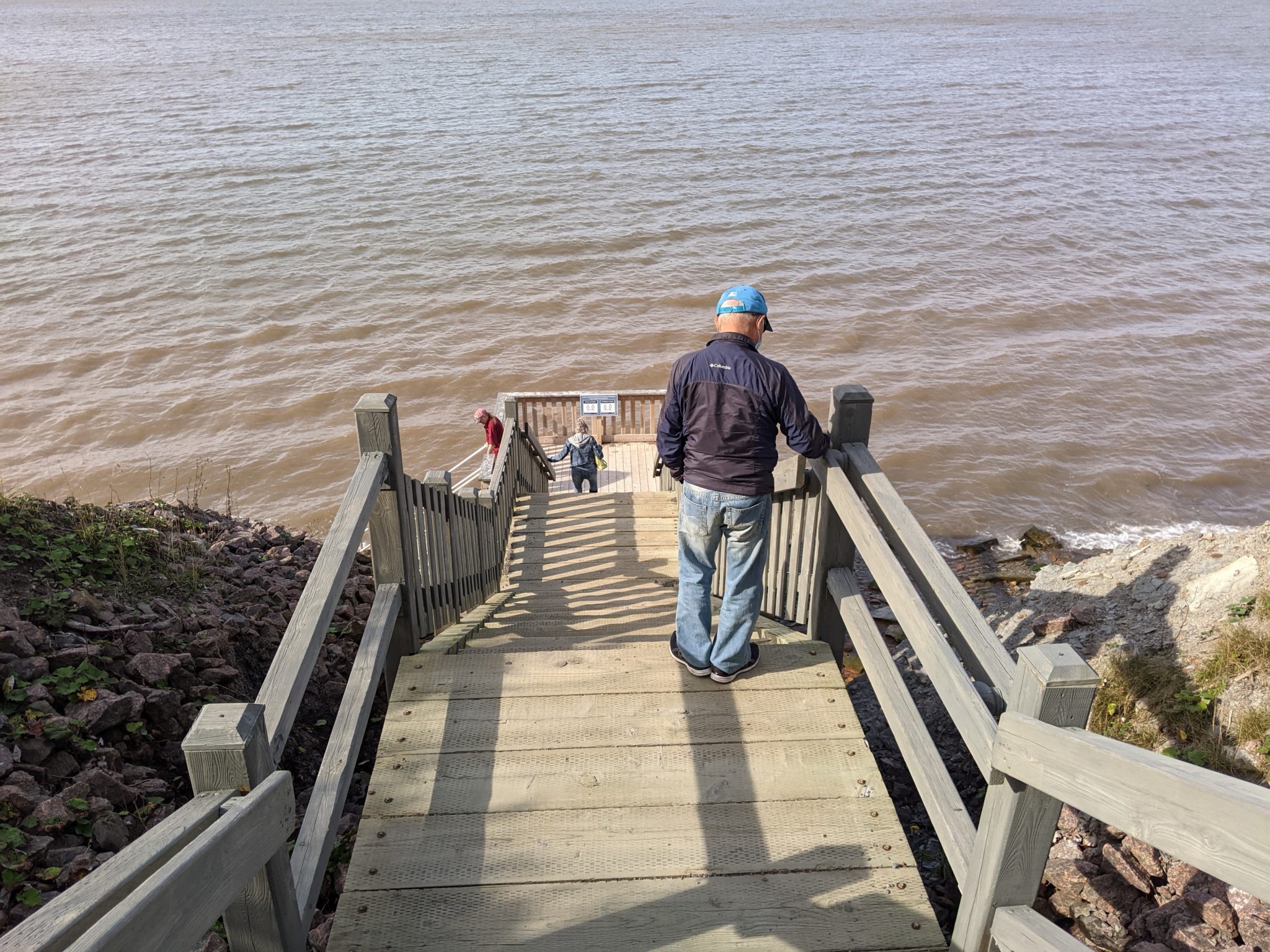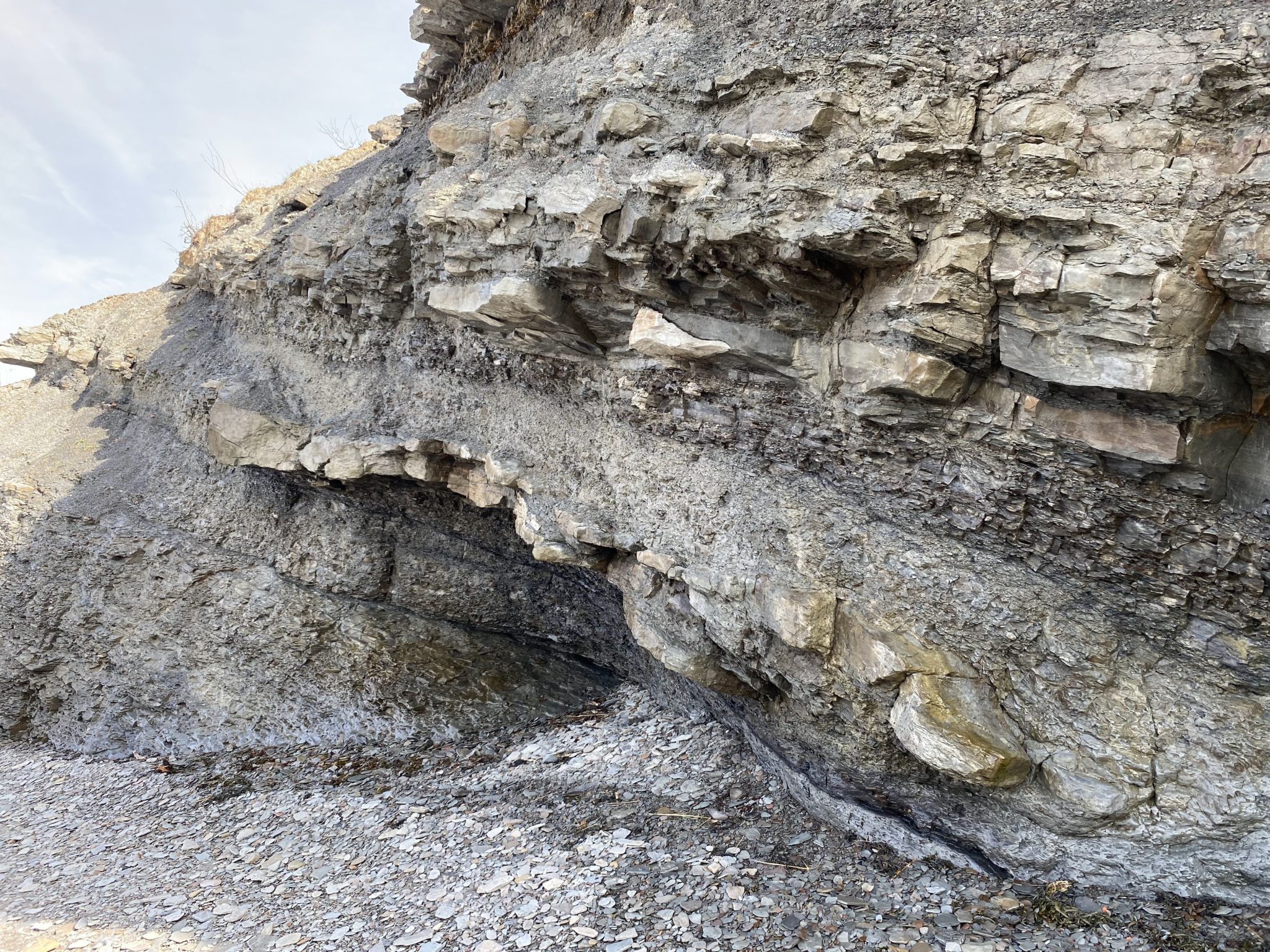 Along the way is a stop at Joggins Fossil Cliffs. I didn’t know anything about this stop, but its something Papa Minion had researched and insisted we go to. The Joggins Fossil Cliffs is a Unesco World Heritage Site. It exposes layers of rock for a full fossilized record of the Coal Age. Because of the high and powerful tides in the Bay of Fundy, more rock is exposed over time and the potential for new fossil discovery can happen! As is the theme for our trip, the actual centre is closed for the season. However, we did get to wander down to the beach and see the cliffs up close.