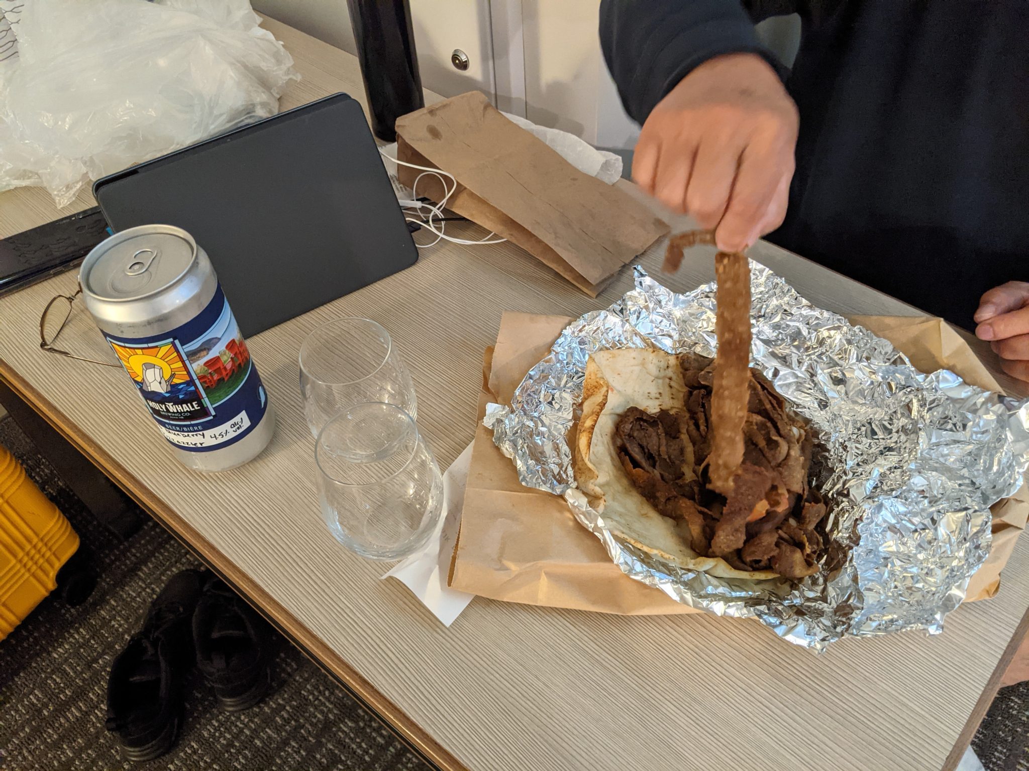 After checking in and settling at our hotel, we venture out into Dartmouth for dinner. With nothing really on the list to try, we default to comfort food of soupy noodles! Mama Minion selected Pho Hoang Minh. We must have been hungry because I didn’t end up taking any photos! On the way out of the restaurant, we spot a pizza and donair shop a few stores over. This is one of Papa Minion’s guilty pleasures and even though we just had dinner, we pick up a donair for a late night snack. A few hours later back at our hotel, we split both the donair and the remaining Holy Whale beer that we had leftover. With full bellies we settle in for the evening. Tomorrow will be our last full day in Halifax.