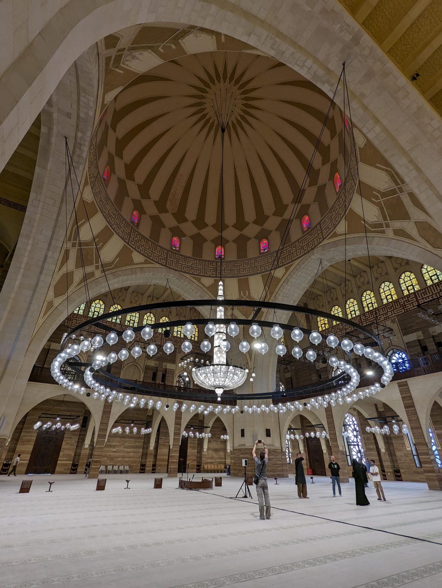 With a full belly, I set out for to visit Bahrain’s Al Fateh Grand Mosque. To my knowledge this is the main one in Bahrain and it’s very nice both inside and out. Our guide spent a lot of time going through the Muslim faith which I really appreciate. I think in the past visits to religious sites like this sometimes lack context. But in this case, our guide went through (what I suspect) are the basics of the religion and compare it to other major religions too. So while the tour of the mosque only lasts about 15 minutes. Sitting down and talking to the guide about his faith lasts another 45 minutes or so. While the mosque is very aesthetically pleasing, I think I did feel a little underwhelmed having visited the Hassan II Mosque in Casablanca only two weeks earlier.