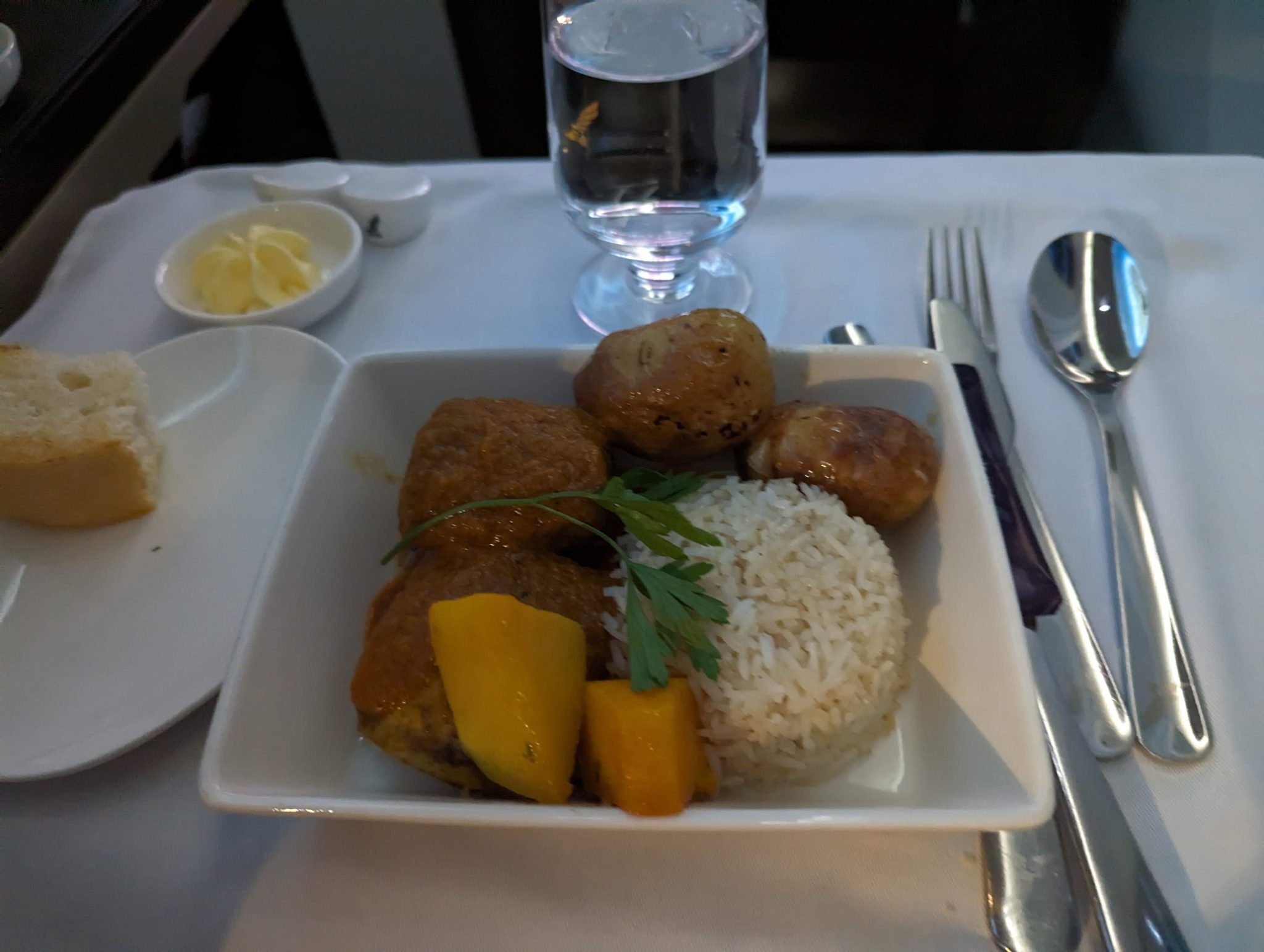 By the time we leave Bahrain, its already 2 AM and I’m pretty pooped. I’m not entirely sure why I still decided to order food on the plane. I probably should have went straight to bed but I guess when you have the opportunity for fine dining on a plane you don’t pass it up. So I quickly have my evening meal and then try to get myself a few hours of sleep.