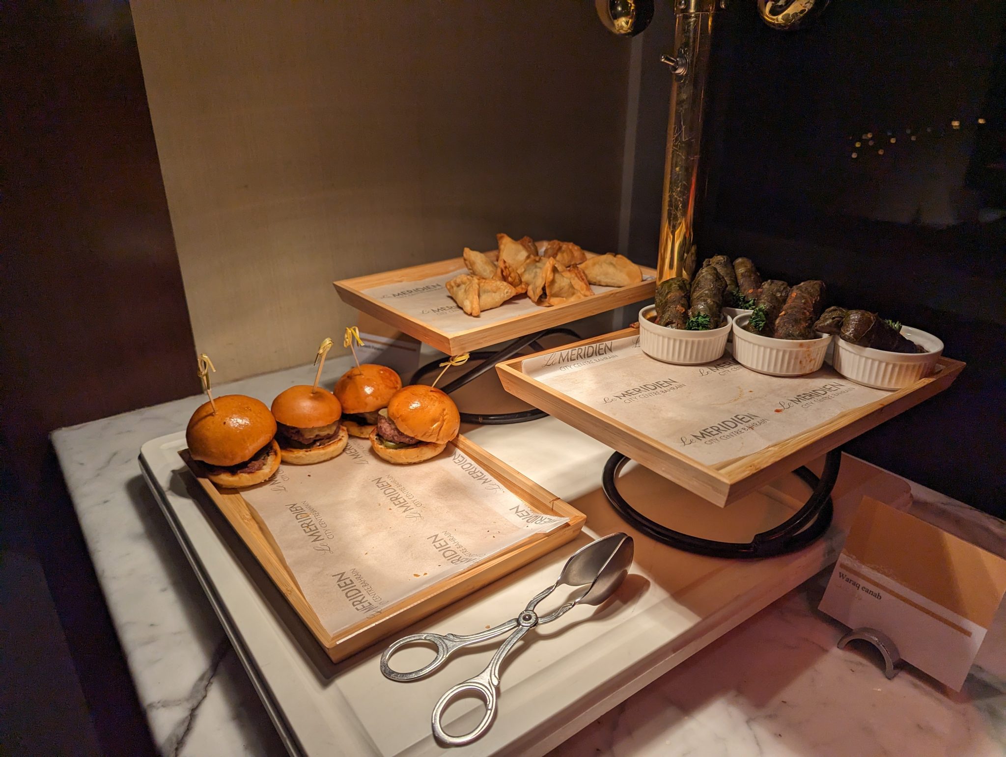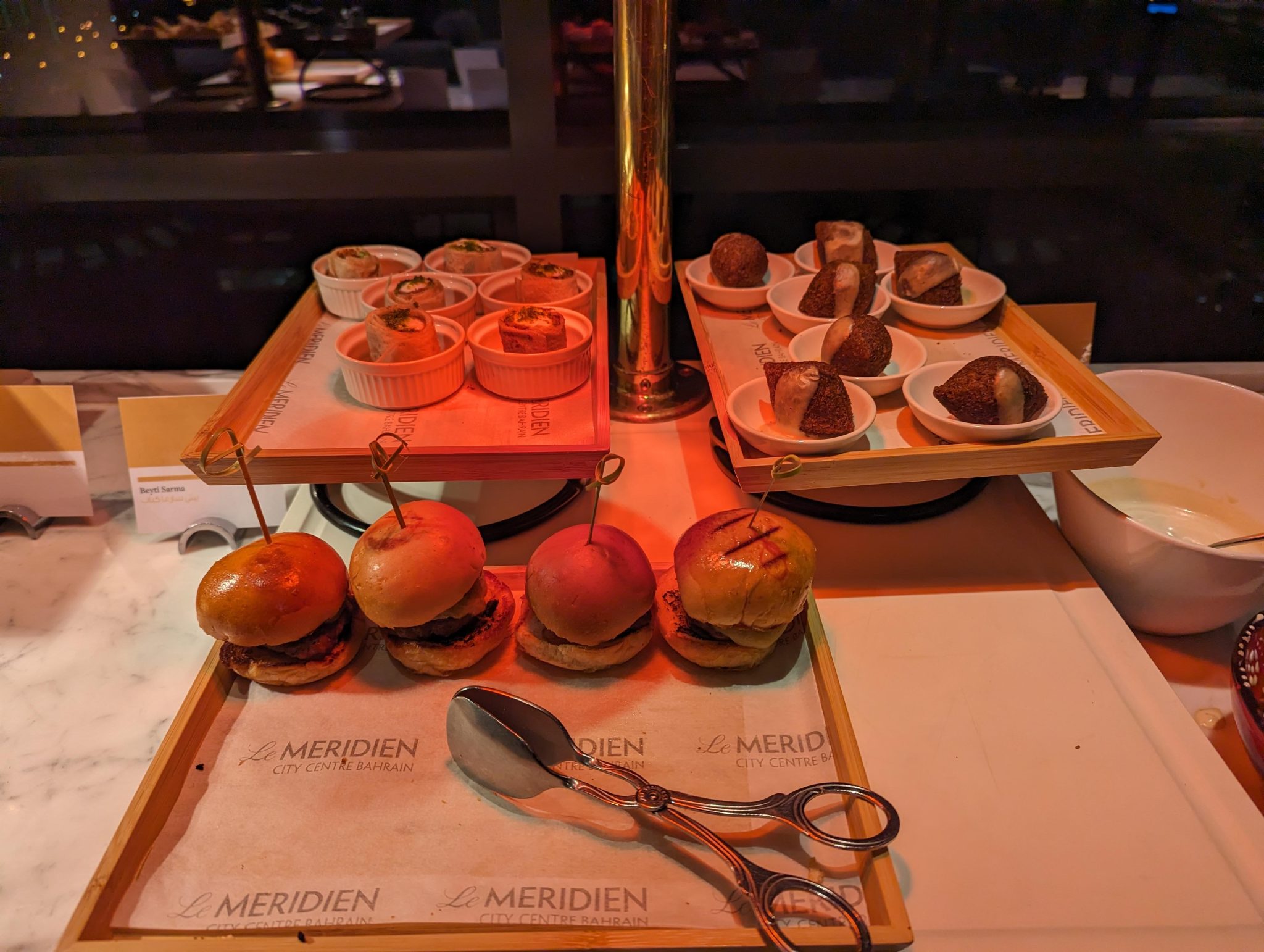 Given that this is the tail end of my trip, I intended to take it a little easier whilst in Bahrain. So after sweating through the Bahraini heat at the track and desert, I decide to relax a little at my hotel the Le Meridien. After a refreshing shower and a small nap I head to the executive lounge. This is a space available to Marriott Bonvoy members where they provide a calm place to relax and munch on some food. So relax and munch is what I did. There are some small canapes provided in the evening and I find it a great way to end off my day. Soon its time to retire back to my room and crash.
