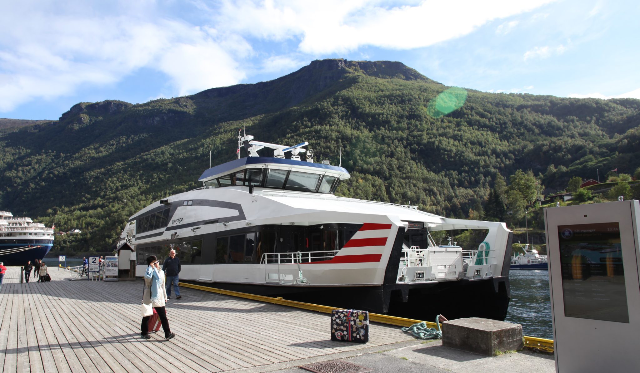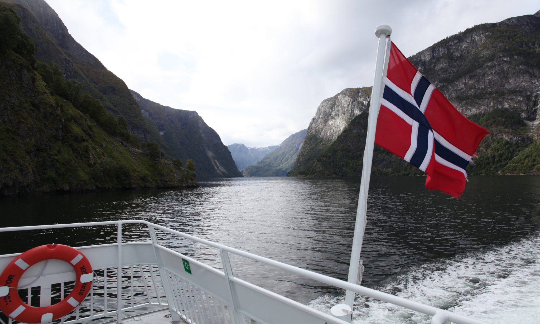 We had a full tour day today. We got up early, picked up some breakfast and made our way to the boat that we would cruise the Sognefjord with today. It turned out to be a medium sized vessel that for all intents and purposes was a very comfortable ferry. We set out for the several hour cruise towards Flam. It was a beautiful trip where we witnessed some amazing natural beauty. We stopped a few times to drop off and pick up passengers at a few small towns.