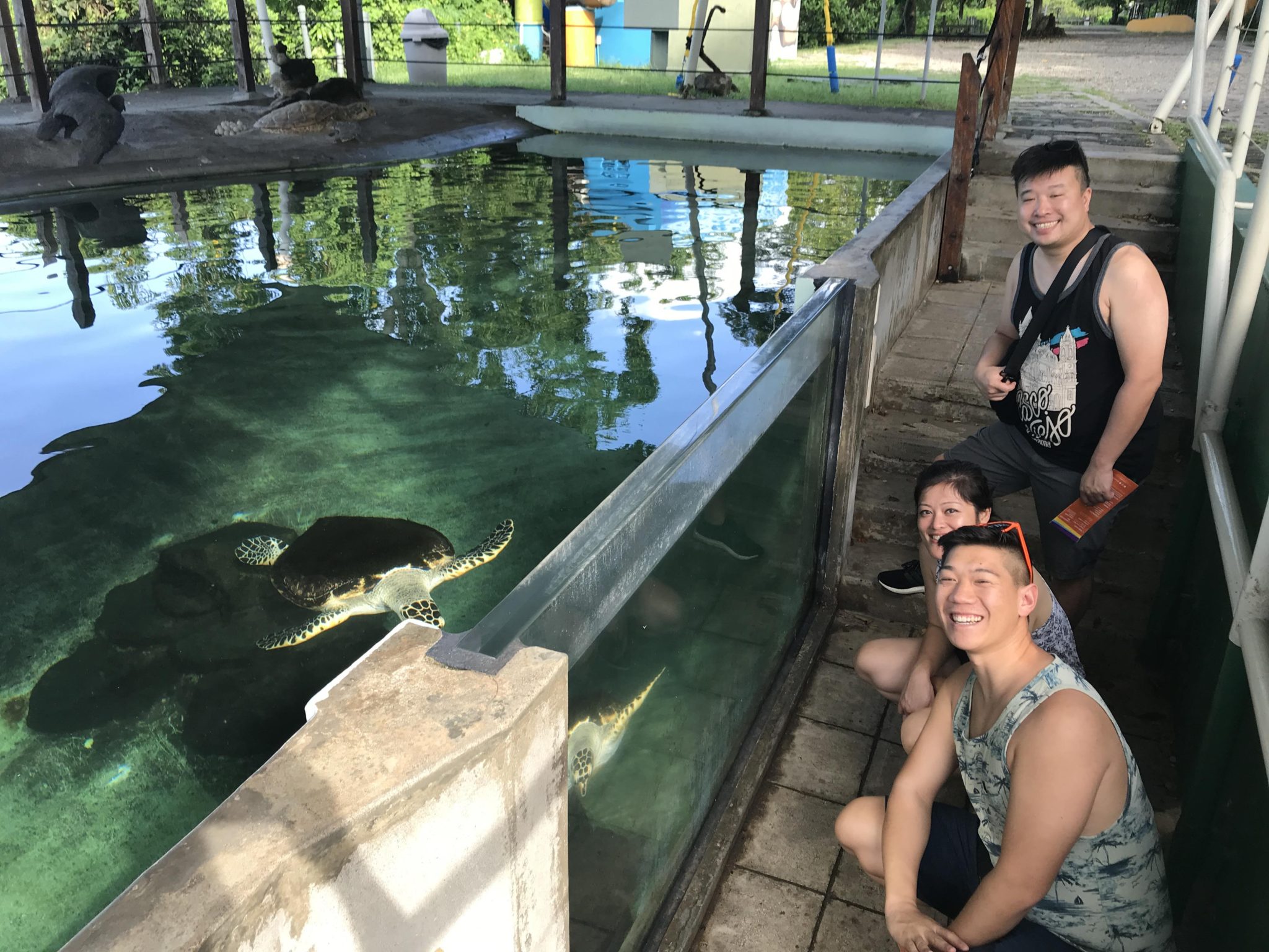 Upon arriving at the nature reserve and paying the admission, we proceed to make our way to the different exhibits inside. All the while keeping an eye out for the sloths that are hiding in the trees. Although on our way into the reserve we didn’t see any sloths, we did get a chance to check out some of the other animals and displays. This included some turtles as well as a reptile house and a fish house. Out behind the fish house is the edge of the causeway which gives some great views of the water all around as well.