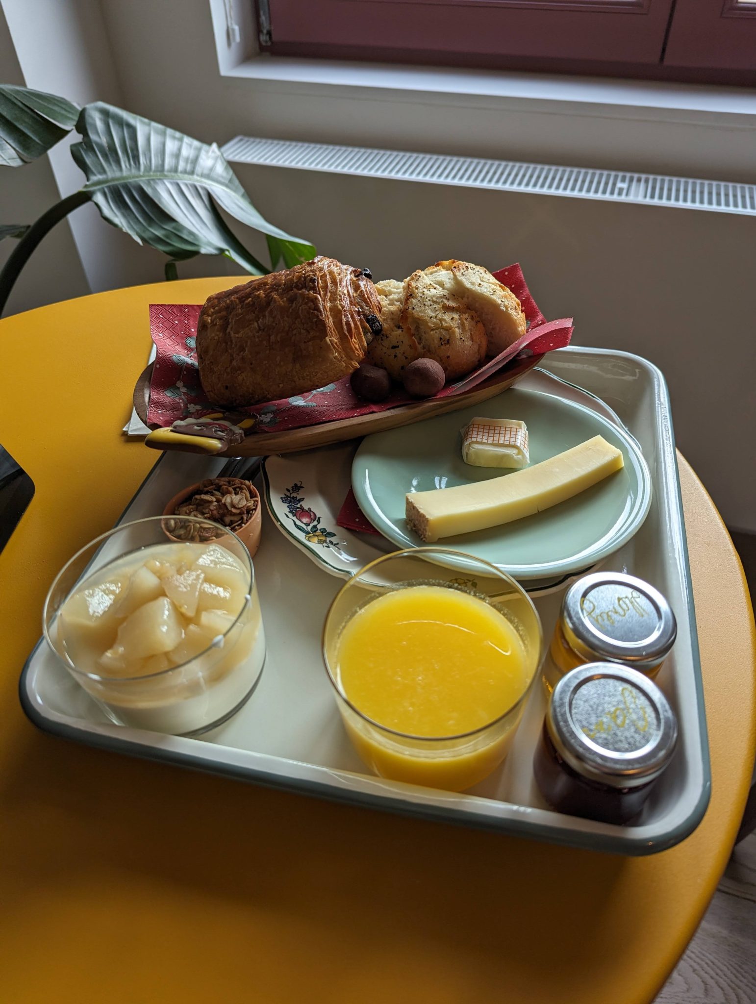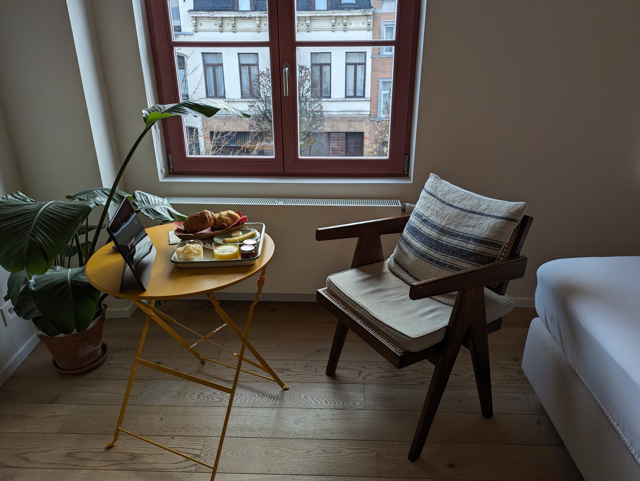 After eating I make my way back to my BnB, La Senne. Through a stroke of luck I find this place for a very affordable price in a great location. It is a beautiful little room with its own bathroom. After talking to the host I discover they have a dream of opening up a small coffee and breakfast shop on the first floor. So while they build to that, they are offering free breakfast for their guests. After travelling in the morning and exploring a rainy Brussels in the afternoon I crash pretty soon after I get back. In the morning my hosts have a beautiful breakfast tray ready for me. While my room isn’t big, it is a great setting to have a delicious breakfast while sorting out my schedule for the day!