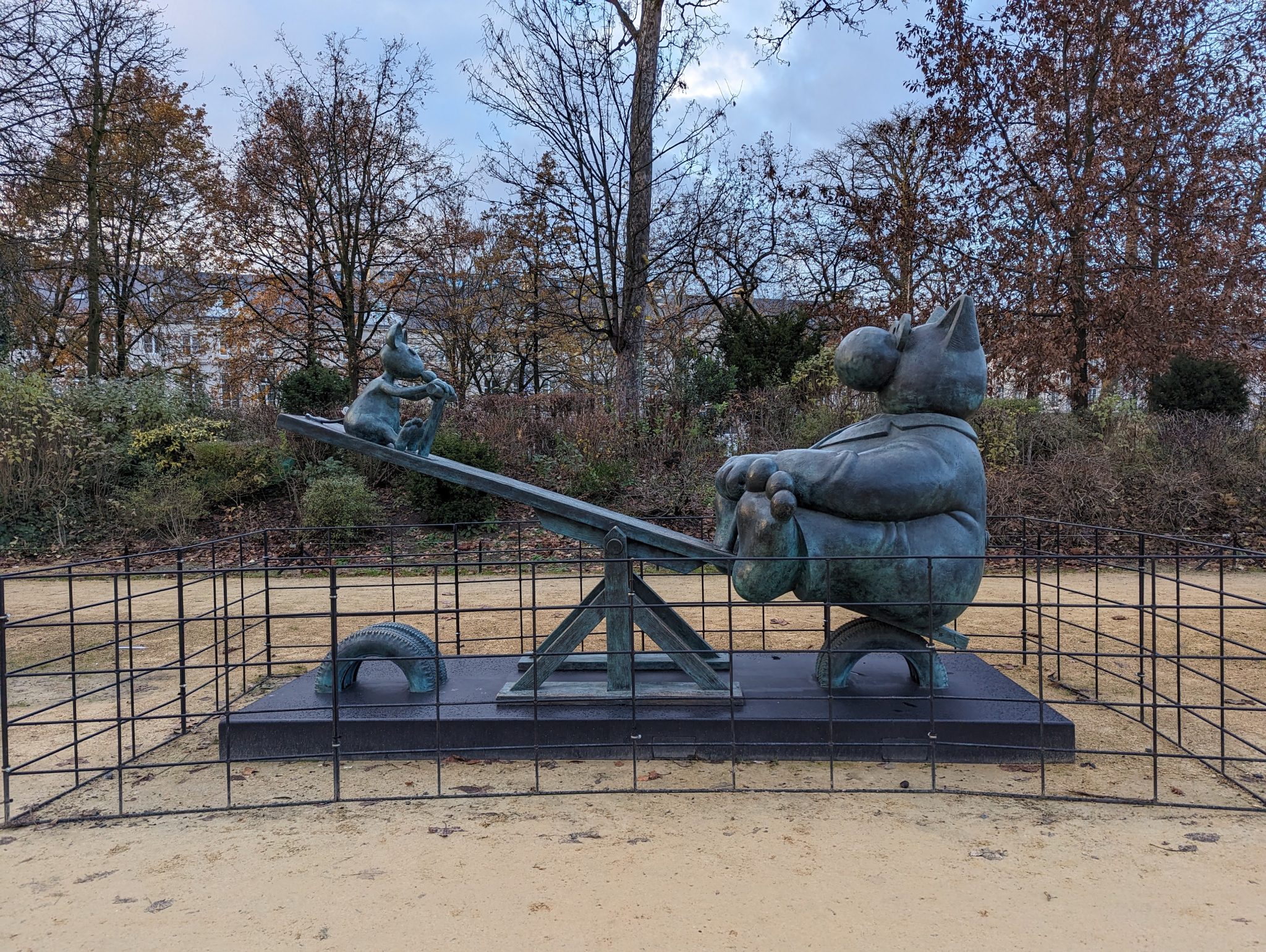 Across from the Parliament building is Brussels Park. This is a very pretty park that is between the Royal Palace and the Parliament buildings. While walking through it there are also these super fun sculptures on display along the walkways. I’m not entirely sure if its a popular cartoon or something but they’re pretty funny and I had a chuckle while passing by each one.