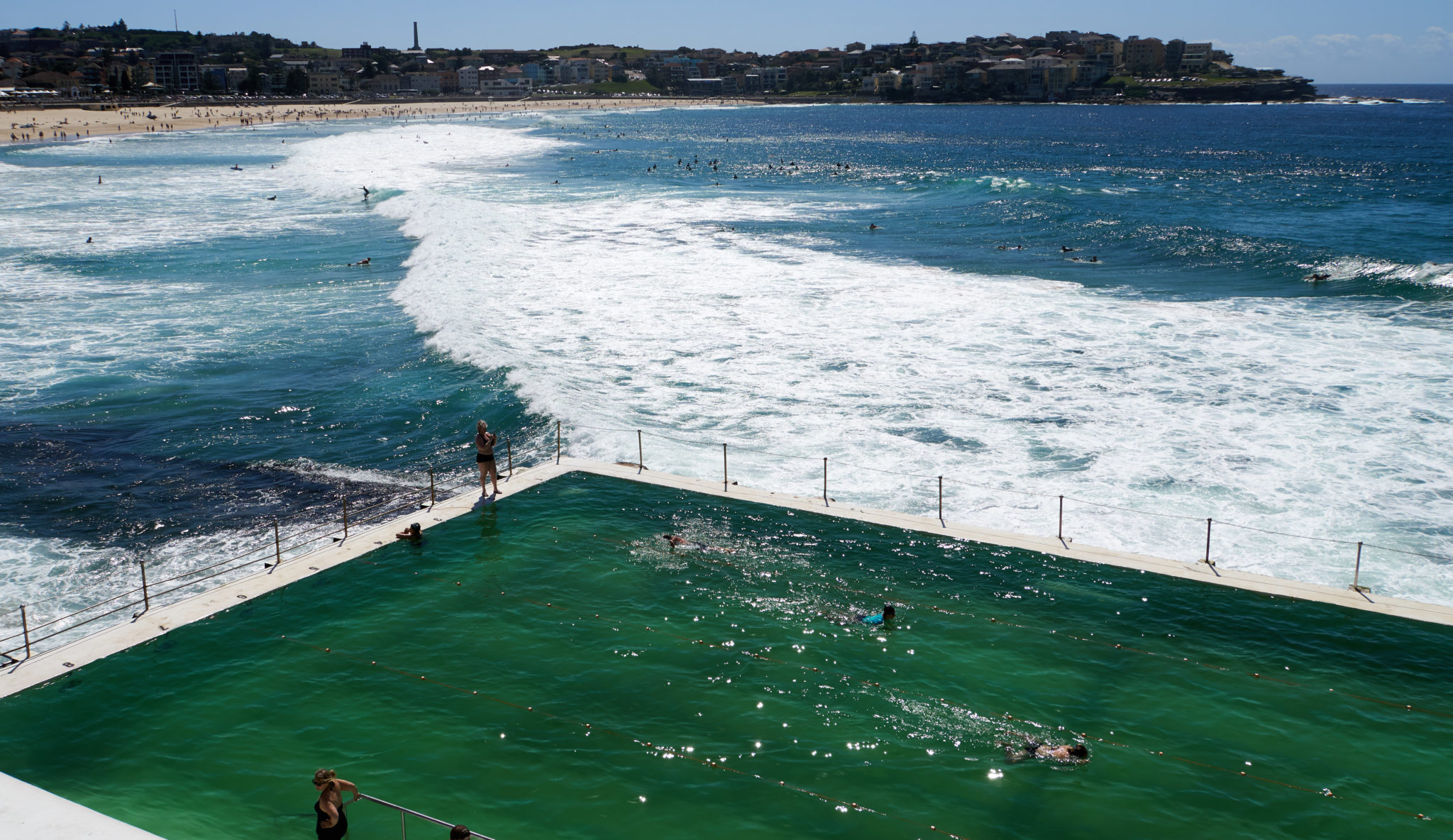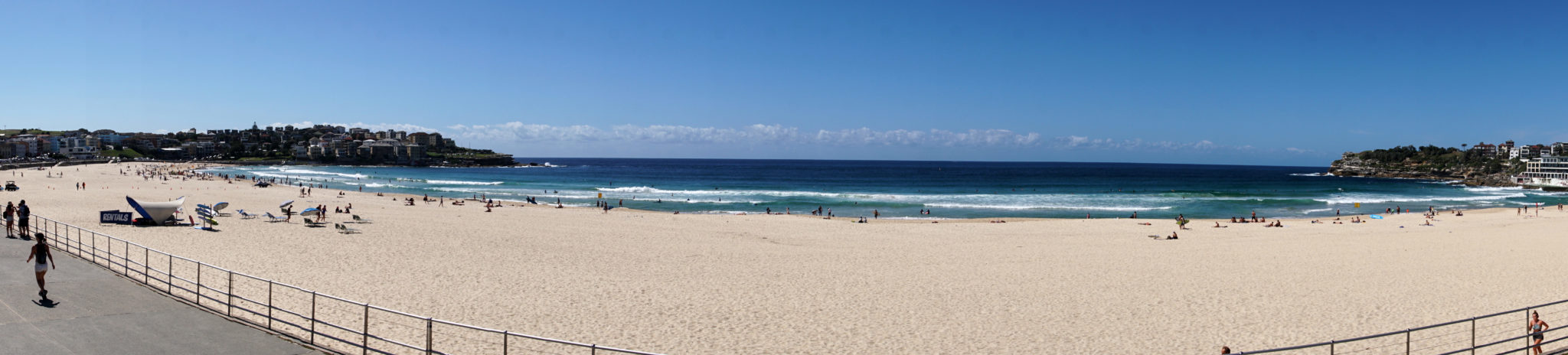 Fortunately Photo’s cousins are very close to Bondi Junction Station/ So it made getting to Bondi beach extremely easy. A single bus (381) got us there in a matter of minutes. When we arrived the initial view of Bondi beach was awesome! But like many locals have said, it was a bit crowded and touristy. We kind of expected this, but that first impression is always great!