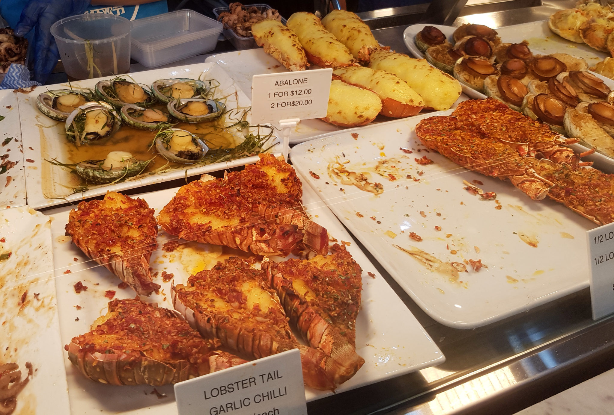 After completing the walk, we had heard a lot of good things about the Sydney Fish Market. I was reminded of a visit to Spain when you could choose from live seafood and they would cook it for you on the spot. However, I found the Sydney fish market to be far more touristy then I had hoped for. There were lots of tours going through the market, and it seemed that there was a large Asian influence to the cuisine that they were offering. Photos, one of his friends and I picked up a few items to try including fish and chips, a BBQ mackerel and I tried a scallop aburi.
