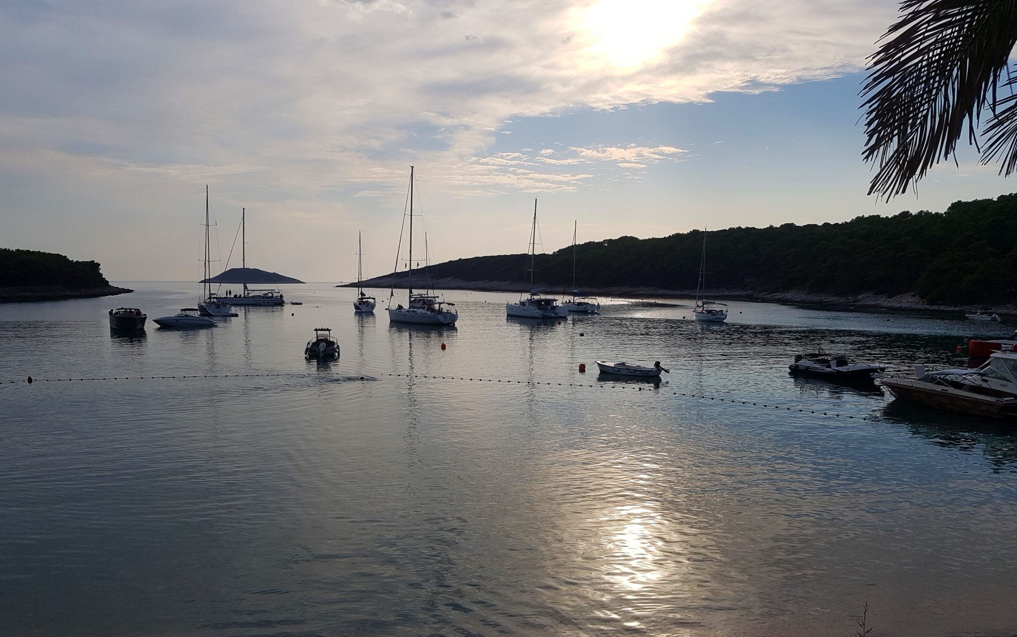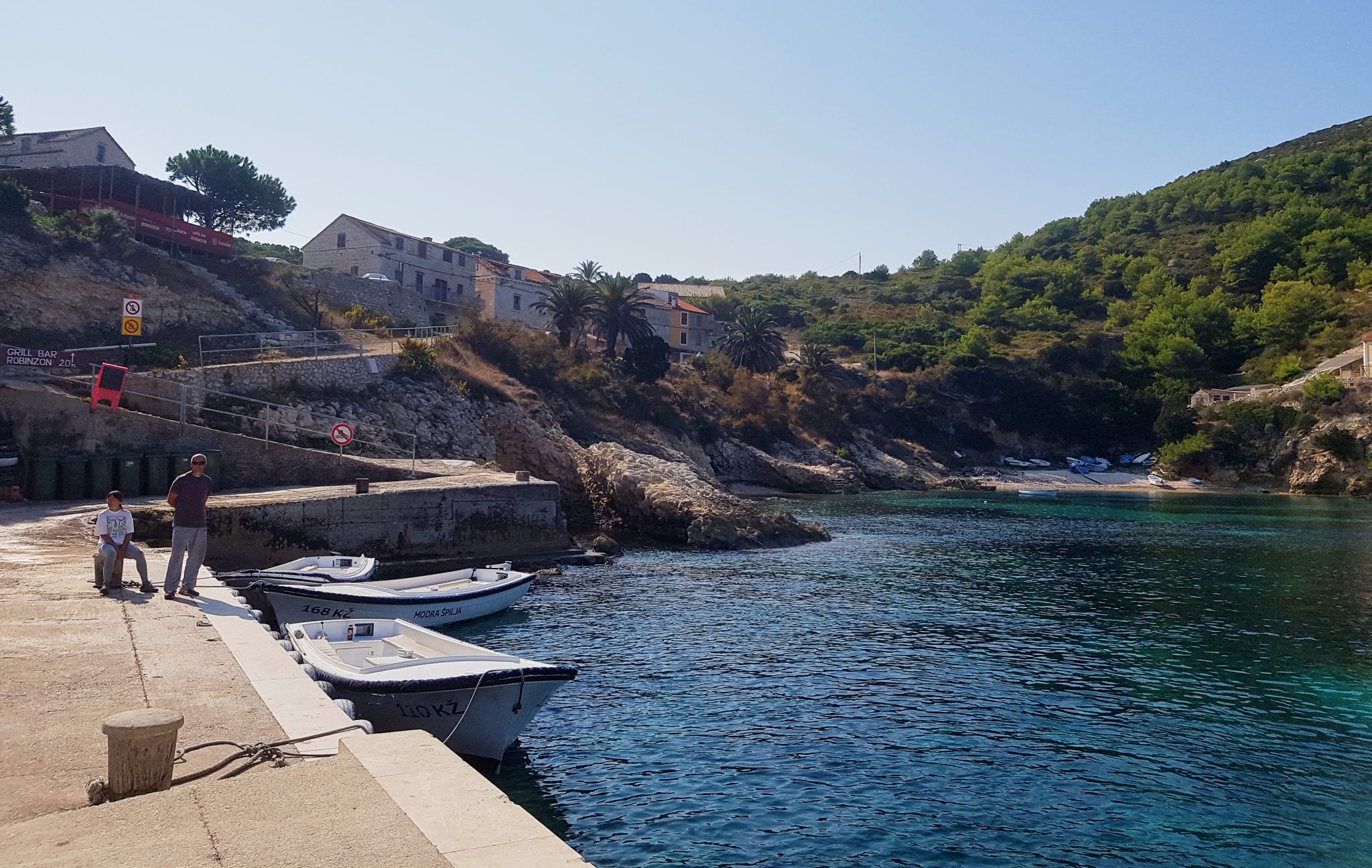After a 20 minute ride from Hvar, our first stop was the lagoon of Budikovac Island. This is a beautiful blue bay with a few boats already anchored. Our captain said that while the sea water is cool, this lagoon’s water is a bit warmer and is great for swimming. Gimpy and two other shipmates jumped in.