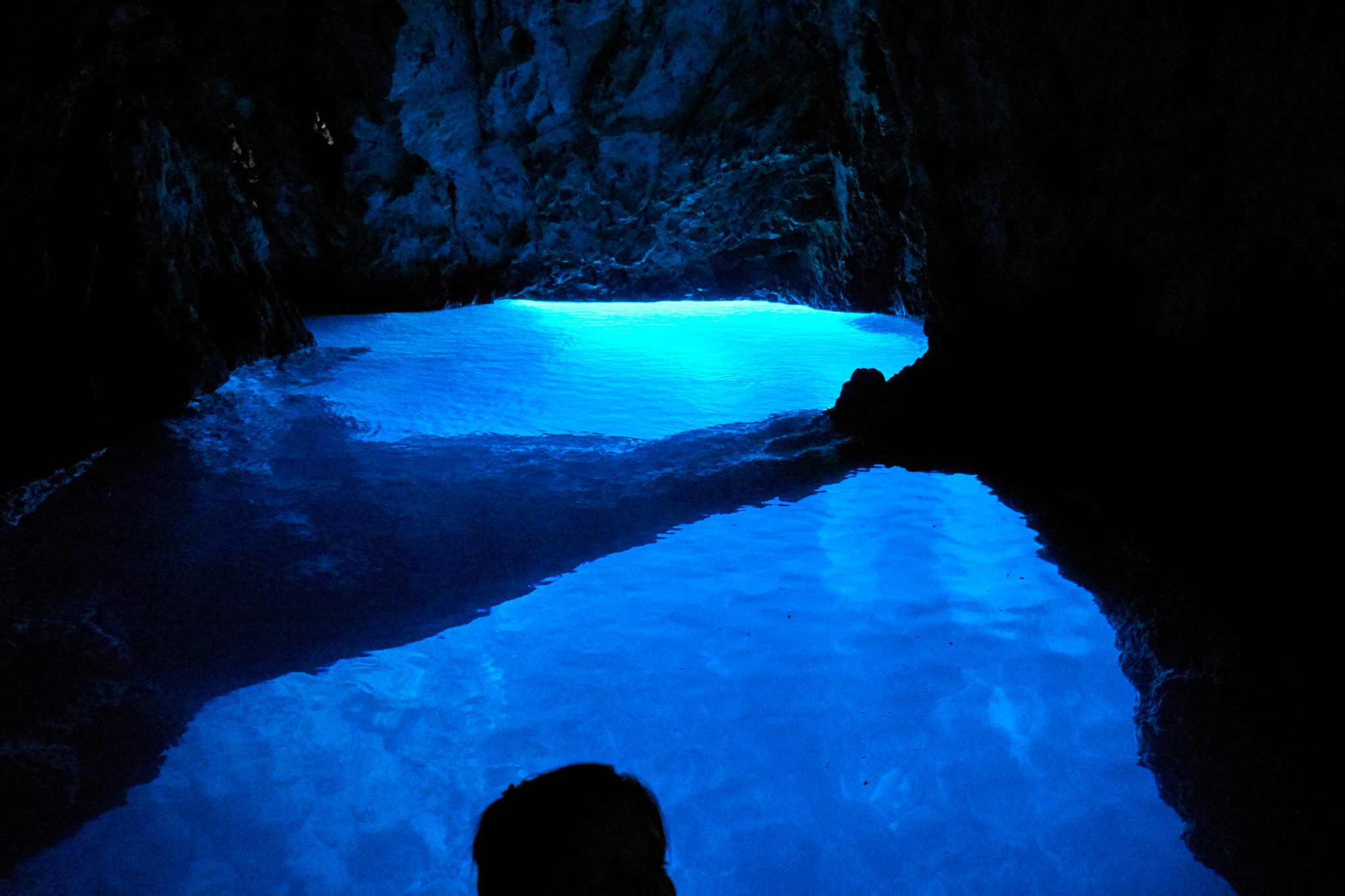 From the Green Cave, it was a half hour ride to the Island of Biševo where the Blue Cave is. We docked our boat and made landfall. Here we had to buy tickets to get into the blue cave. Once we got our tickets, there were a few boat operators waiting to take us in.