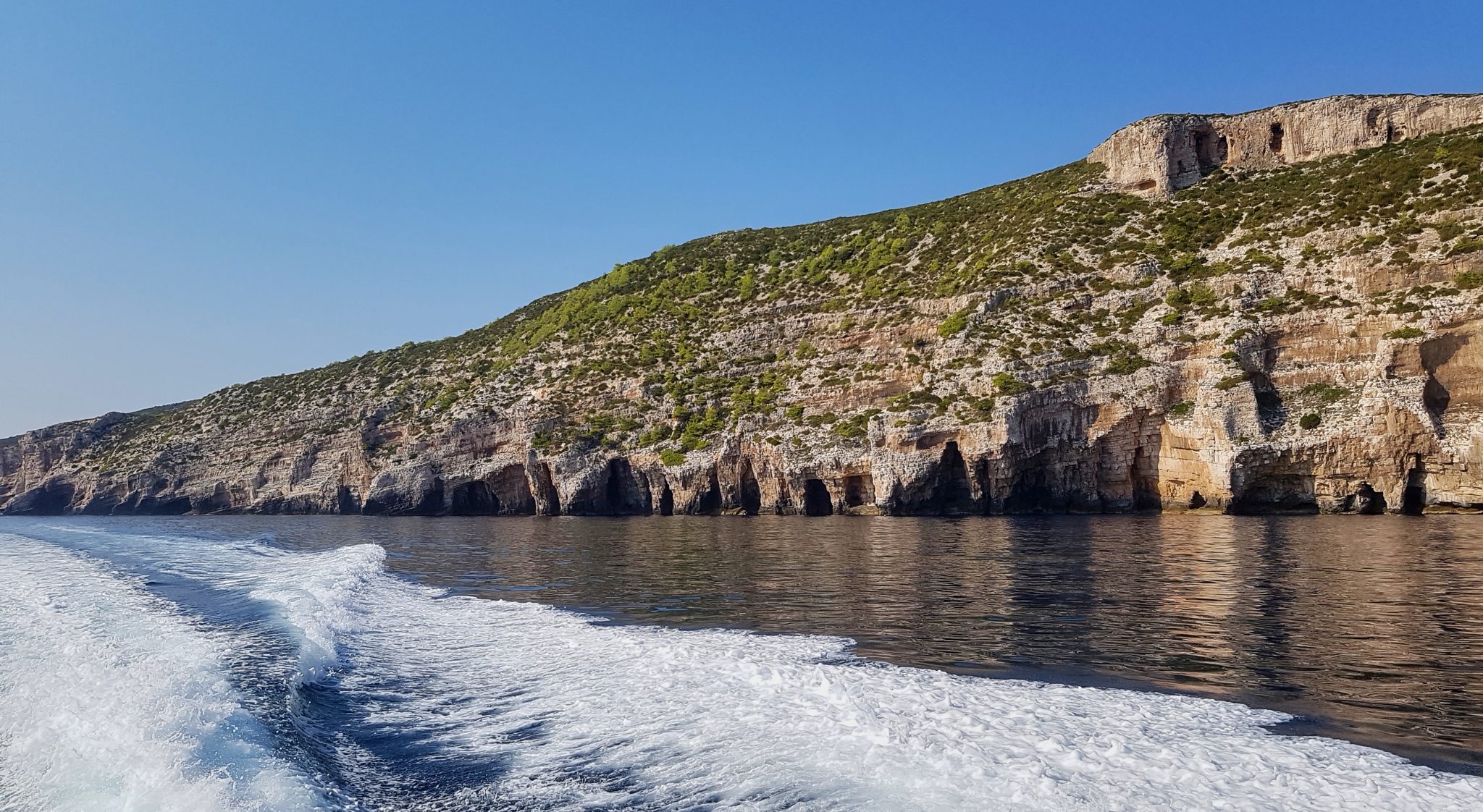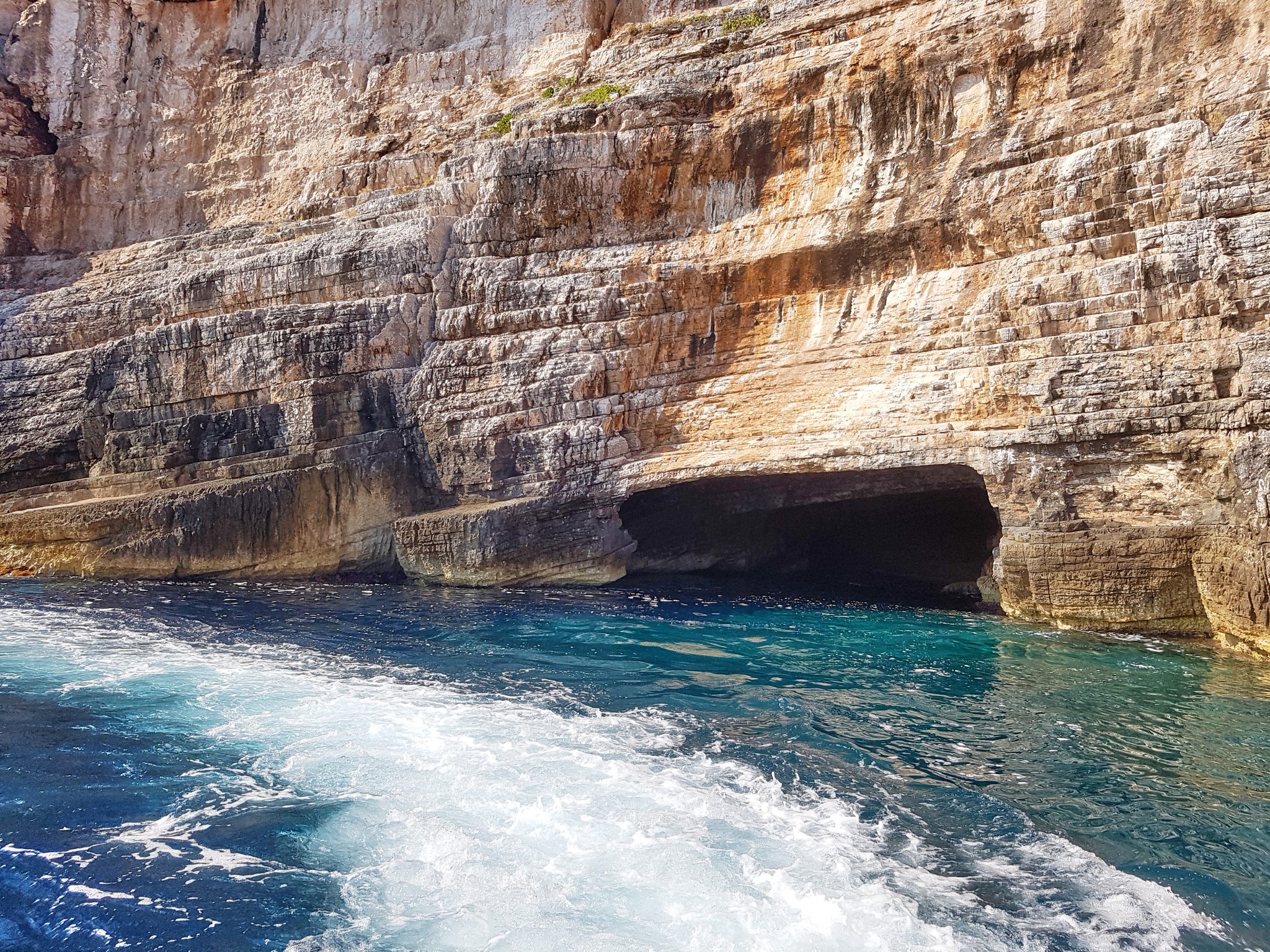 Once everyone was back on our main boat, we headed to Stinva beach. Along the way, we pass this beautiful rock face with all these little caves being formed along it. One can only hope more “Blue Caves” are formed.