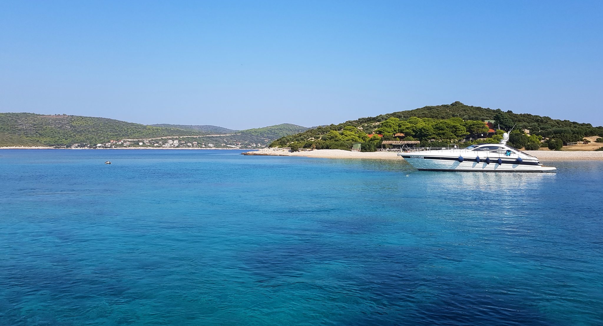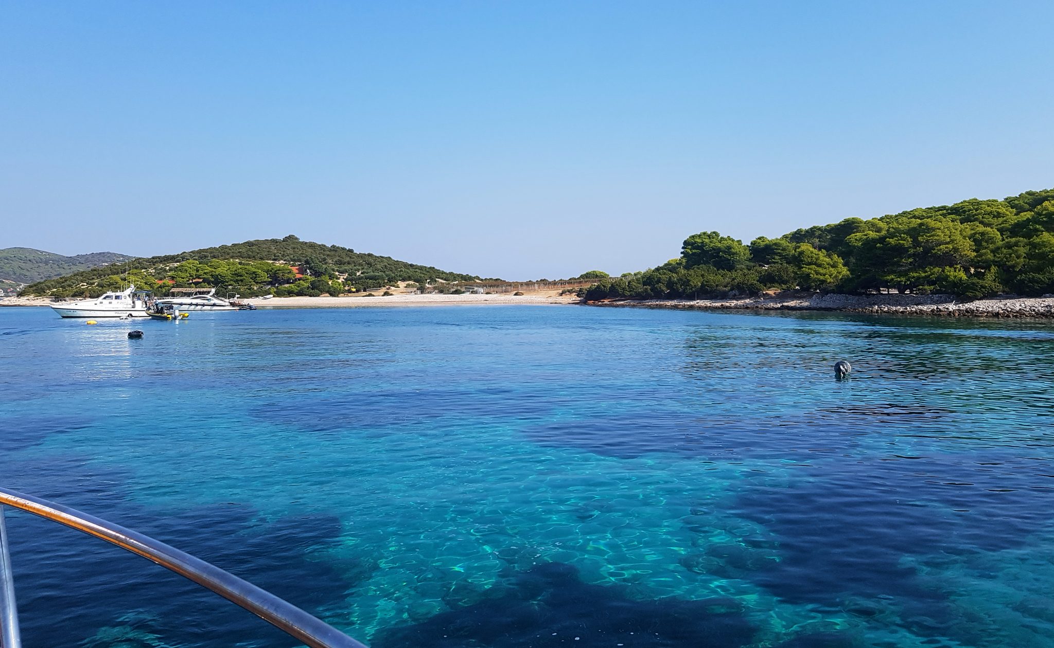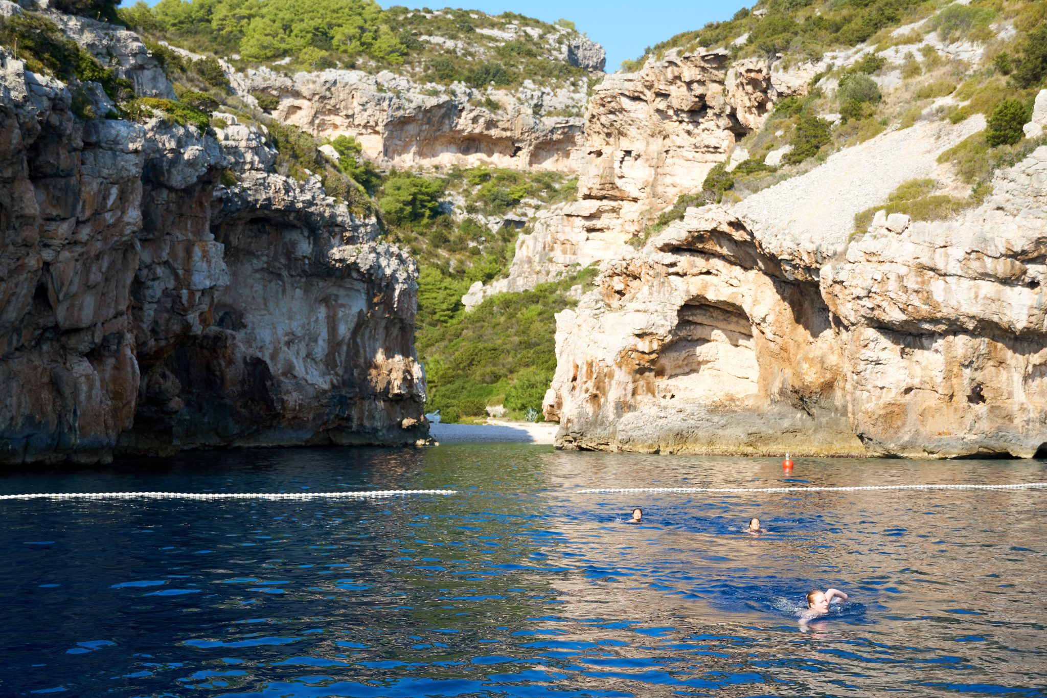 We arrived at Stinva beach where our boat dropped anchor a ways away from the beach. We were told that because of its remoteness, the only way to get to the beach was to swim from the boat. (I later learned through research, that there is a walking path but is more of a goat trail). Our captain estimated that the swim would take about 10-15 minutes to get there. Apparently halfway there, there is a rope that you can hang onto to guide yourself the rest of the way.