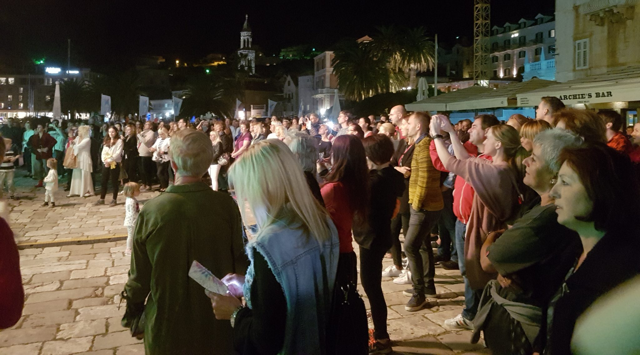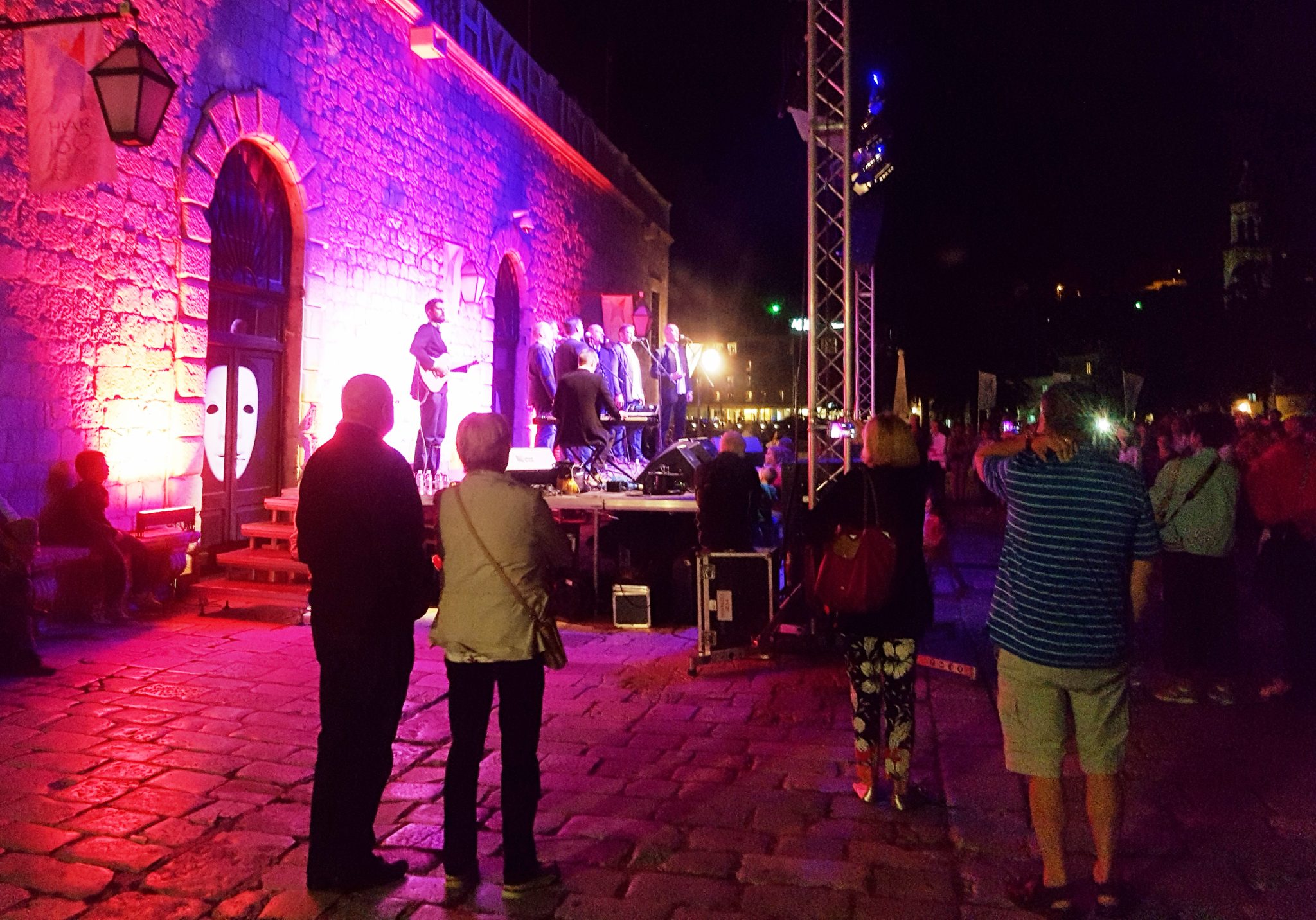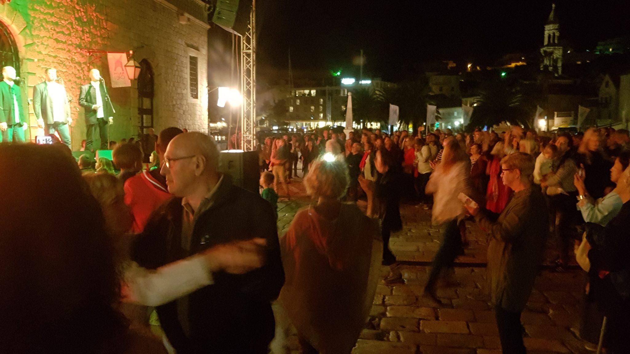 When we arrived, we saw a huge crowd gathered in front of the stage. There was a male vocal ensemble that was singing some Croatian music. They seemed to be pretty well known, but we didn’t know who they were. Judging by the crowd reaction and how familiar everyone was with their songs and lyrics, they must have gotten some airplay. As we watched, we witnessed people both young and old dancing together, and singing along with the group. Their set lasted a long time and every song was a little bit different.
