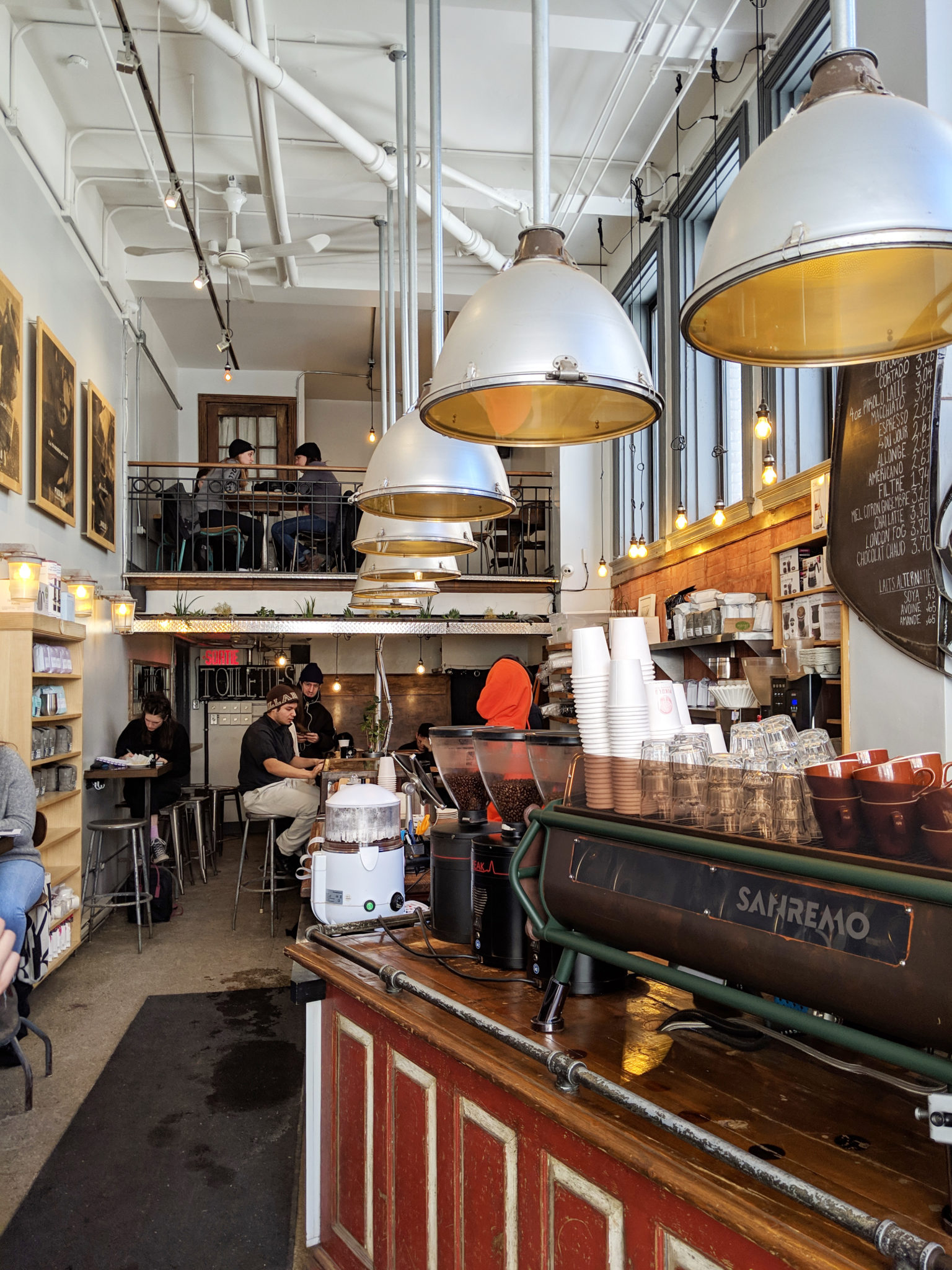 The next morning we checked out of our AirBnb and dropped off our bags at a hotel near the airport express bus stop. Our original plan was to simply explore the area and see where that lead us. Coincidentally, a friend from home sent me a Facebook message that highlighted some of the “best coffee shops” in Canada. Gimpy and I decided to visit one or two in Montreal!