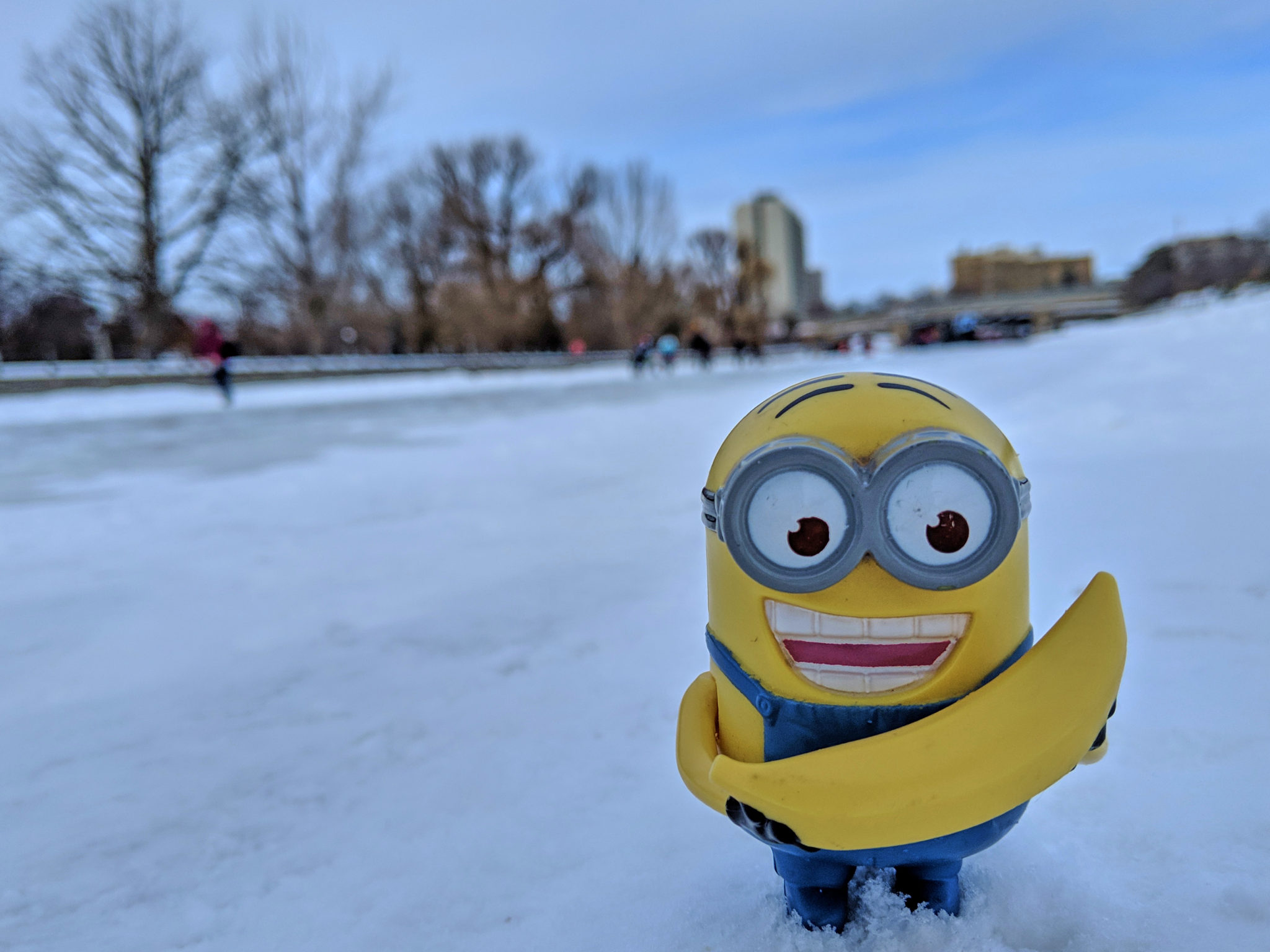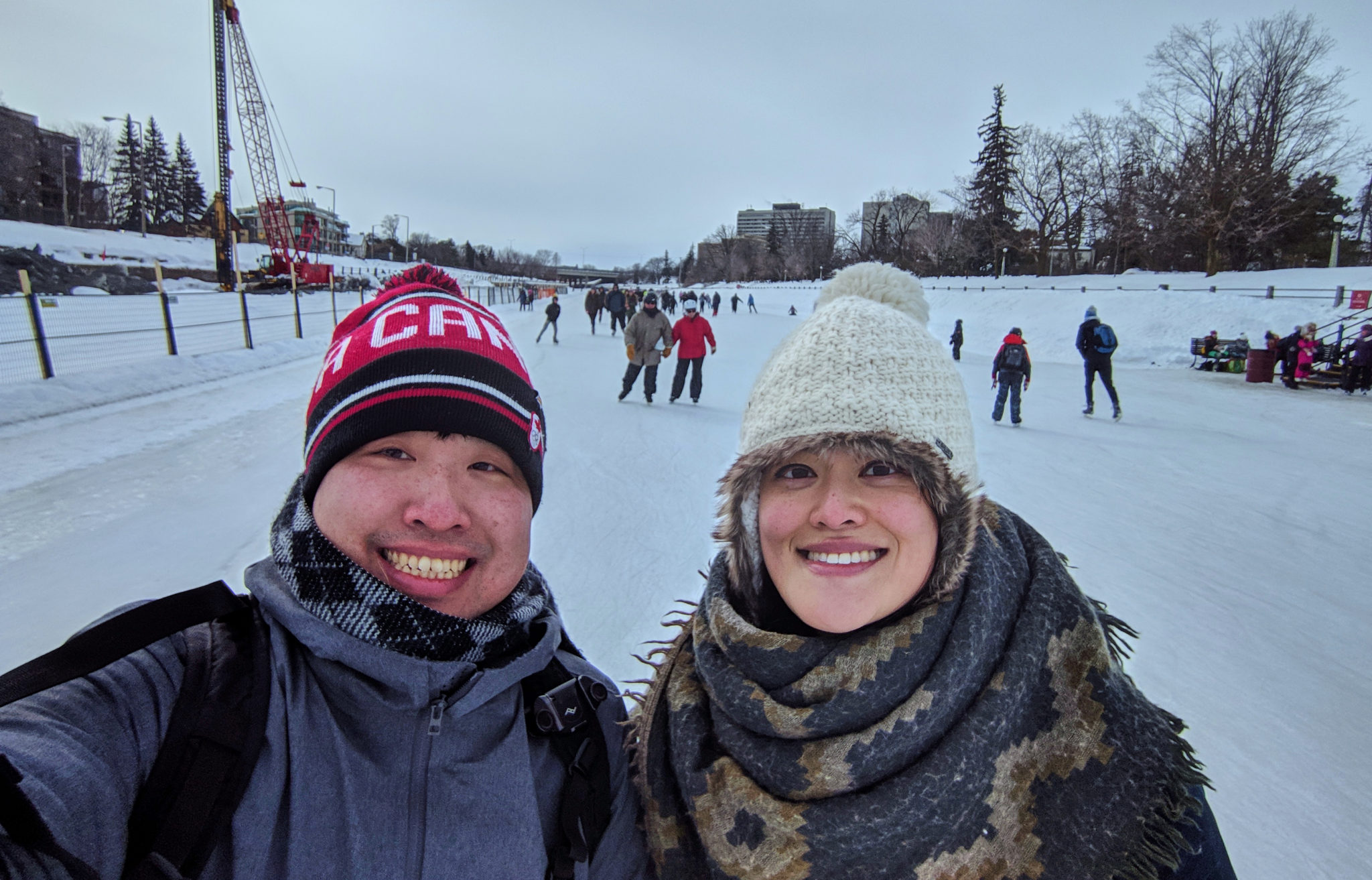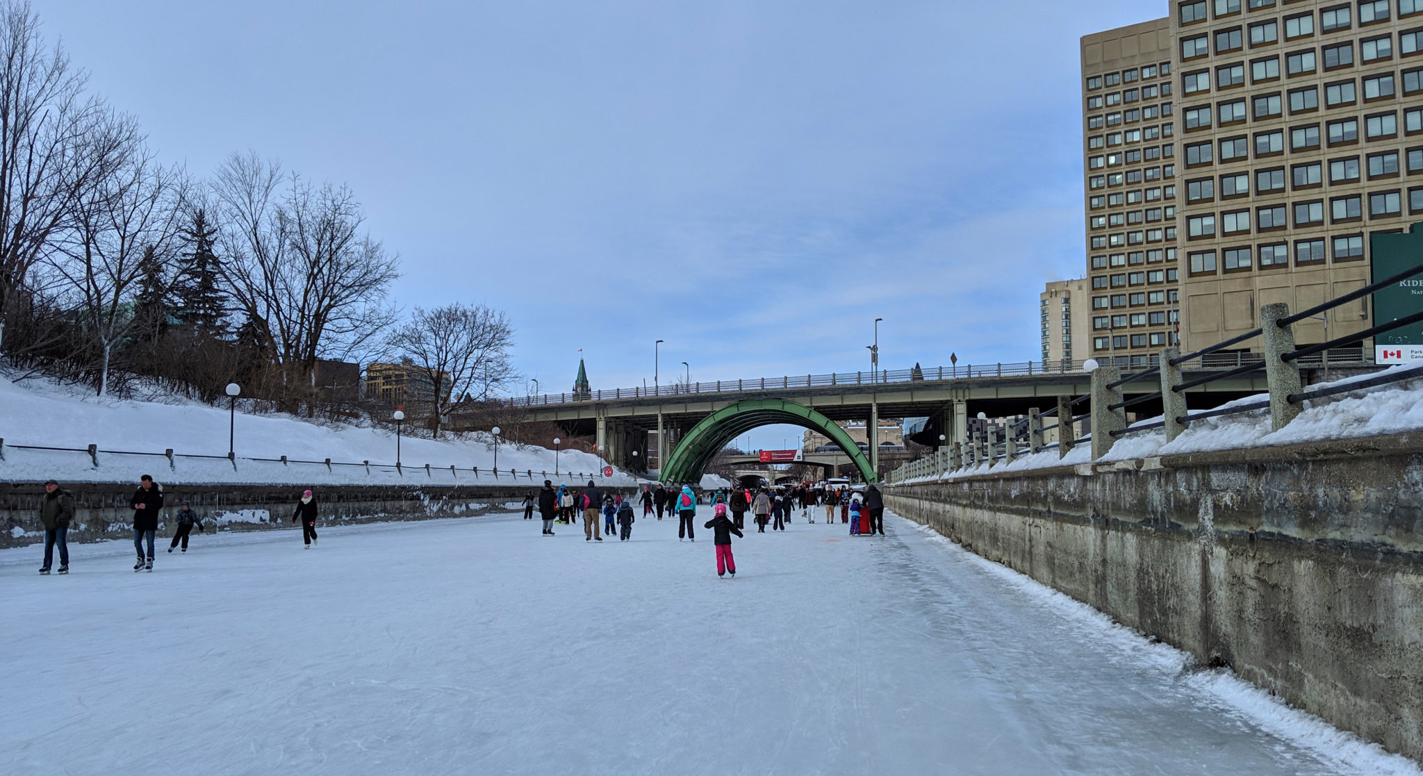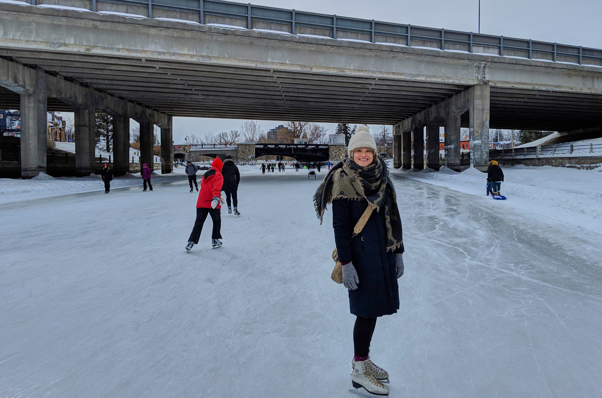 Another thing that feels incredibly “Canadian” is to be able to skate on a natural waterway and not just an indoor skating rink. And Ottawa’s Rideau Canal is a pretty iconic place to do it! Gimpy navigated us to a skate rental place, we got our skates and proceeded to “lace them up!”