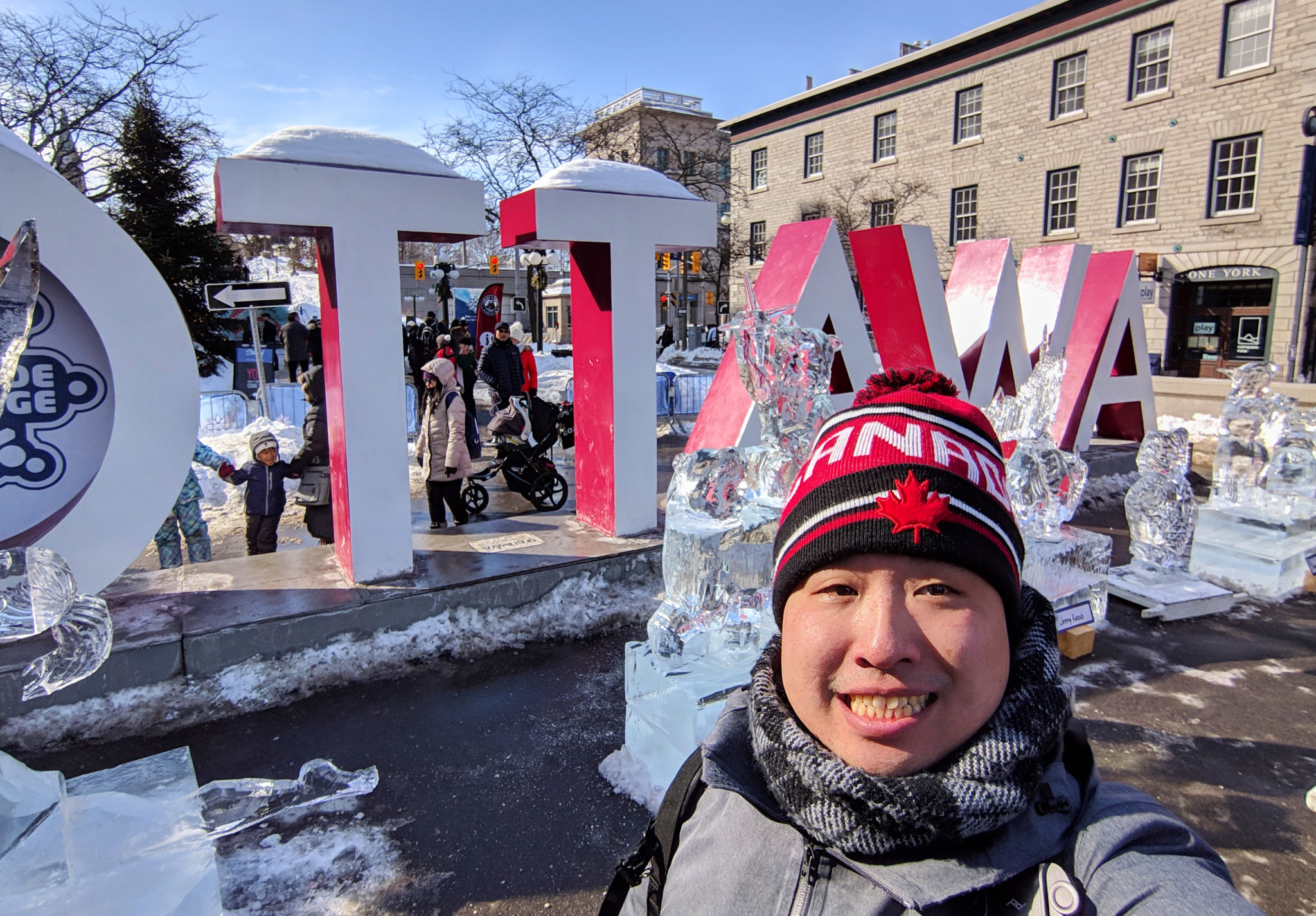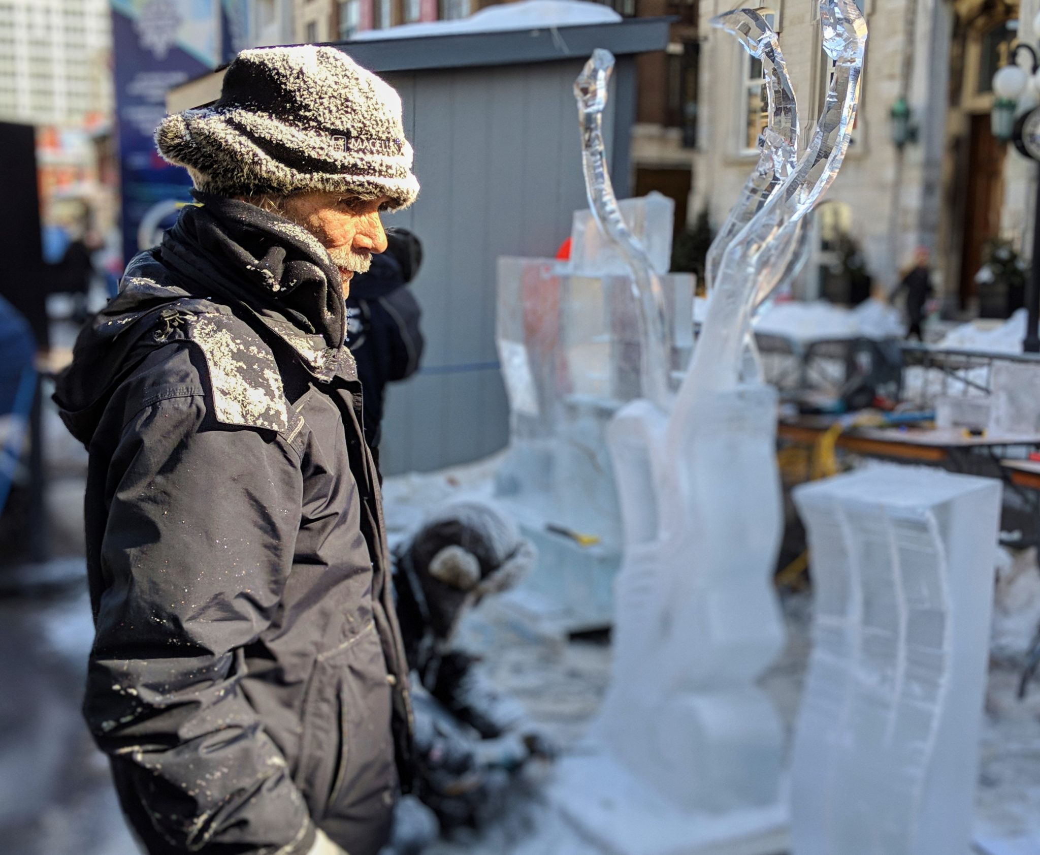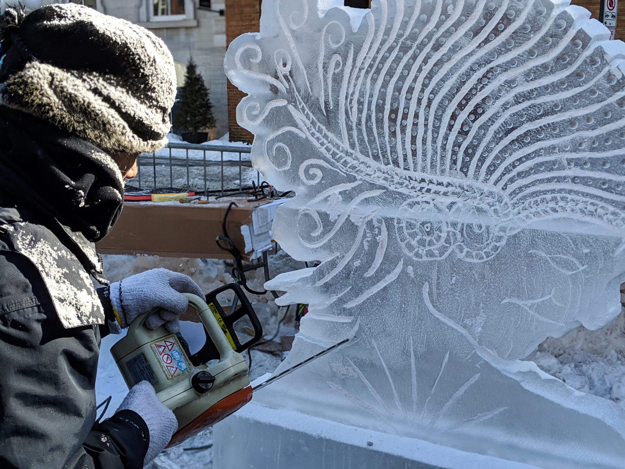 Behind Byward Market is a cool festival setup put on by Winterlude. Winterlude is a Canadian winter celebration held in Ottawa every February and we were lucky to be here as it was going on. There were some very cool things going on all around the area, but one thing that was incredibly fascinating was the ice sculpting that was being done or already done. We admired some of the intricacies of the sculptures and spent a good amount of time watching the sculptors do their thing.