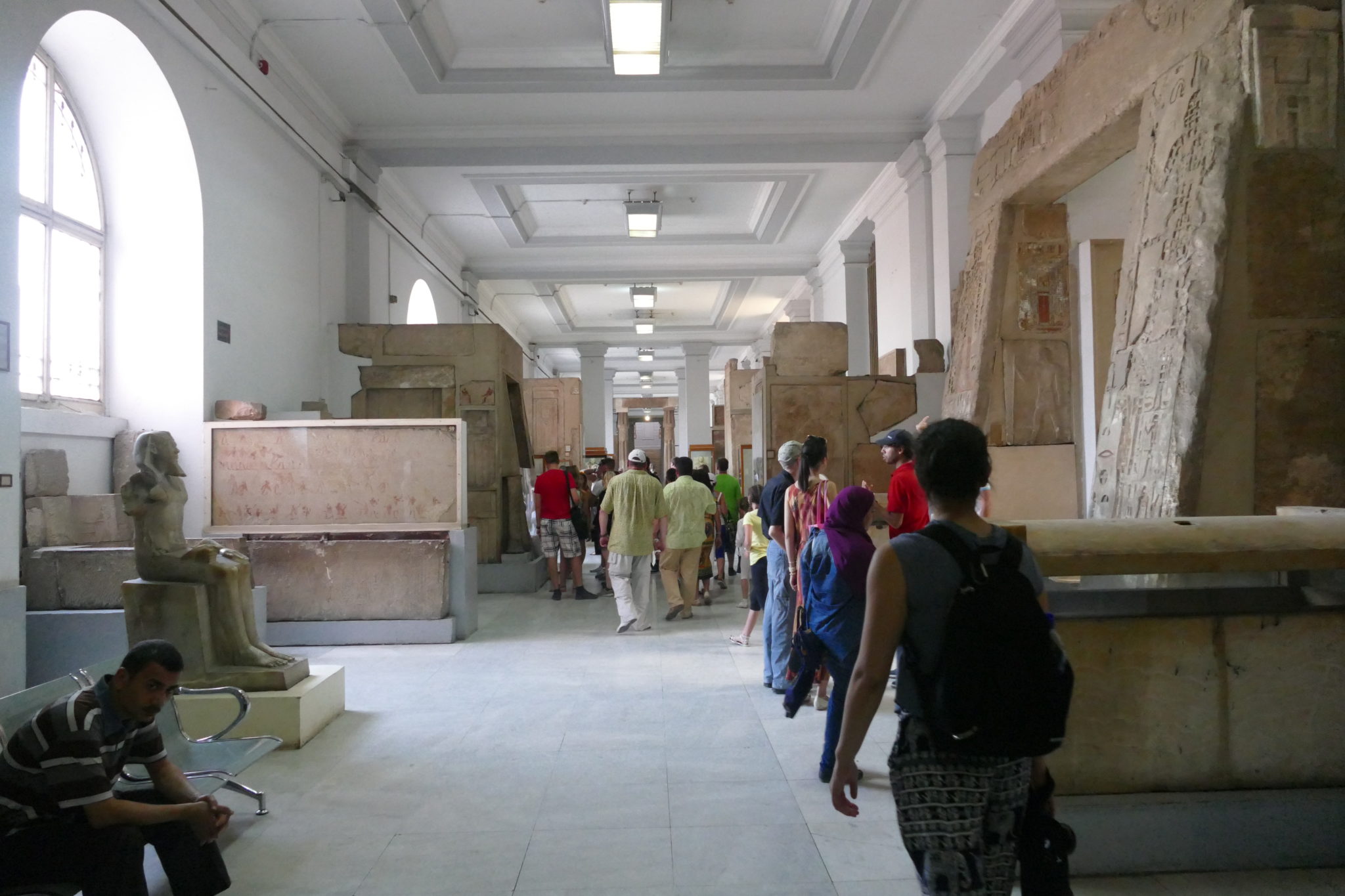 We woke up and met our guide at 8:30 in our lobby. We were keen to explore Cairo today. We got into a small van and we lucked out that the tour would just be the three of us, our guide Samara and our driver Ahmed. Our first stop was the Egyptian museum that holds a majority of the artifacts found in all the Egyptian ruins and pyramids. From the outside the building doesn’t seem all that big, but when you get inside you can see that it is packed full of artifacts from jewelry to large tombs to huge statues. Samara walked us through a majority of the museum explaining the history of Egypt and pointing out various artifacts that had significant meaning. Initially I knew very little about ancient Egypt (mainly what you would see in movies or television, which isn’t very accurate at all) but it was great to have someone who has spent time studying this, break down the different periods of ancient Egypt, some of the rises and falls of great Pharaohs and some of the history and discoveries made by archaeologists. We spent a good 3 hours at the museum exploring the different exhibits they had. Its hard to say weather or not it was a good enough time. Typically I love historical museums, however the size of it and the difficulty of organizing the amount of displays made browsing it all very difficult. There were small signs that may have explained what you were seeing, but not all items had this. You could clearly see that they were hurting for more space to properly display all the finds which impacted how easy it was for a visitor to intuitively take in all the information. Thankfully Samara mentioned that the Egyptian government is currently building a much larger and modern museum to properly display all the treasures of ancient Egypt. We drove by it later and I think its safe to say that when it is completed (hopefully by 2017) the Egyptian museum will be a top destination that would rival some of the larger more well known ones internationally (It looked huge!).