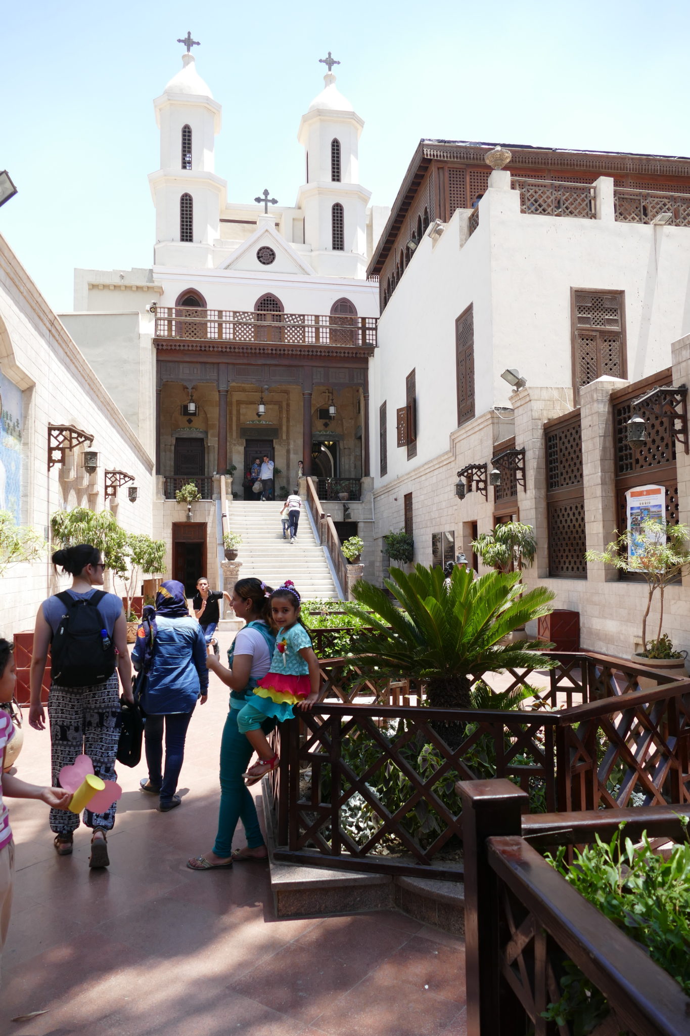 Moving on from the Citadel, we drove to Coptic Cairo, One of the interesting things about Cairo is that its been ruled by a number of different groups throughout its existence. With different rules, comes different religions. While a majority of Egyptians now are Muslim, there is a large Christian/Catholic population as well (from the time of roman rule). We visited the hanging church which was a church built on top of an old fort (thus the name “hanging”, like a tree house) in the church itself is a place for worship similar to a very small roman cathedral. There were also places you could look down and see the foundations of the fort and how the church seems to be built on top of it. Samara made mention that you can see when the Nile floods based on the water levels against the walls of the old fort. We also got to visit an old Jewish Synagogue that was in the same area. Samara explained that there was a large Jewish presence in Egypt, but when Egypt and Israel went to war that population declined drastically. So sadly there are only two synagogues in Egypt and they are both unused.