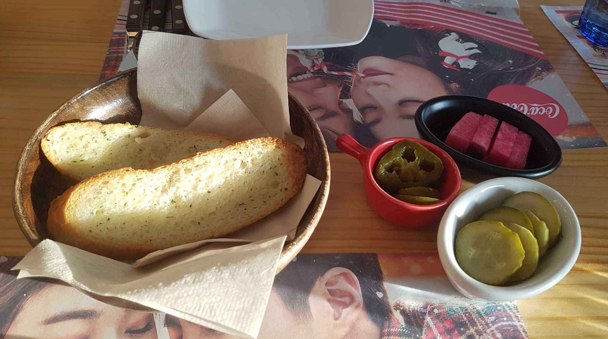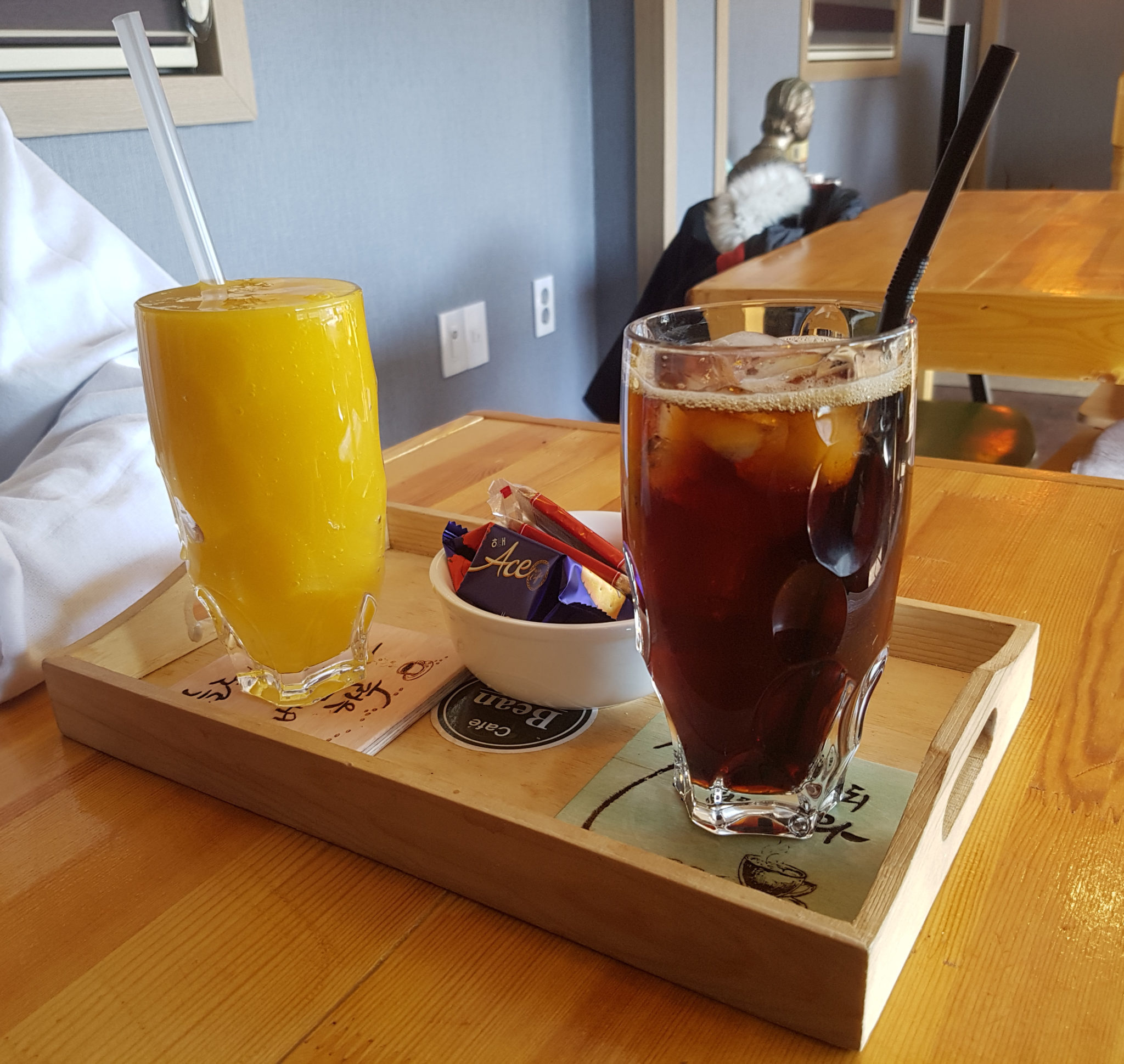 We were going to grab some Korean BBQ as an afternoon lunch/dinner but sadly due to the Lunar New Year the restaurant was closed. We wandered around the area for a little while before stumbling upon this cafe/restaurante called The Hassome. The first thing we noticed was how much reference to Coke there was inside the restaurant. We’re not sure if they were a sponsored restaurant, but certainly wasn’t something we expected.