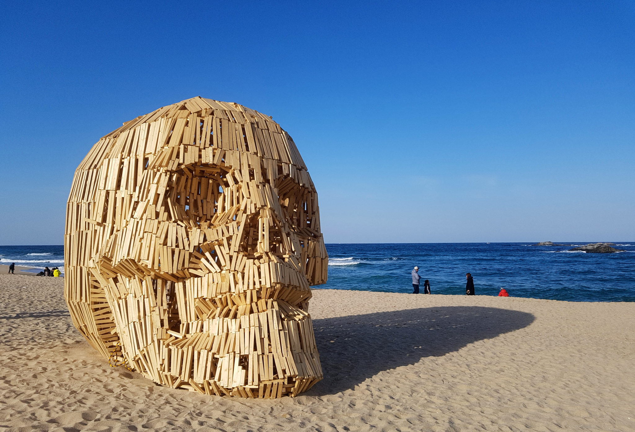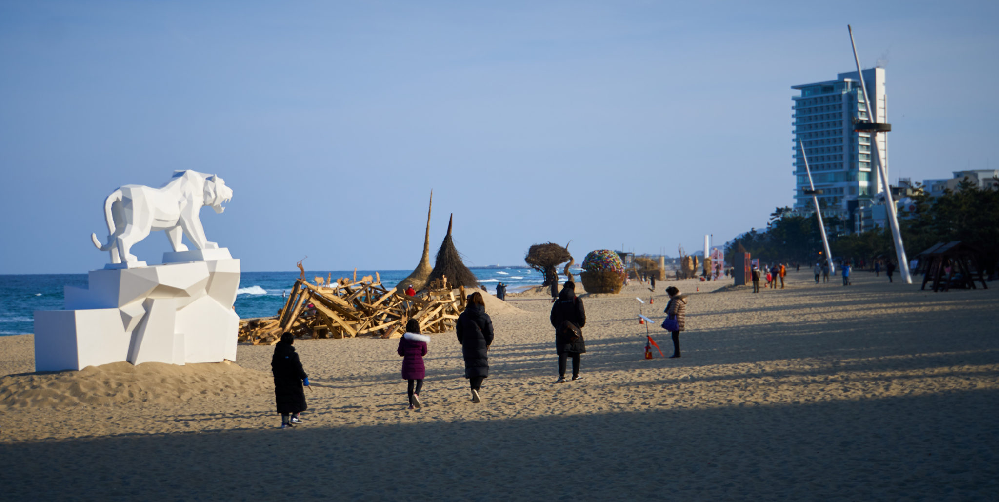 After spending an hour or two in this area we taxied down the coast a little until we arrived at Gyeongpo beach. There was also an art exhibit called Fire Art Festa happening on the beach. It looks like each night they burn some of the art. Sadly we wouldn’t be able to hang out at night, but we did enjoy checking out the exhibits and the beach in general.
