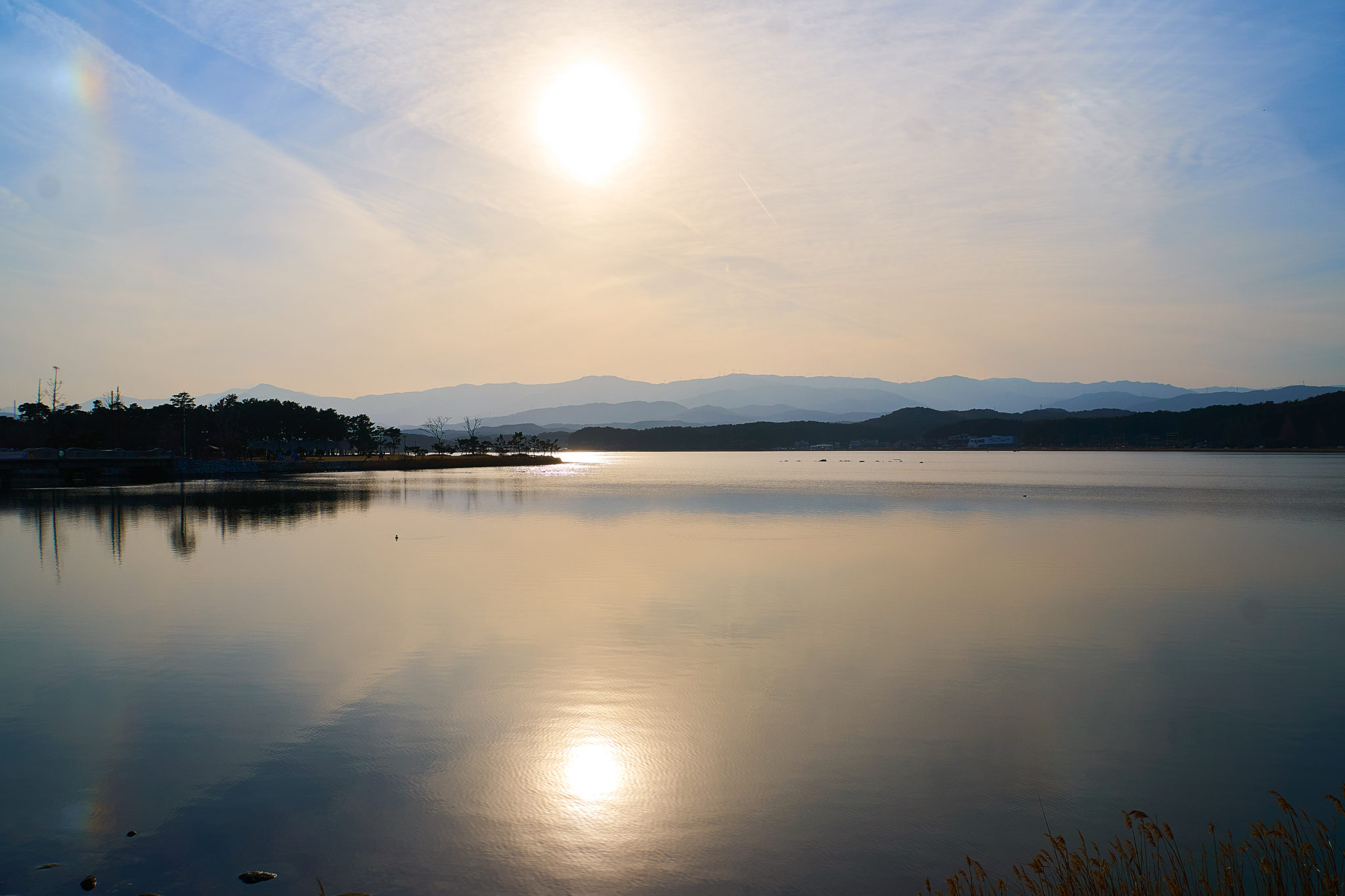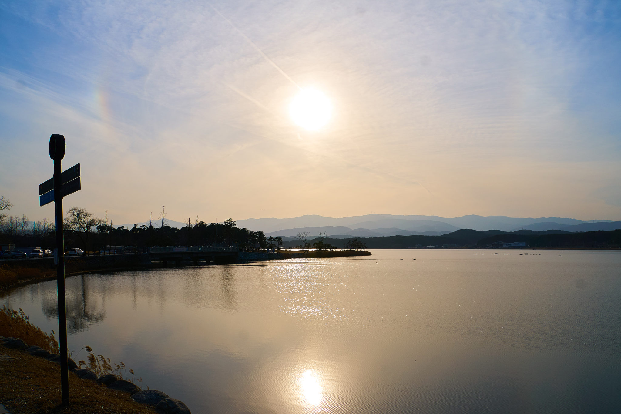 There is a lake on the other side of the beach and at the time of day we got there, it was an amazingly beautiful time to see the lake and the “not so setting” sun.