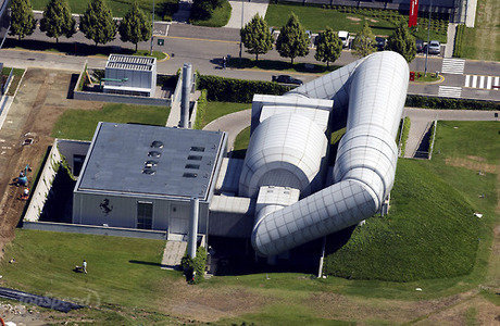 On the half hour trip to the museum, we passed some other notable landmarks. Of note was the Maserati headquarters, the Enzo Ferrari museum, and some interestingly decorated traffic circles. Even some of the buildings were painted in Ferrari Red.