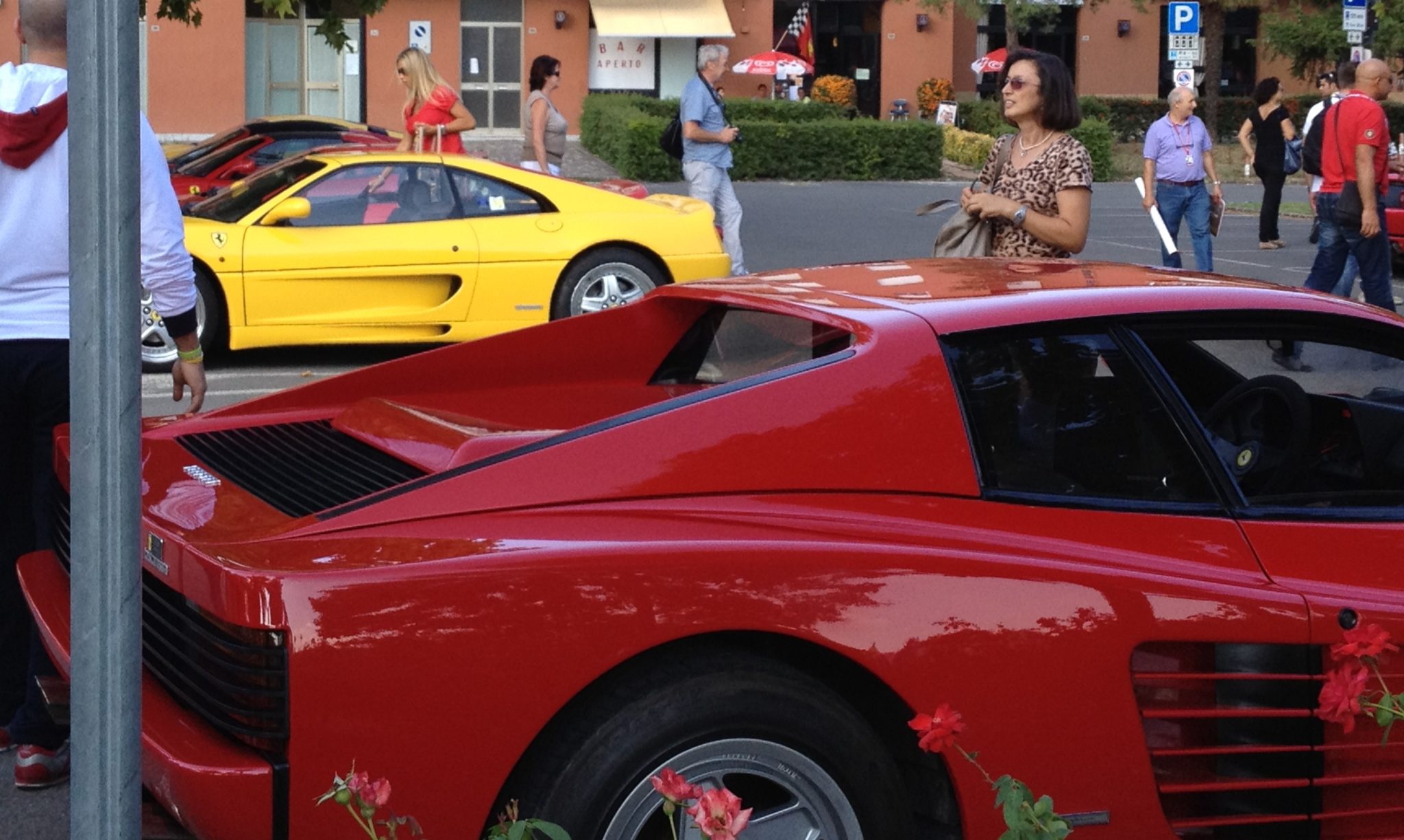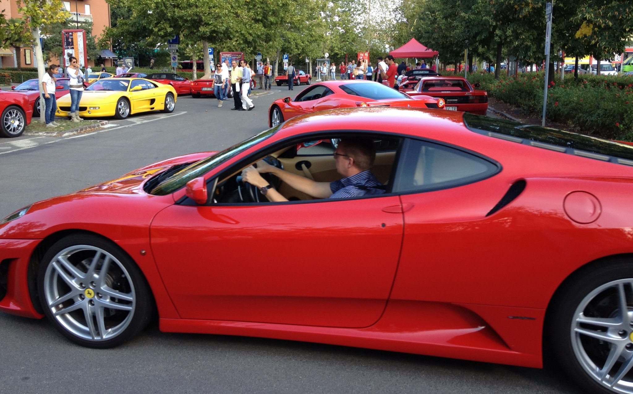 Our day was coming to an end. As we were about to board the shuttle back to Modena, something amazing happened! There was an event going on at Ferrari that evening. Ferrari owners from all over were invited and started showing up. It looked like there would be some sort of performance as well. My dream of seeing a city full of Ferraris finally came true!