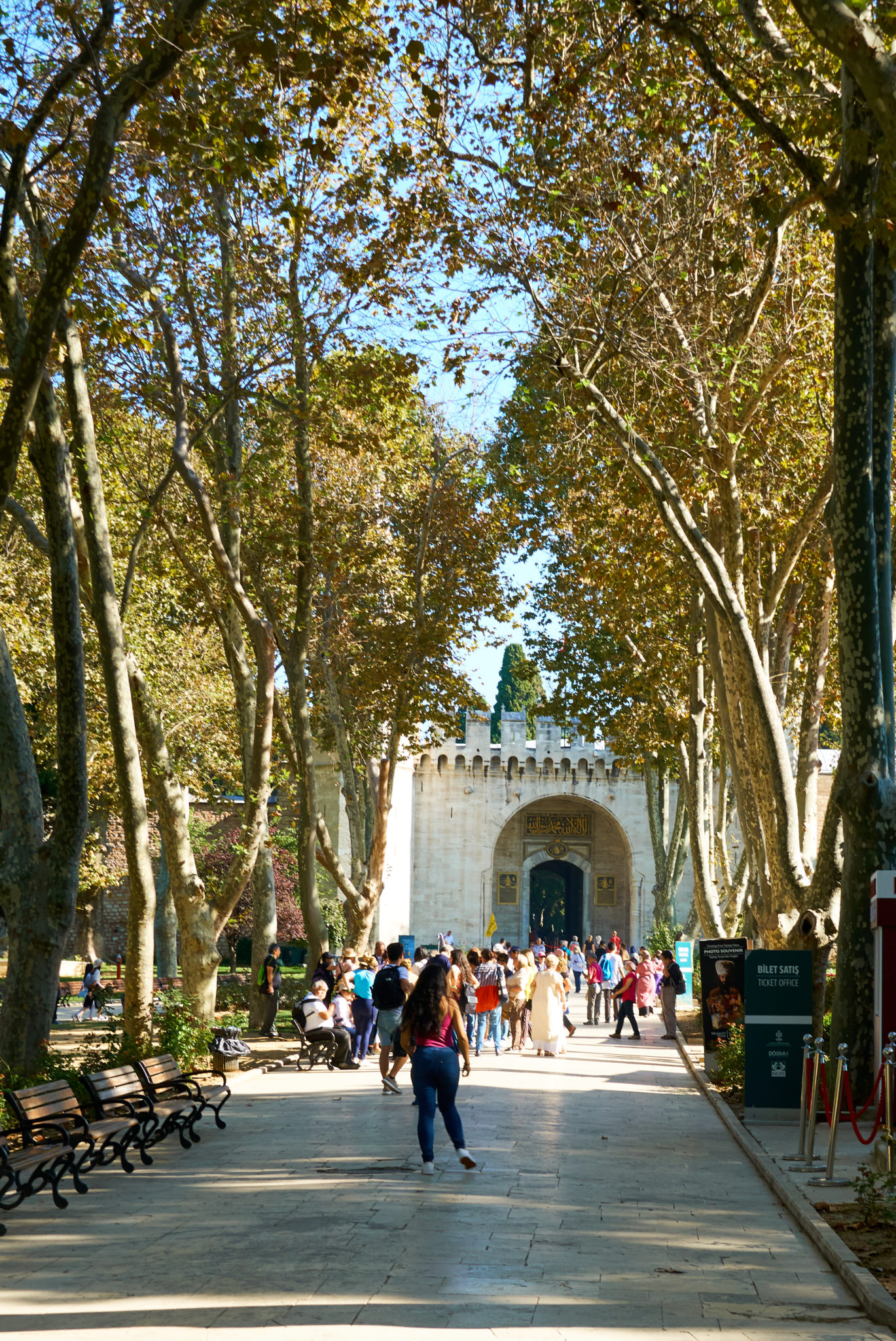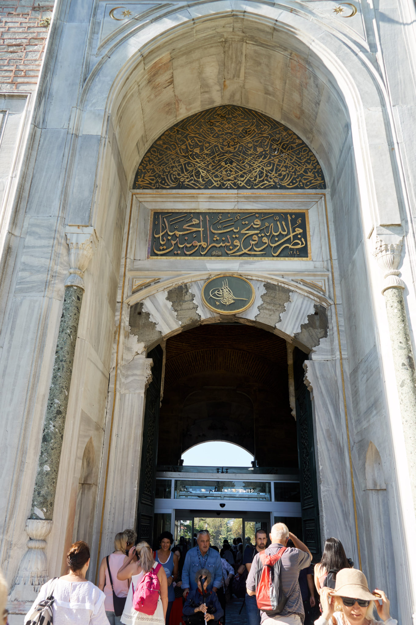 After breakfast our entire group congregated in the lobby where we loaded our small bus with our big luggage. We then set off for a small walking tour of some of the major sights in Istanbul. Our first stop was at the Topkapi Palace grounds, we walked through the gates and passed by the Topkapi Palace Museum and past Hagia Irene.