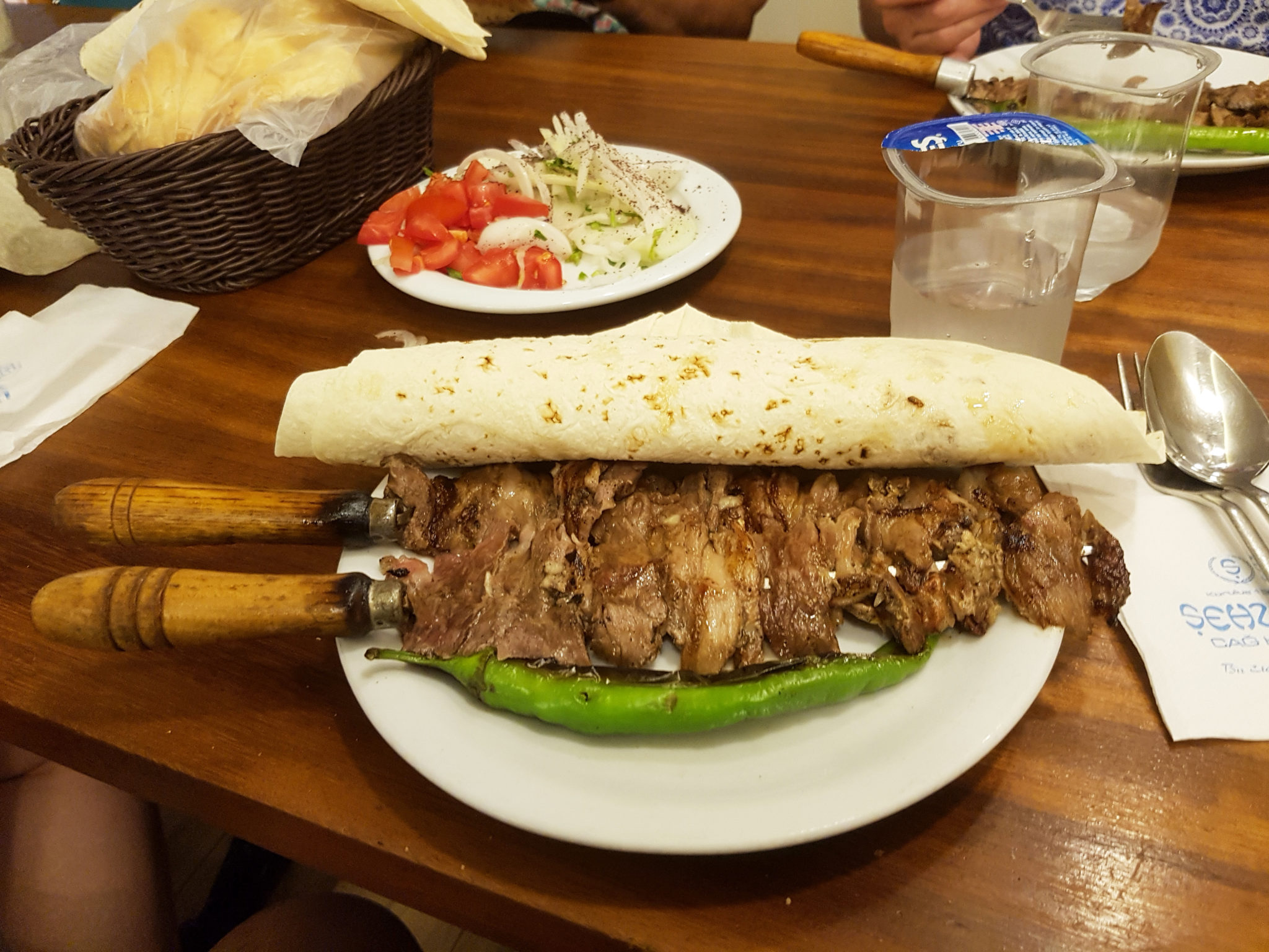 It was lunch time and our guide “Ibo” took us to a small street full of restaurants. He pointed out some good ones, including one frequented by Russel Crowe. And one called Sehzade Cag Kebap that had a special type of kebab that you can only find in the East. Naturally, Gimpy and I gravitated towards the rarer food and gave it a shot. It was delicious! It was simple and certainly hit the spot after a morning of walking.