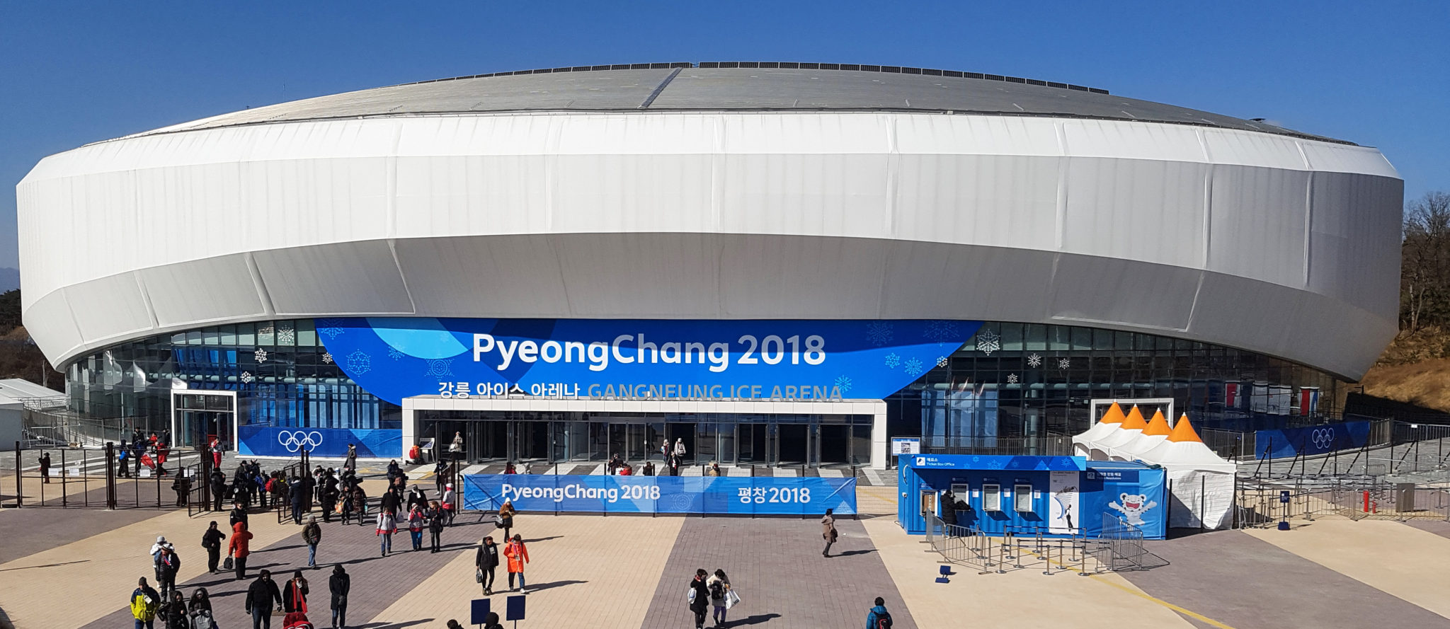 We arrived in Gangneung at around 9 AM and made our way via shuttle bus to the Gangneung Olympic plaza. We had tickets to the Figure Skating Team Event. When we originally chose this event, we wanted something that was creative and something that would be live spectator friendly.
