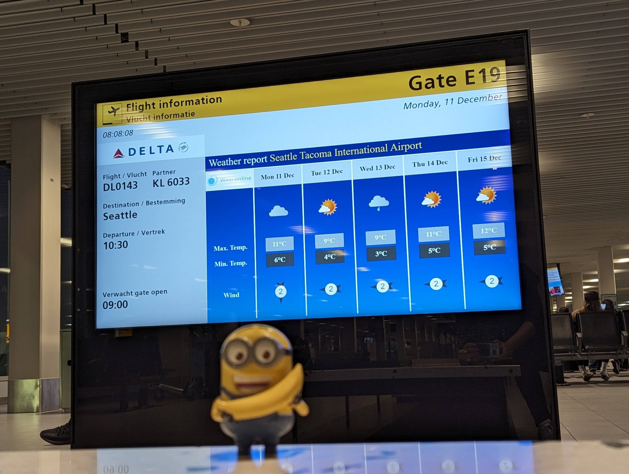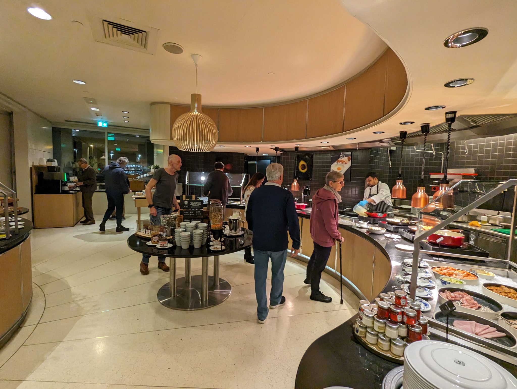 By the time we land its evening in Amsterdam. Unfortunately we land along with several other international flights and it takes me well over an hour to get through immigration and baggage claim. My flight home isn’t until tomorrow morning but thankfully, I don’t have far to go, since I have the Sheraton Amsterdam Airport Hotel booked for my overnight stay. So I make my way over, get checked in and settle into my room for the evening. In the morning, I head down to the hotel restaurant for breakfast. With some fuel in my belly and coffee in my veins I check out and head to the airport to check in for my cross ocean flight home.