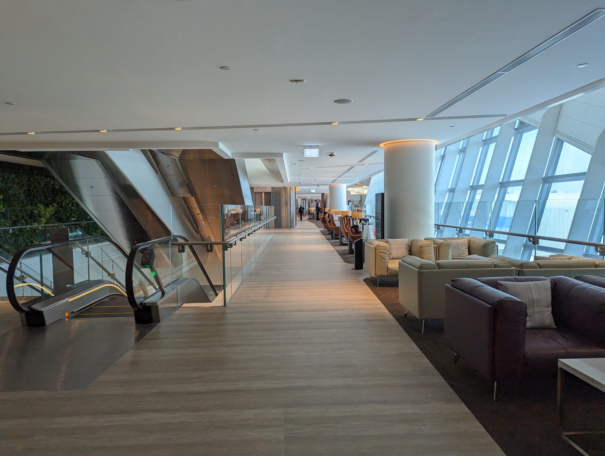 After walking around a little I make my way to Etihad Airway’s Business class lounge. As this is Etihad’s home airport, and brand new terminal I’m excited to see what their flagship lounge looks like! It certainly doesn’t disappoint! It is huge, with three floors of what is seemingly an entire side of the airport. There are food and bar options on every floor with plenty of seating and great views of the apron with many opportunities to spot planes. I didn’t partake in too much food since I just had breakfast, but the food on offer looks top notch. I did settle for some snacks and refreshments as I settle in to watch all the different planes pass by.