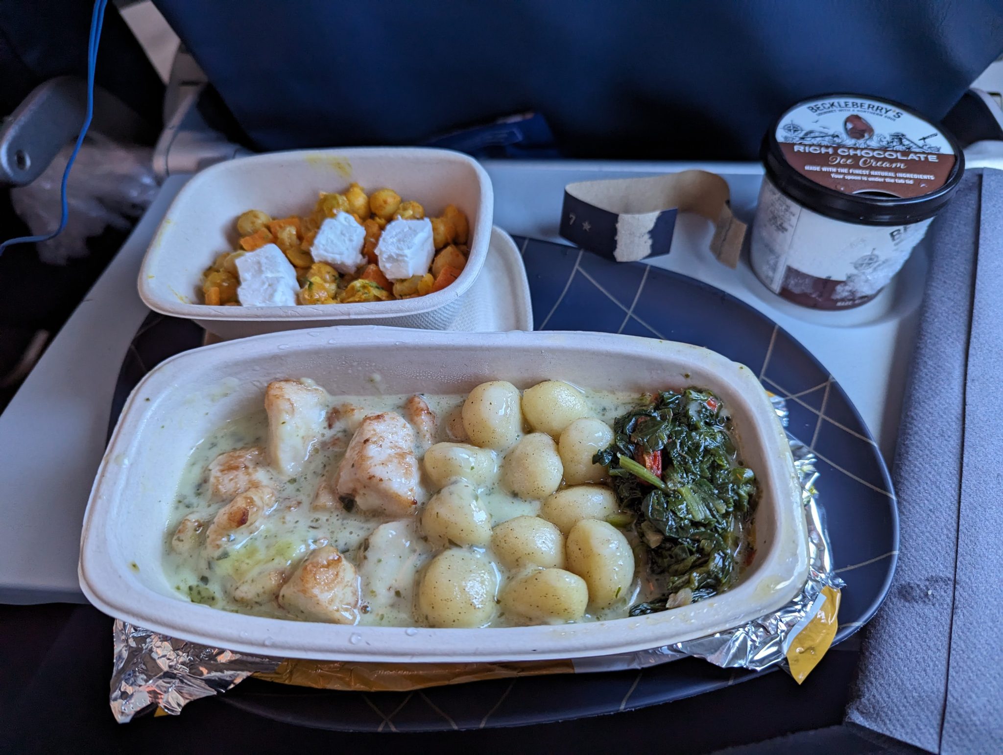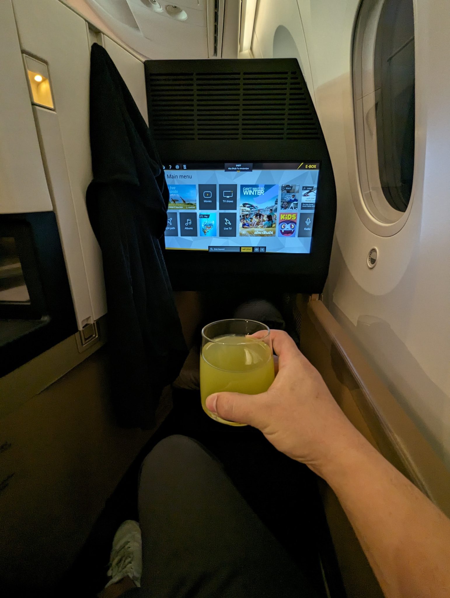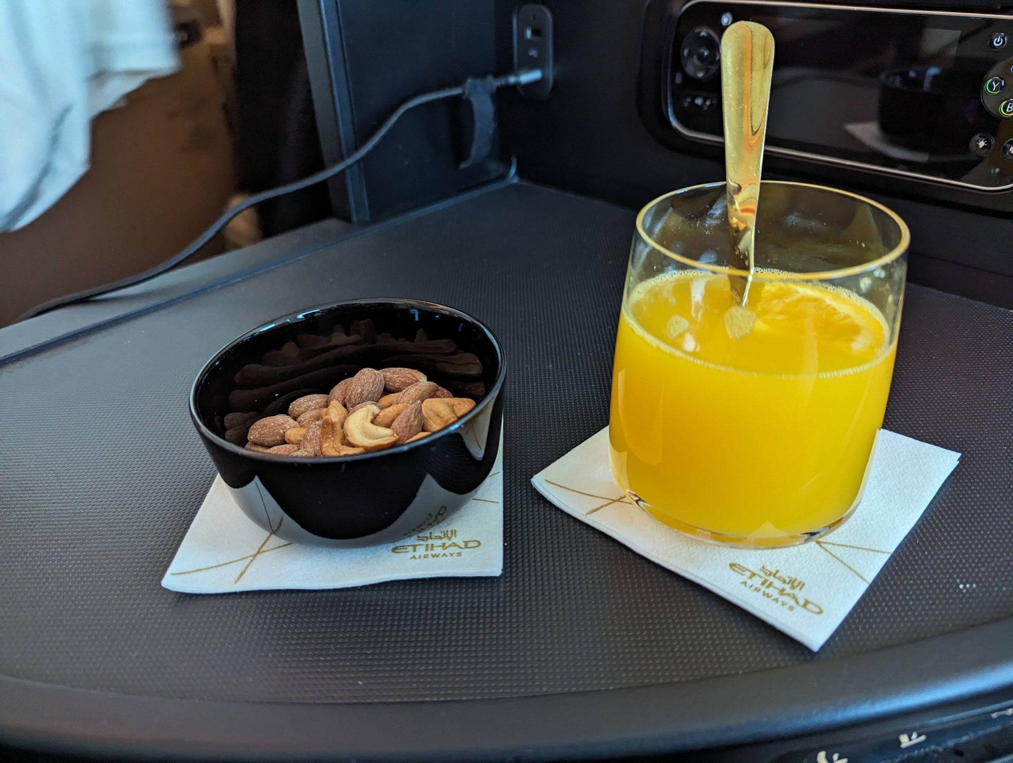 A cool thing about this flight is the “anytime” nature of the food service. Because of the bigger breakfast and snacks at the hotel and airport, I opt for a lighter lunch. This comes in the form of a steak sandwich which Etihad nails! And closer to the latter half of the flight, I have my main meal which is a Green pea and mint soup starter and slow braised beef short rib main. Both are delicious and reinforces that Etihad has some really great food service onboard their planes!