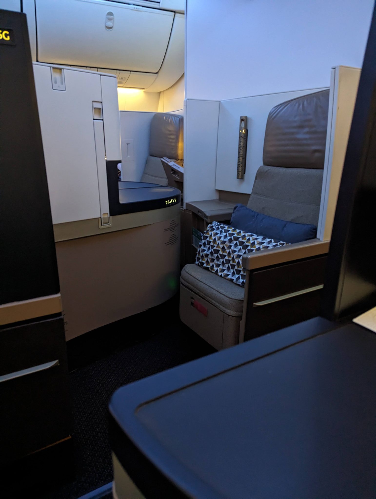 However, boarding time eventually hits and I need to make my way to the gate. I won’t be flying Etihad’s Residence back to Europe this time. But, I am in their business class which is just fine by me! In many respects, the Etihad business class product is pretty standard in terms of a cabin configuration. But I find that there are a lot of little touches that enhance the experience and make it a very comfortable ride. The only thing that is a little “odd” is that the seats stagger from forward facing to backwards facing. So there is a bit of “weirdness” on a full flight where you are “face to face” with the person on the other side of the aisle facing backwards. Nonetheless the ride up to Amsterdam is extremely comfortable and some of the views heading North are spectacular!