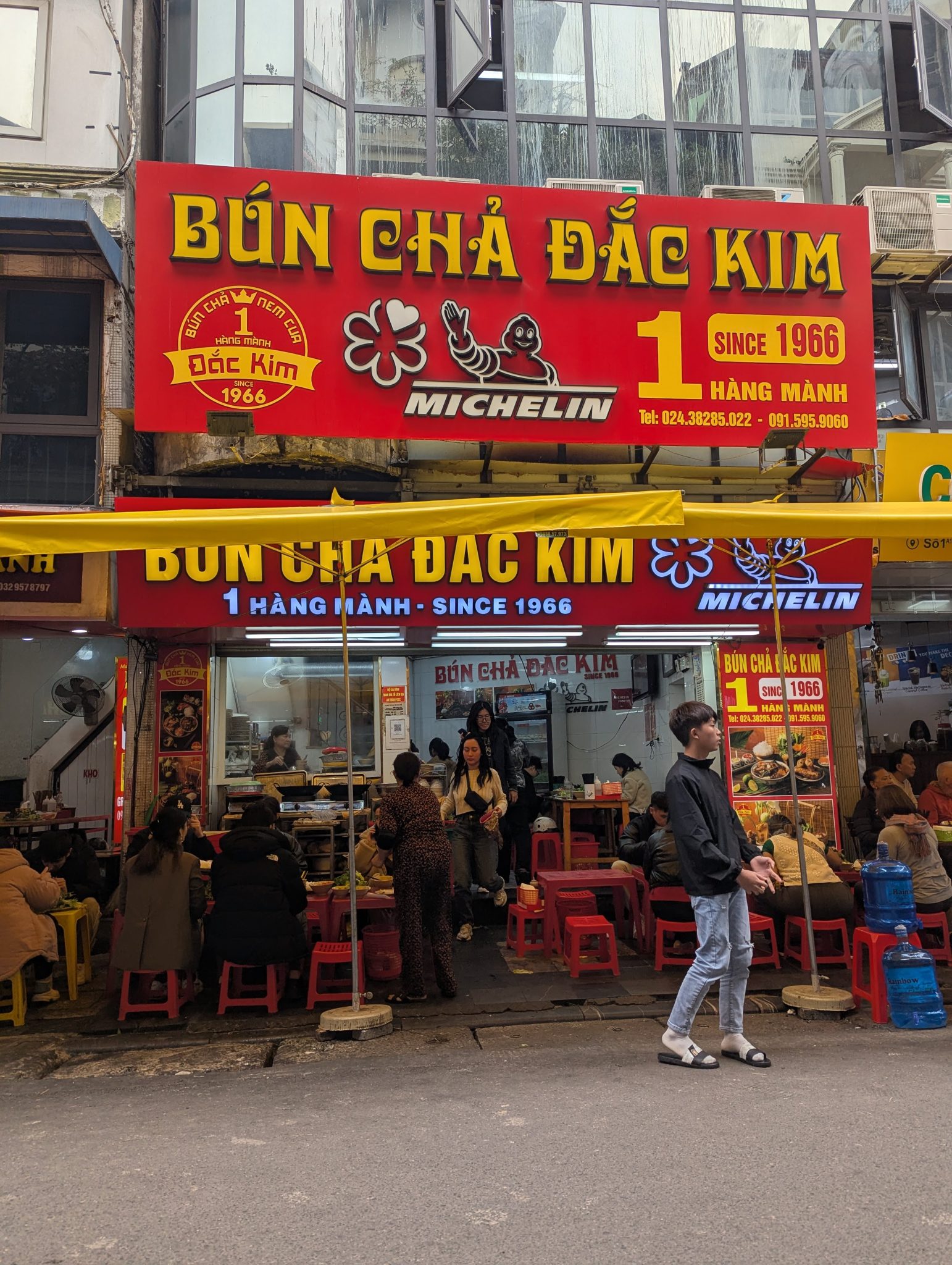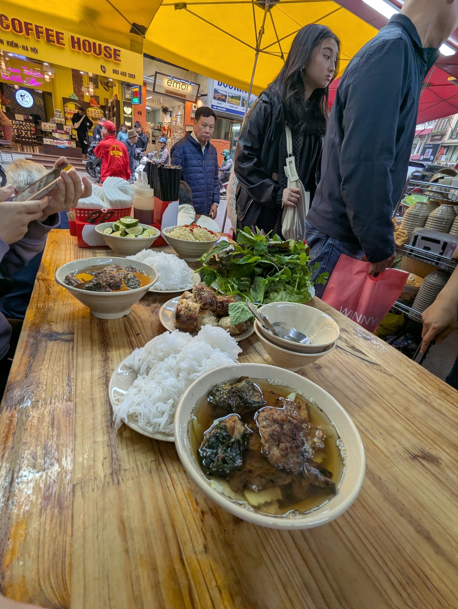 After coffee we decide to stroll around a little and take in our last sights and sounds of Hanoi. Before long our thoughts and bellies turn to food again. This time we we visit Bun Cha Dac Kim, which is another Michelin Guide Selected street food recommendation. Bun Cha is like a Vietnamese version of dipping noodles. The servers come around with a generous helping of “fresh” vegetables along with a bowl of a stewed pork dipping sauce. You then get a plate vermicelli noodles which you dip in the noodles for Bun Cha! It’s a delightful dish and I’m happy that the Sister and I get to try this before we leave!