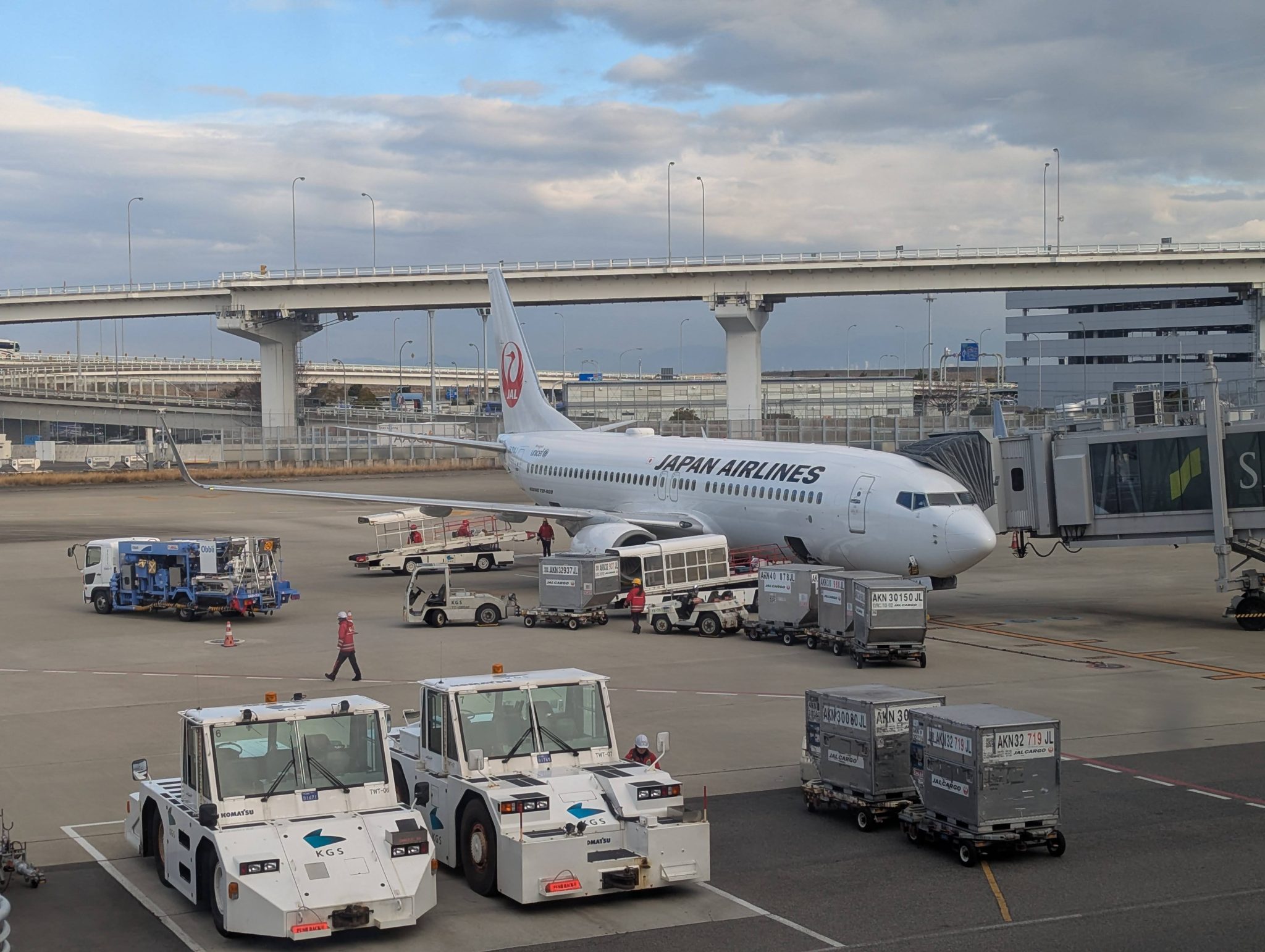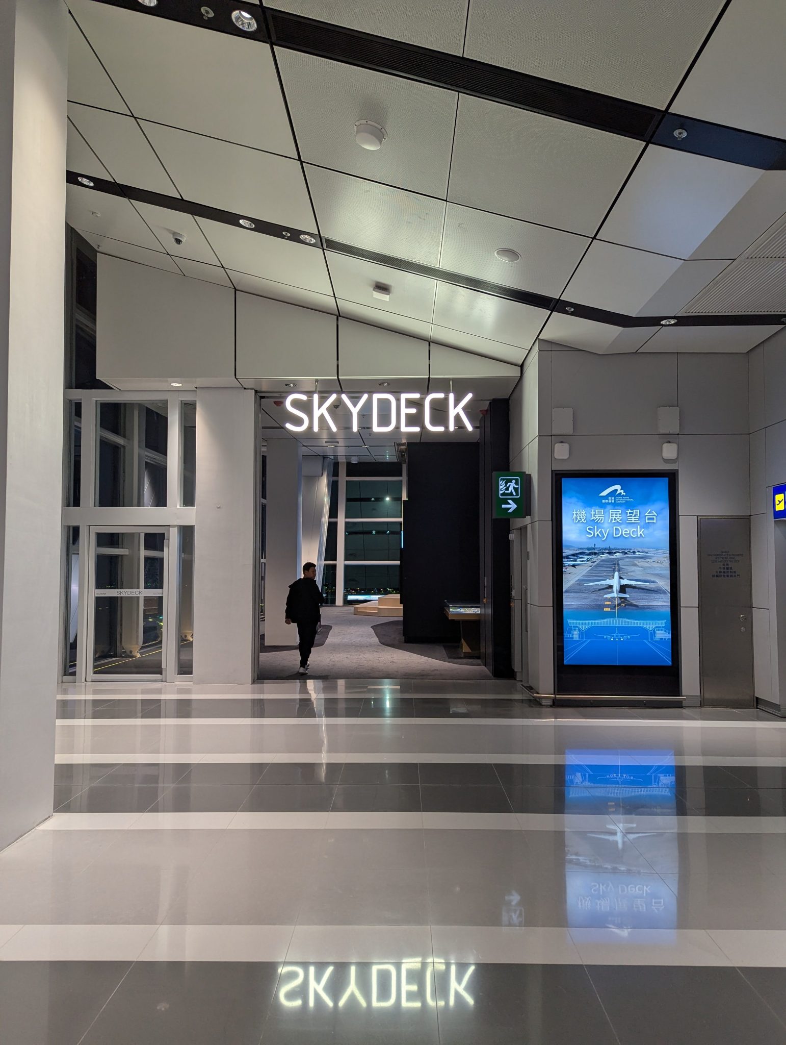 After landing in Hong Kong we have a three hour layover before our next flight to Japan. We spend a little time exploring the airport as it’s been a while since either of us has been through this airport. Being an AvGeek I of course, have to visit the Sky Bridge. It’s a cool airside bridge that passengers can walk across and see the entire airport and surrounding area from above. You can also see airplanes taxi underneath the bridge if you’re lucky! Unfortunately for the time of day of our visit, there isn’t much activity and photos are difficult due to the light outside and the glare inside.