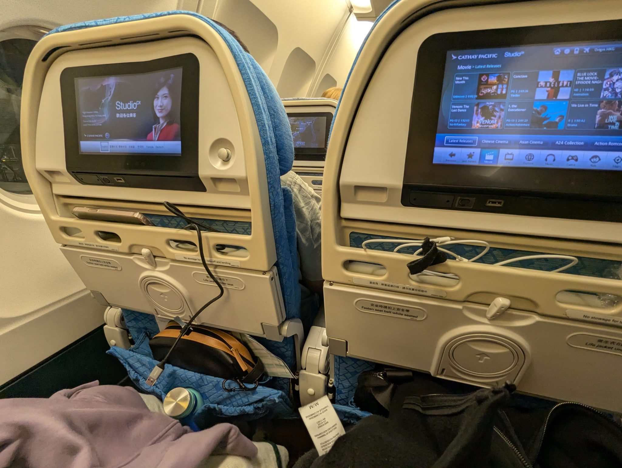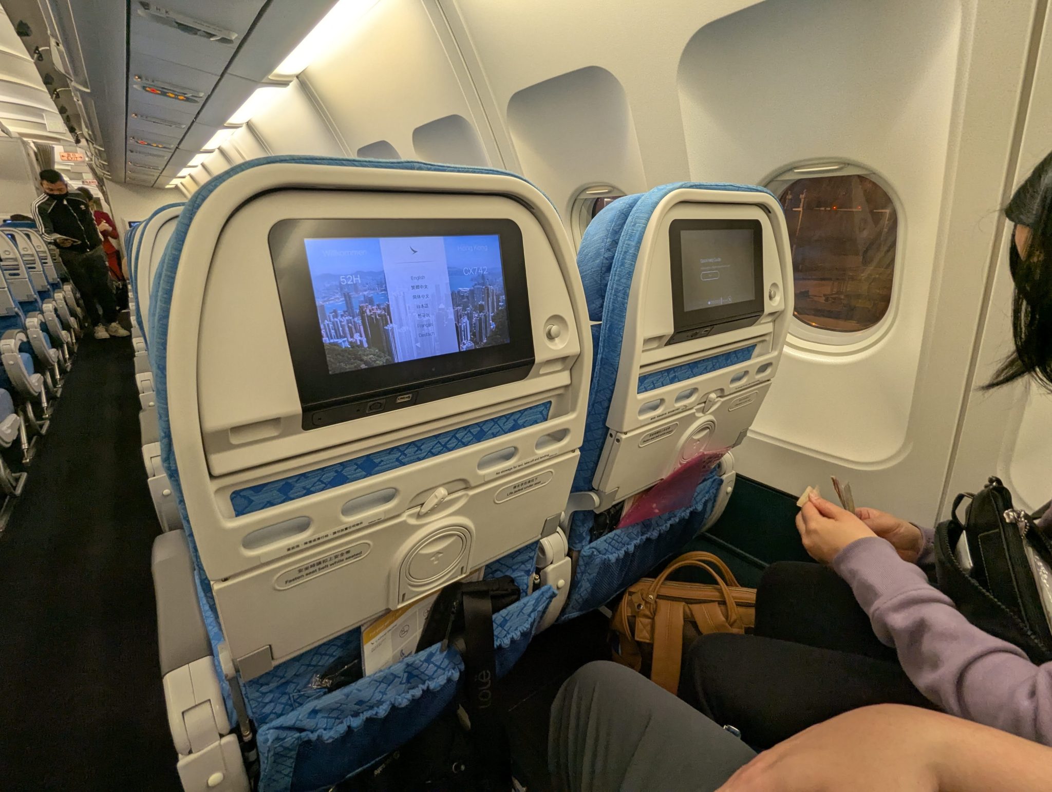 So after checking in and clearing security we settle in for our whirlwind flights with our first one to Hong Kong. This flight is actually fairly pleasant! It’s a short (they’re all kind of short!) three hour flight, with a meal and we try to catch a bit of rest throughout the flight.