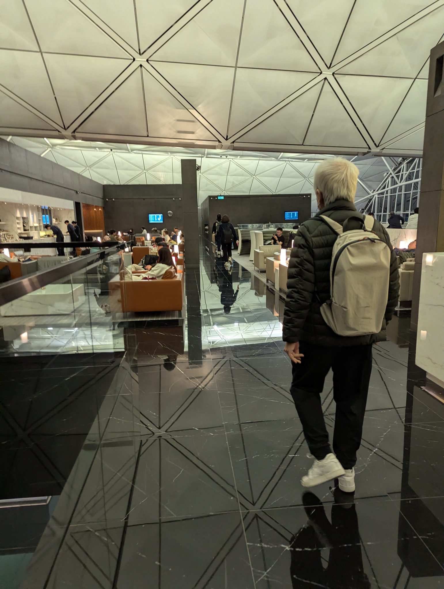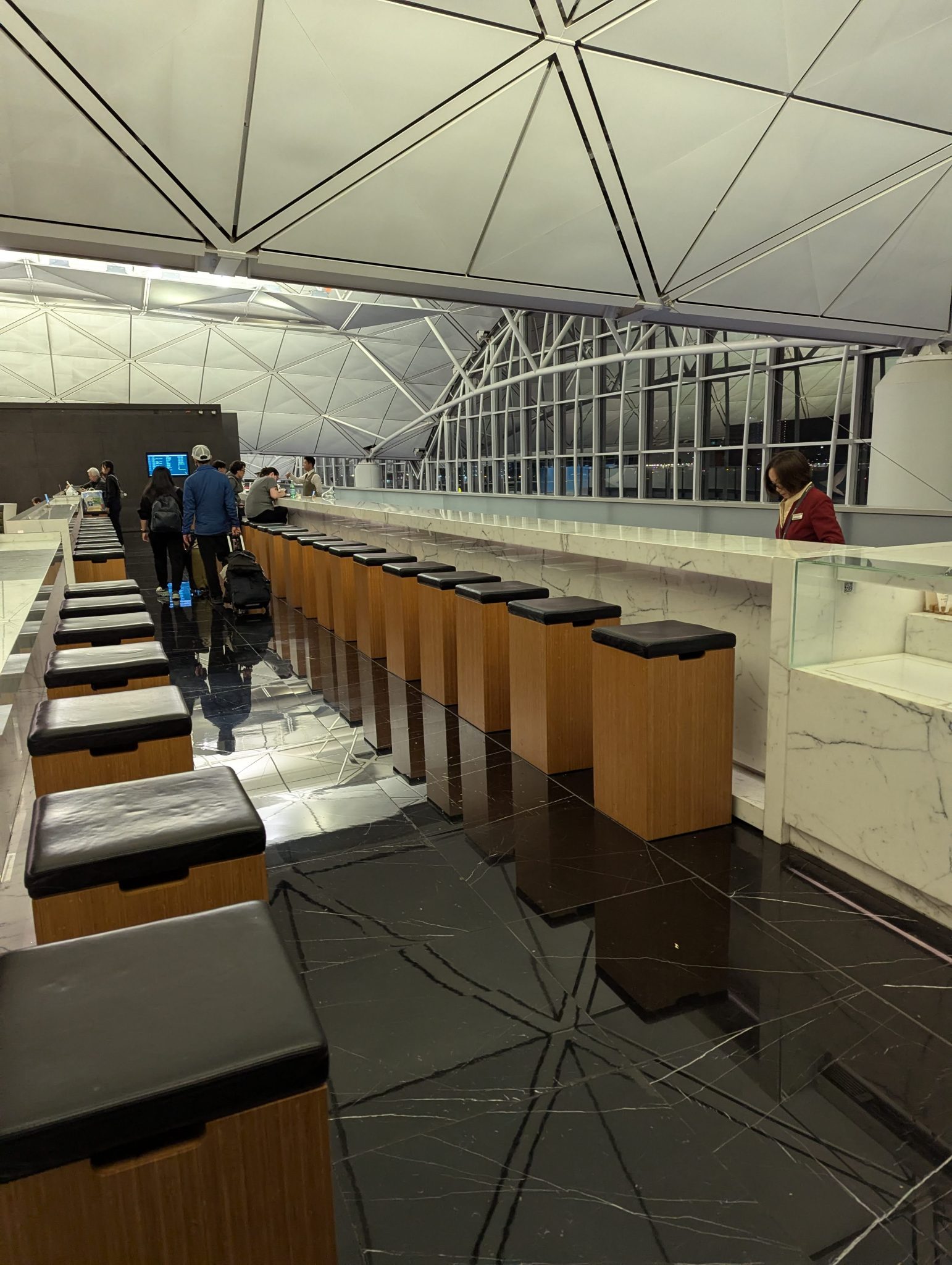 Being in Hong Kong is also an opportunity to check out Cathay Pacific’s The Wing Lounge. So I spend a little time exploring it. It has some nice food offerings, is open and airy and is a bit more exclusive than other contract lounges. But as it’s late into the evening some areas of the lounge are closed and not all the services are available. Nonetheless, its a good port in the storm!