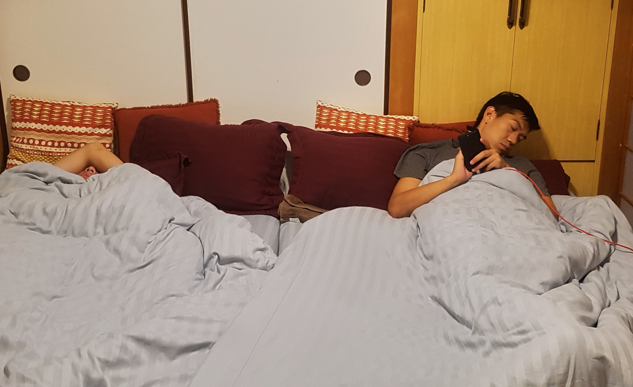 We ended up walking a bit more around Hiroshima, but we were all pretty tired by then and decided to head back to our AirBNB for some well deserved rest. I could tell that FunkyCat and Salmonella were pooped. But the time I was out of the shower, these two were already done. I’m still amazed FunkyCat can sleep with phone in hand!