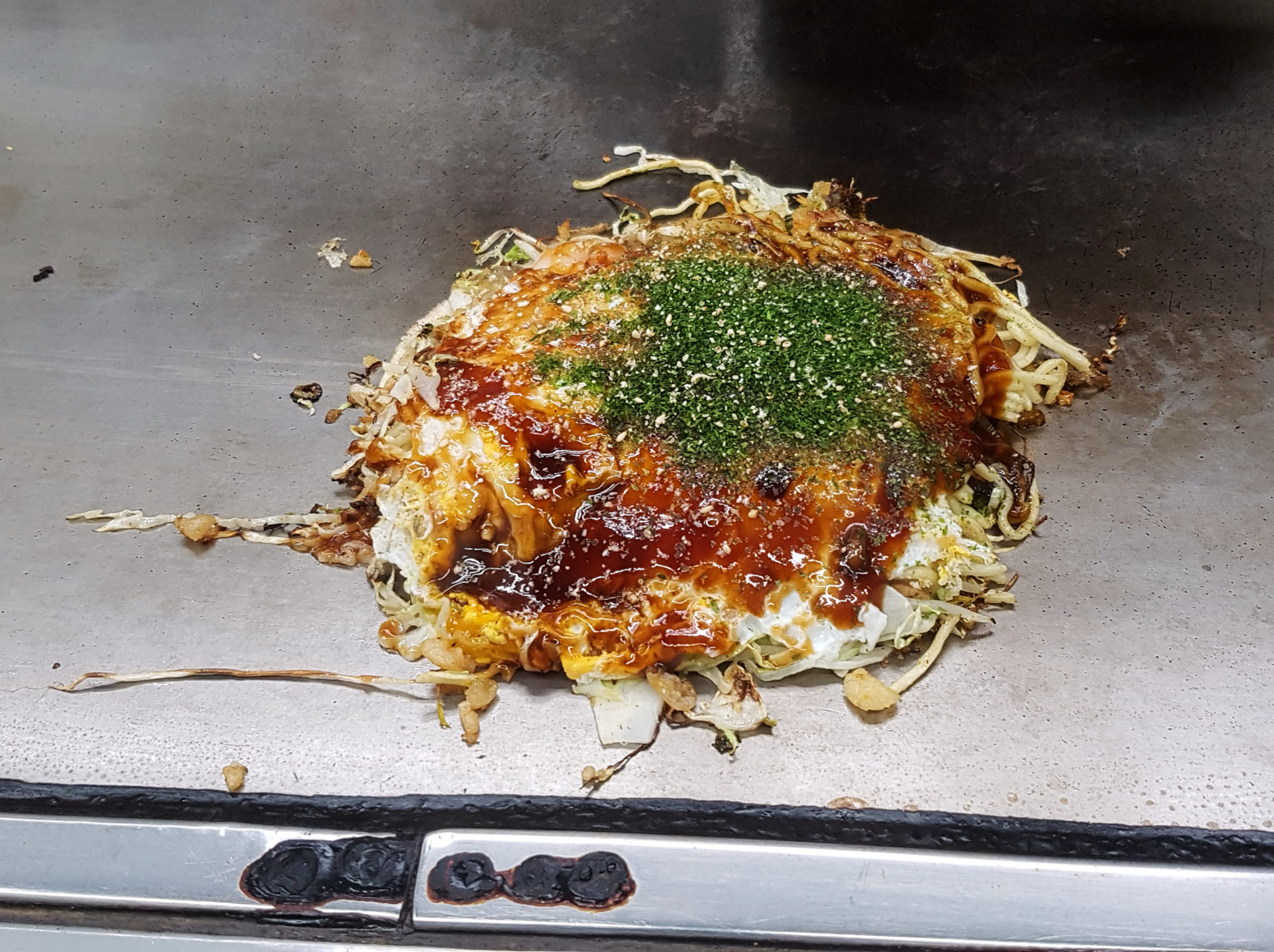 We wanted to try Okonomiyaki and headed to a building that was full of Okonomiyaki shops called Okonomimura. This place had floors full of different stalls, so we weren’t actually sure which one to go to. We ended up just sitting at one that had enough room for the 4 of us. Looking back now I believe the one we went to was called Sarashina. I ordered one with everything and it was pretty tasty. I will say though that while it was cool to “eat off the hot grill”. It made it hard to really appreciate because it was so hot, it was difficult to enjoy fully. So if I were to make a recommendation, I’d suggest getting it on a plate. It may not be as “cool” but you may be able to appreciate the flavor a bit more.