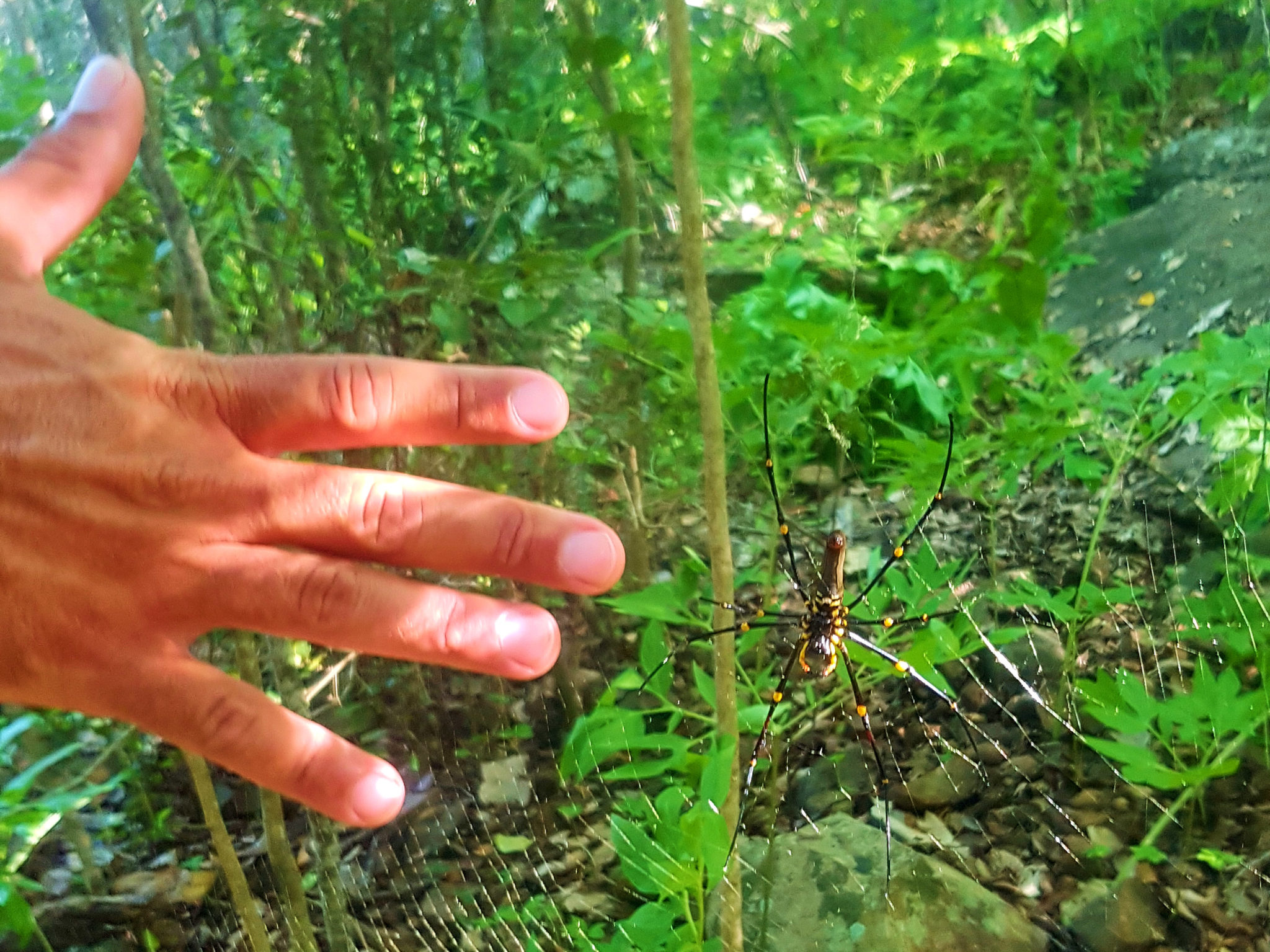 On a side note, Photos and I had been pretty lucky avoiding the massive spiders that everyone sent us YouTube videos about before we left. However, on the hike, we finally encountered a rather large spider in the forest. I was sufficiently creeped out, but had to take a picture of it! (Nope that wasn’t my hand but a brave shipmate!)